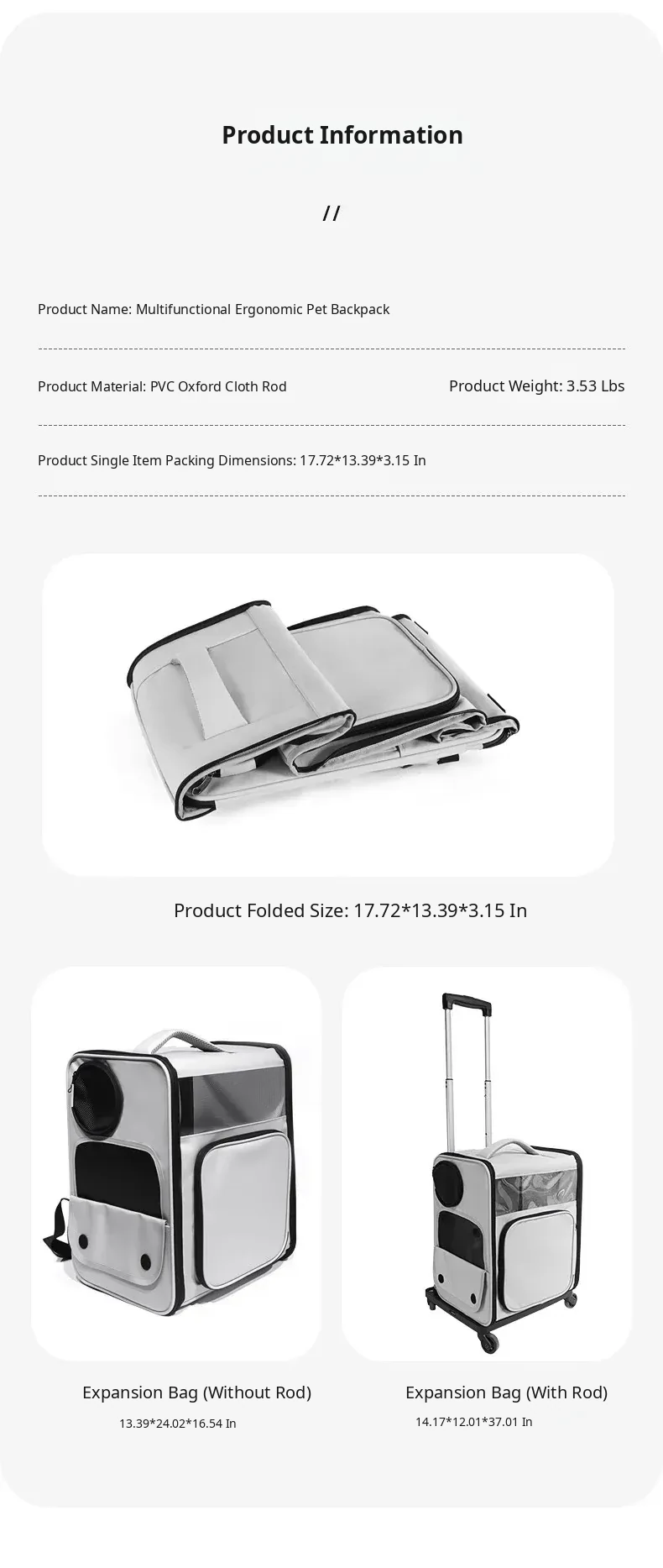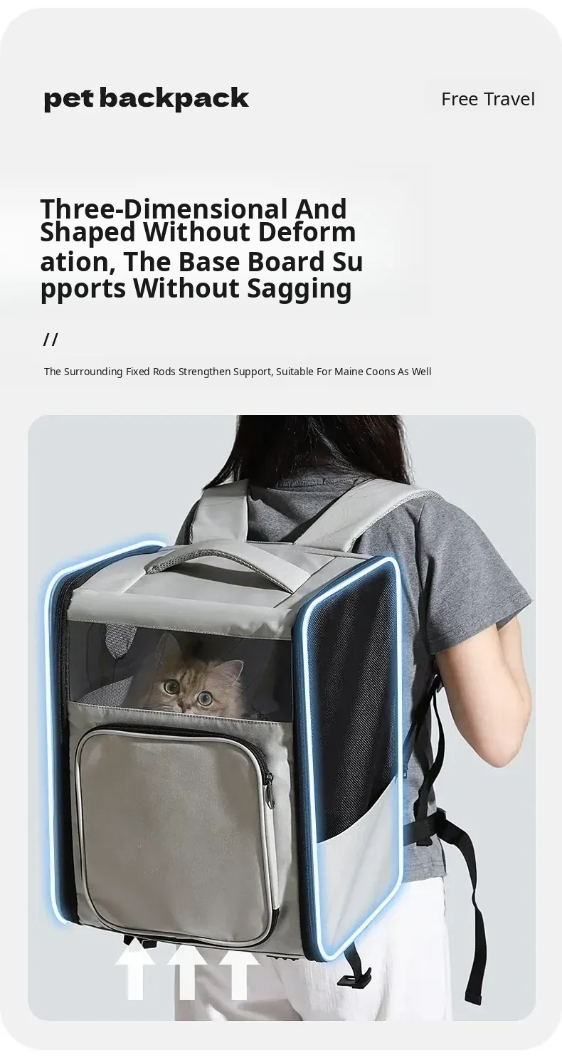 Expandable Cat and Dog Backpack - Large Capacity Pet Carrier, Portable and Foldable, Ideal for Outdoor Adventures with Your Feline or Canine Companion!