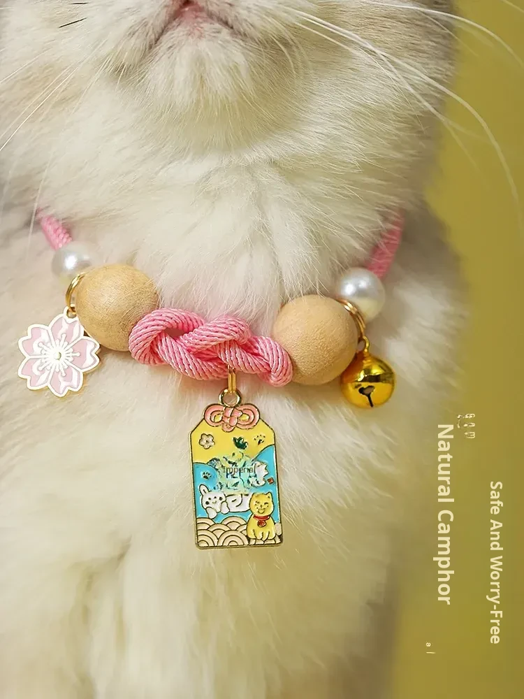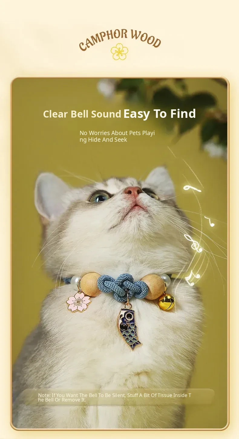 Flea and Tick Prevention Cat Collar with Bell - Aromatic Camphor Wood Pet Accessory for Dogs and Cats - Stylish and Safe Pet Necklace