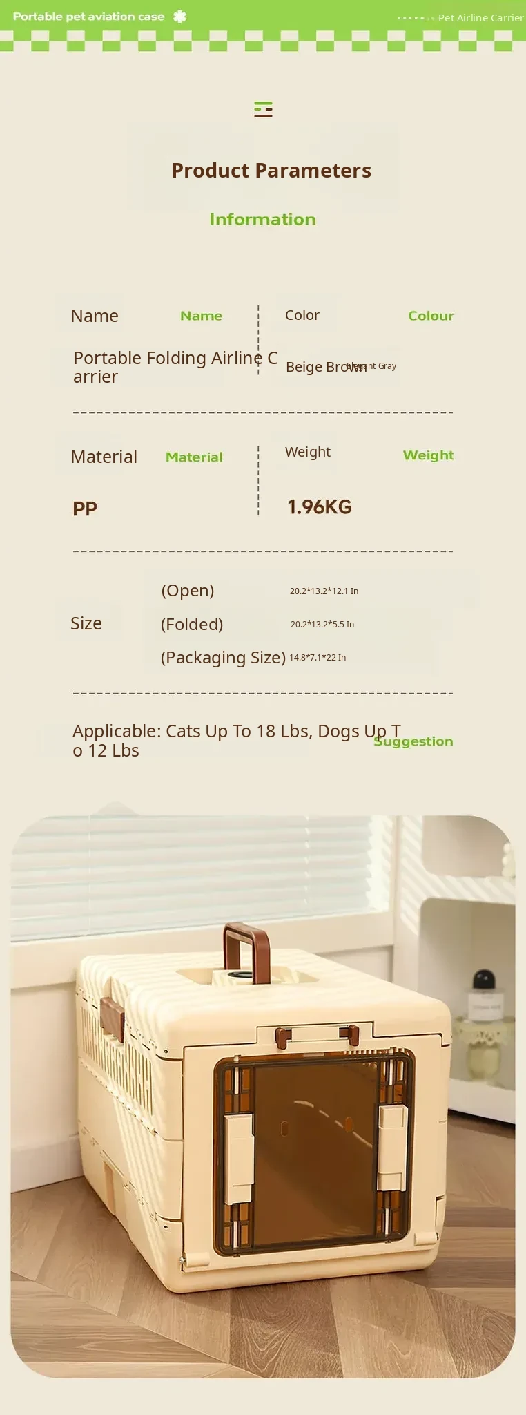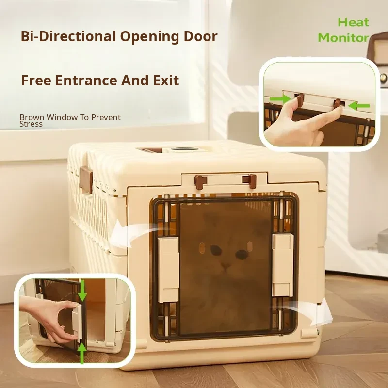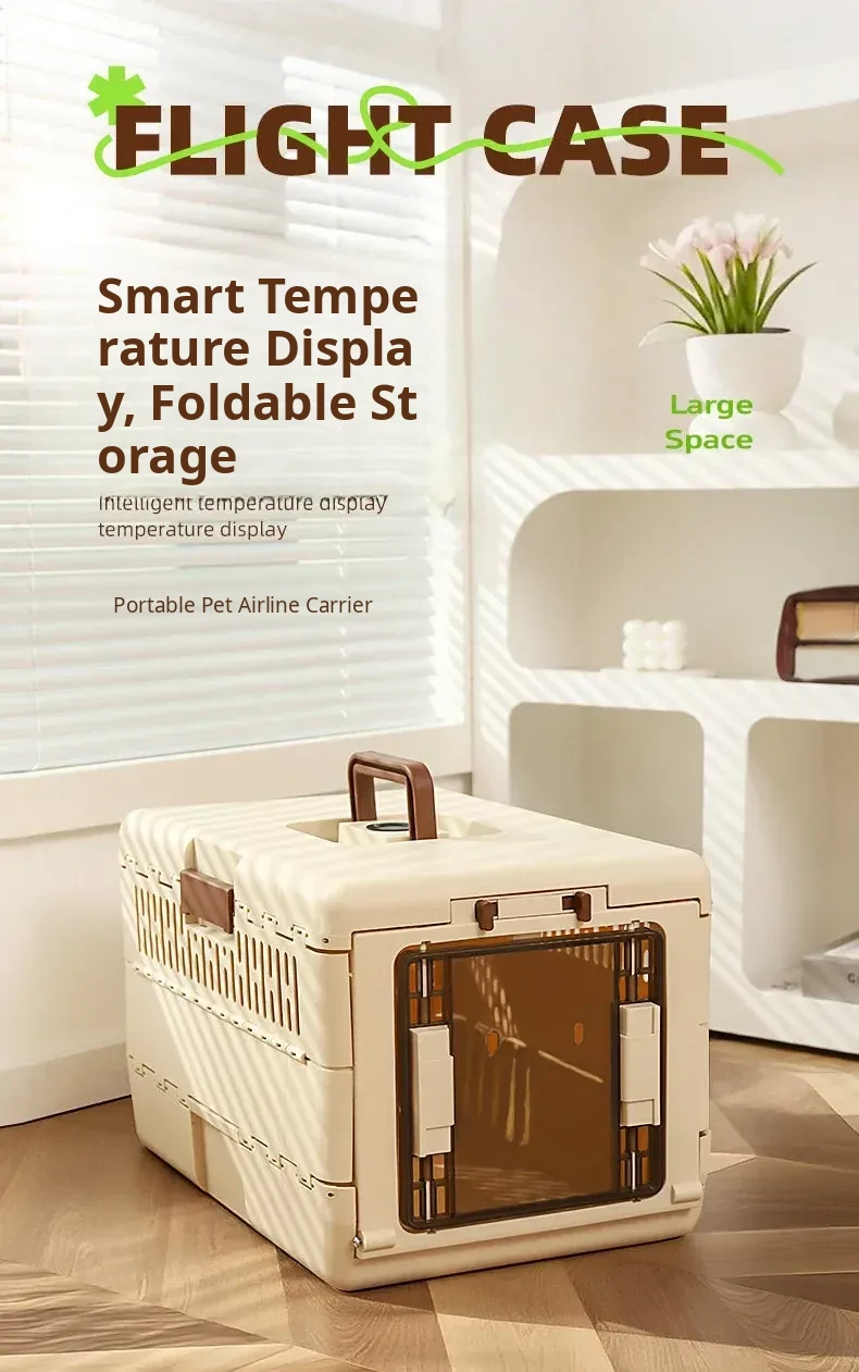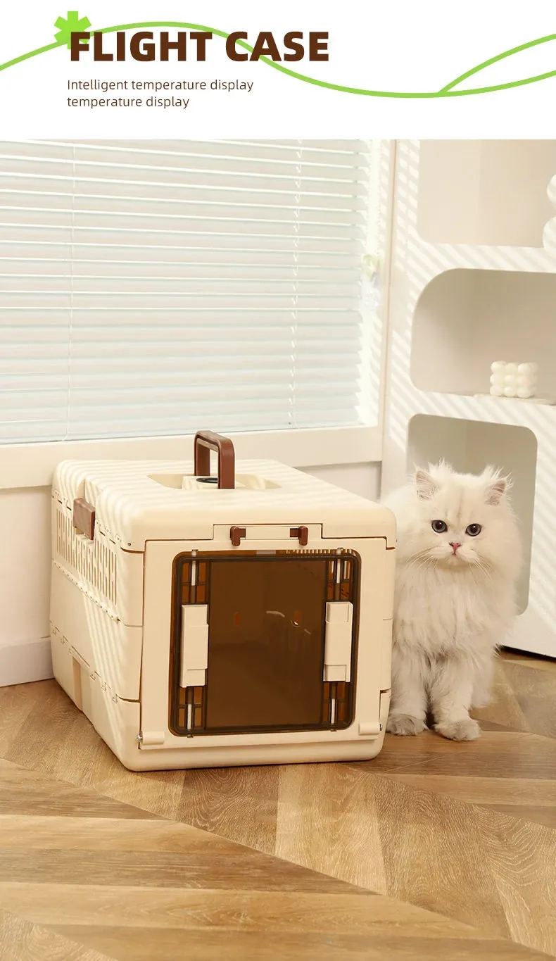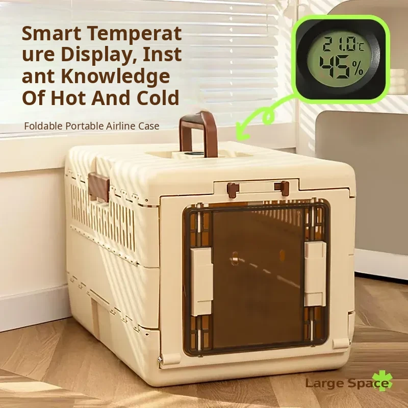 Foldable Pet Airline Carrier - Portable Cat Cage & Dog Crate with Smart Temperature Display - Ideal for Travel & Outdoor Adventures for Cats and Dogs