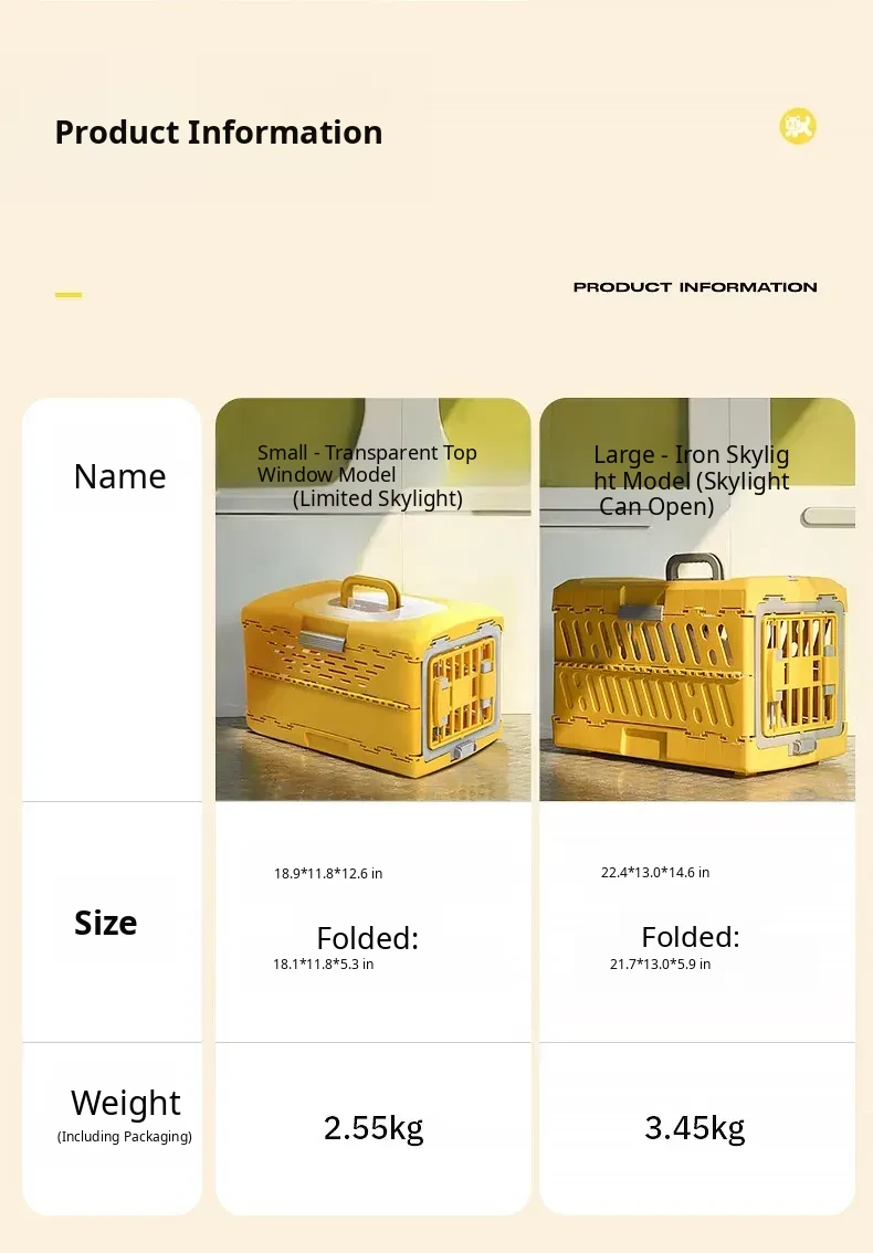 Foldable Pet Carrier with Skylight - Portable Cat and Dog Travel Crate, Space Capsule Design for Outdoor Adventures and Car Rides