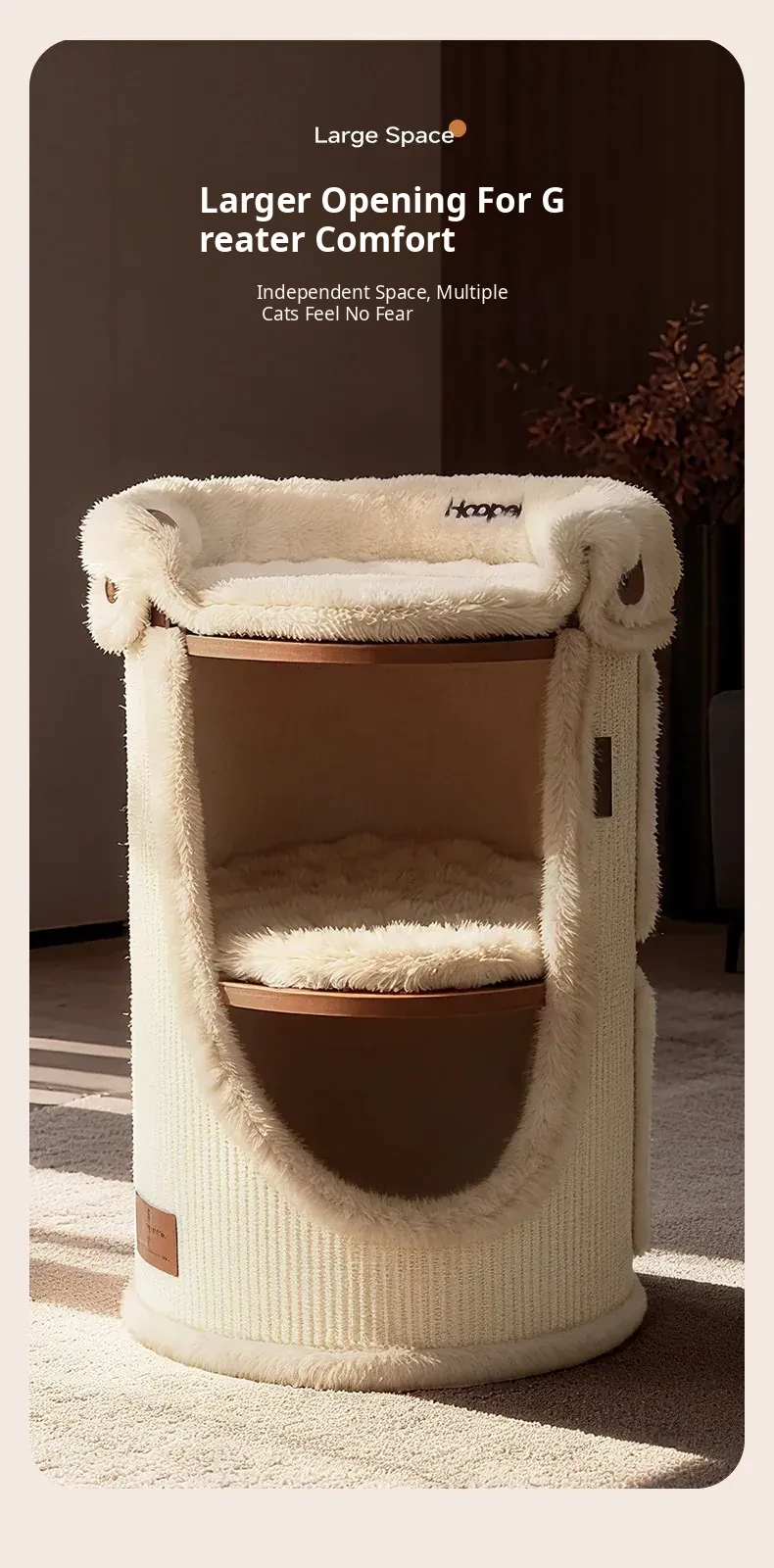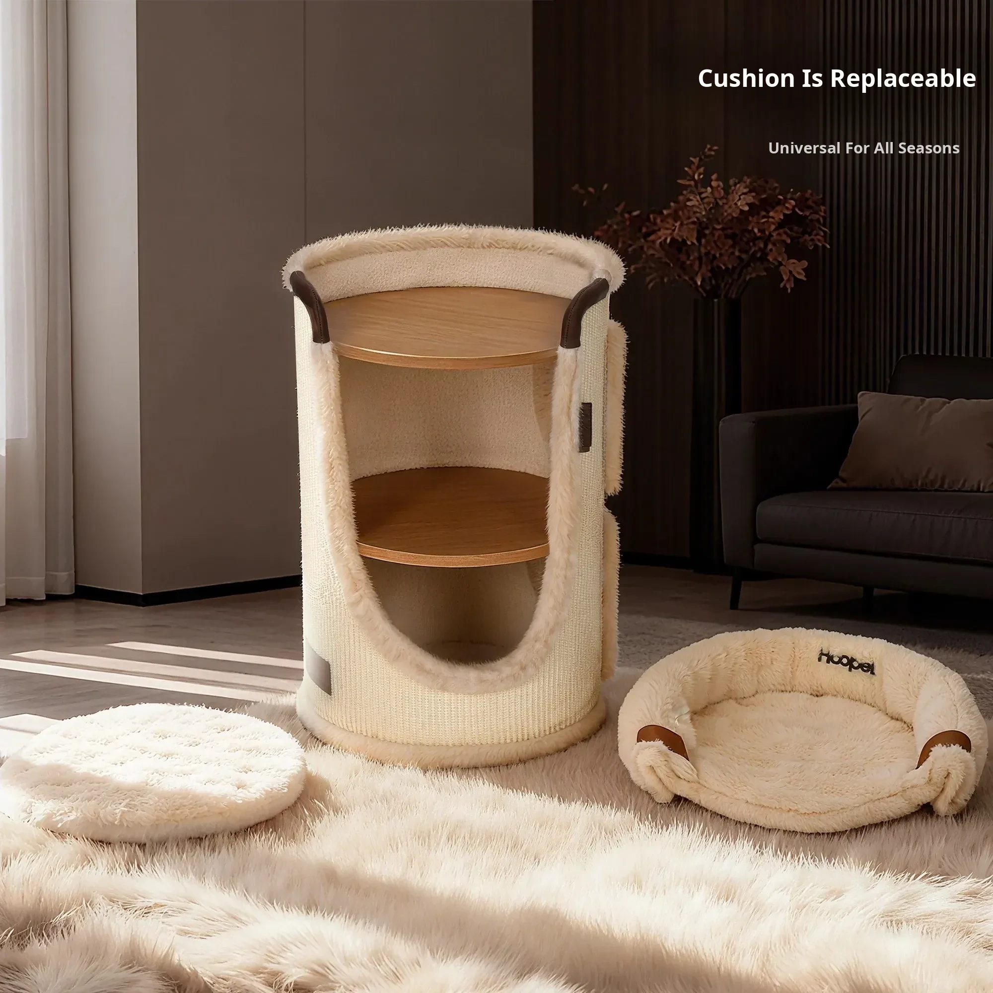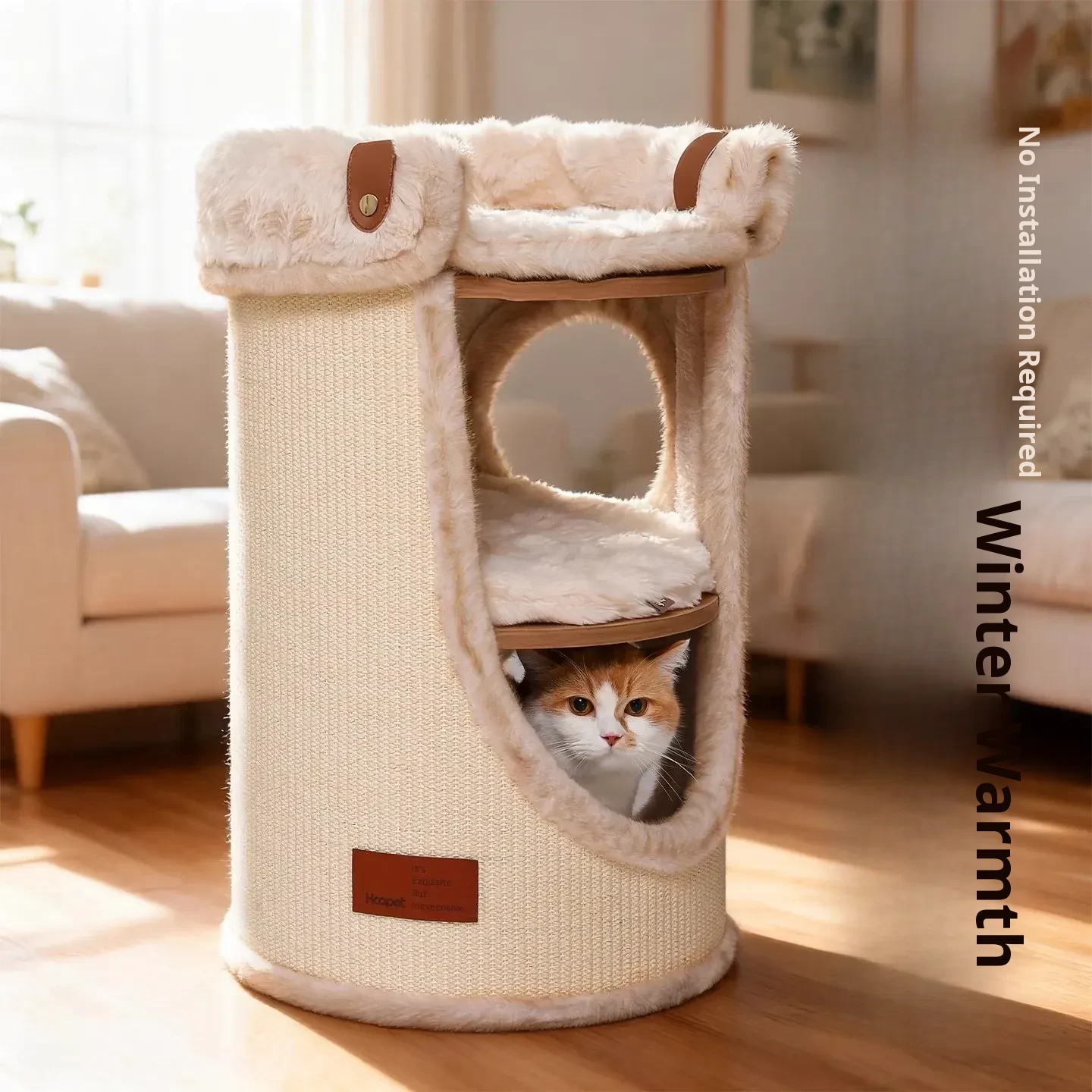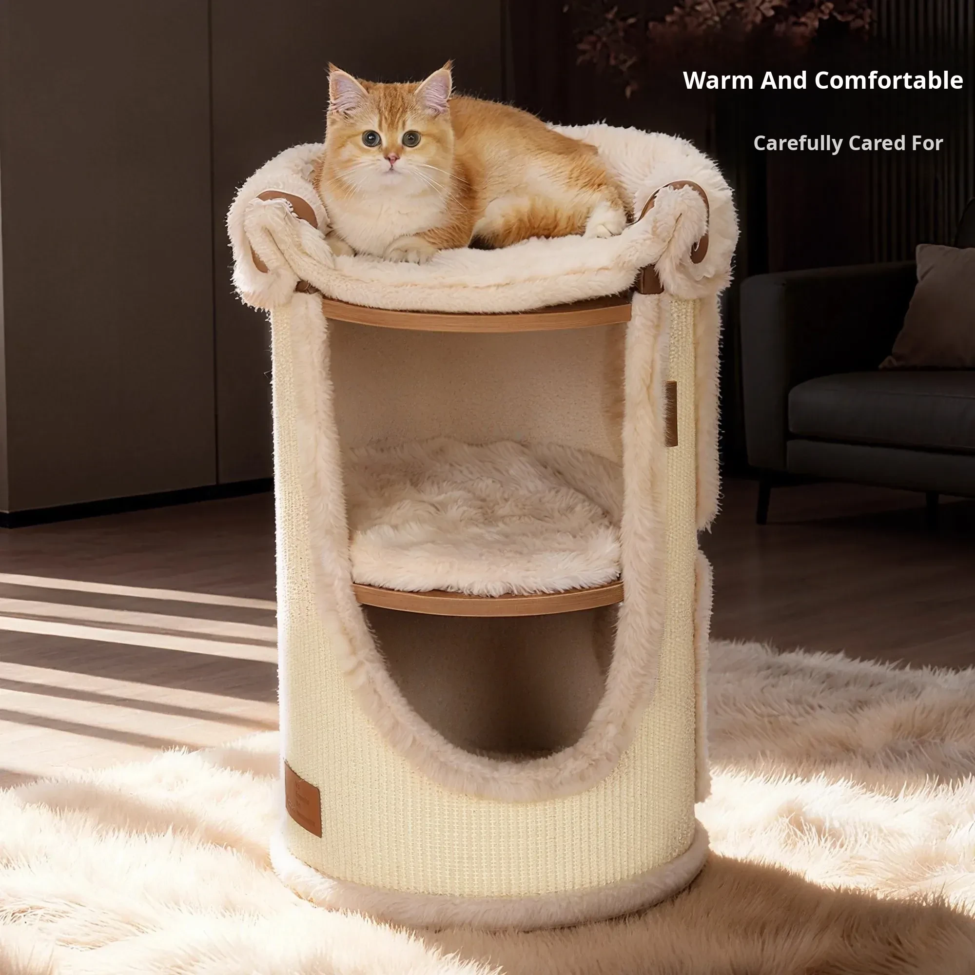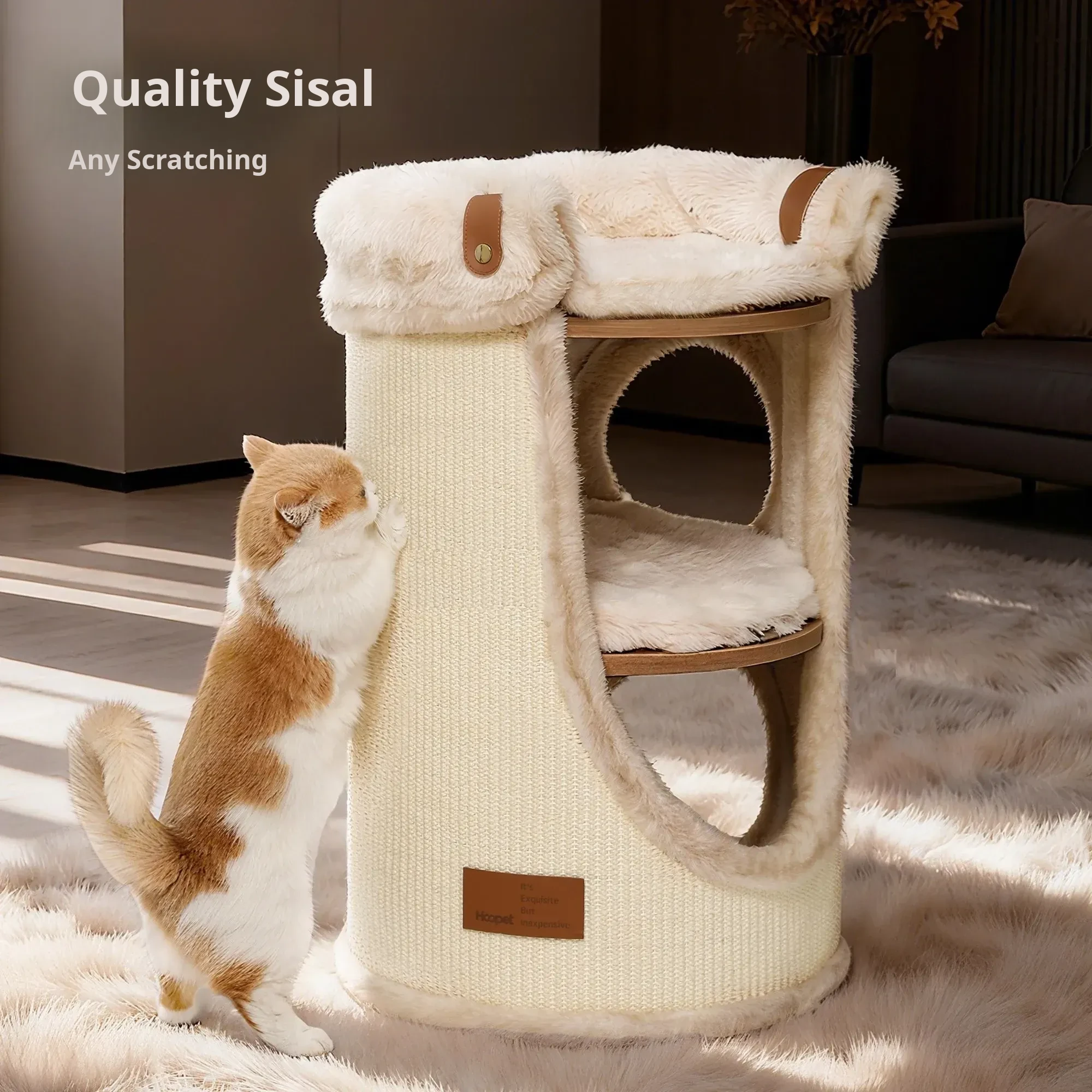 Hoopet Compact Cat Tree - Space-Saving Design for Small Homes, Cozy Winter Cat Bed, Scratch Board, and Climbing Structure for Your Feline Friend