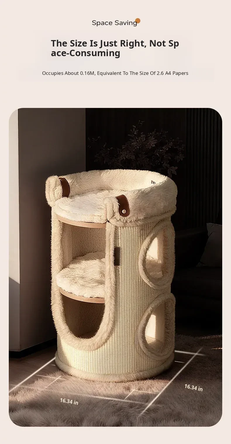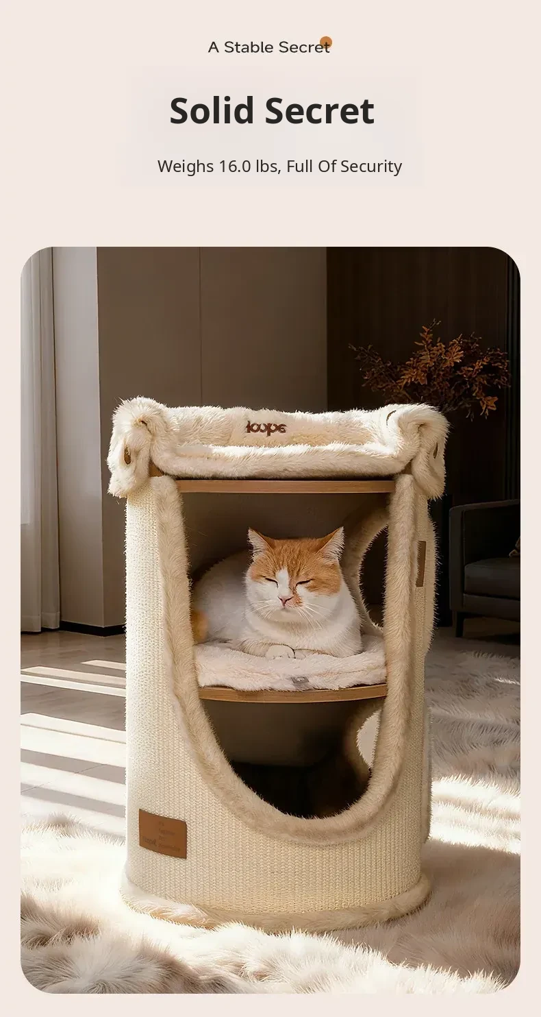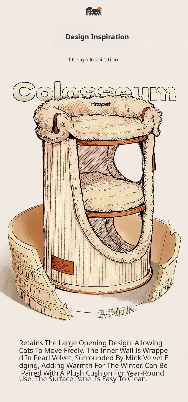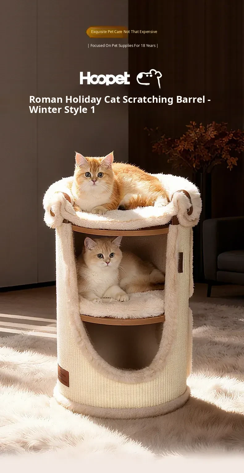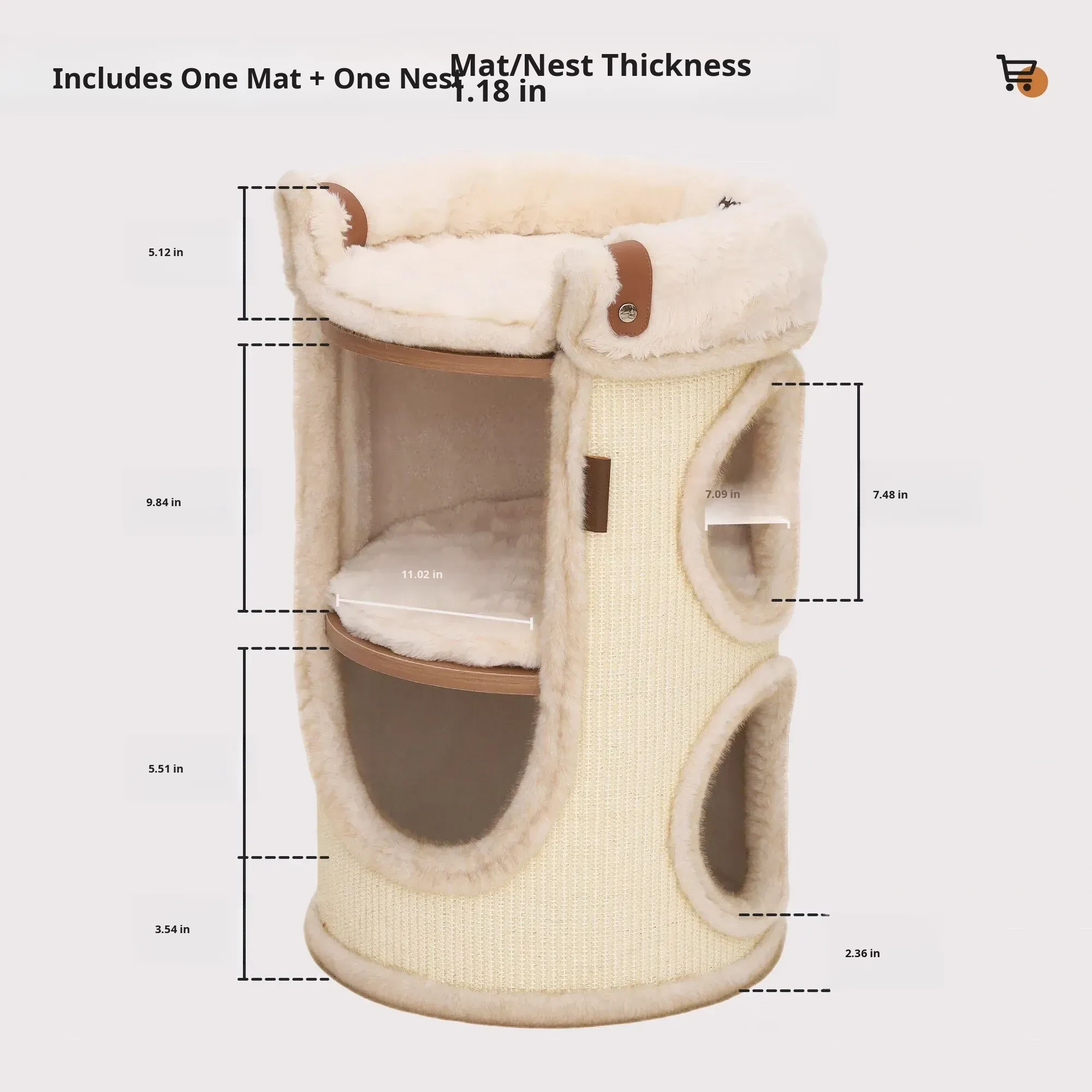 Hoopet Compact Cat Tree - Space-Saving Design for Small Homes, Cozy Winter Cat Bed, Scratch Board, and Climbing Structure for Your Feline Friend