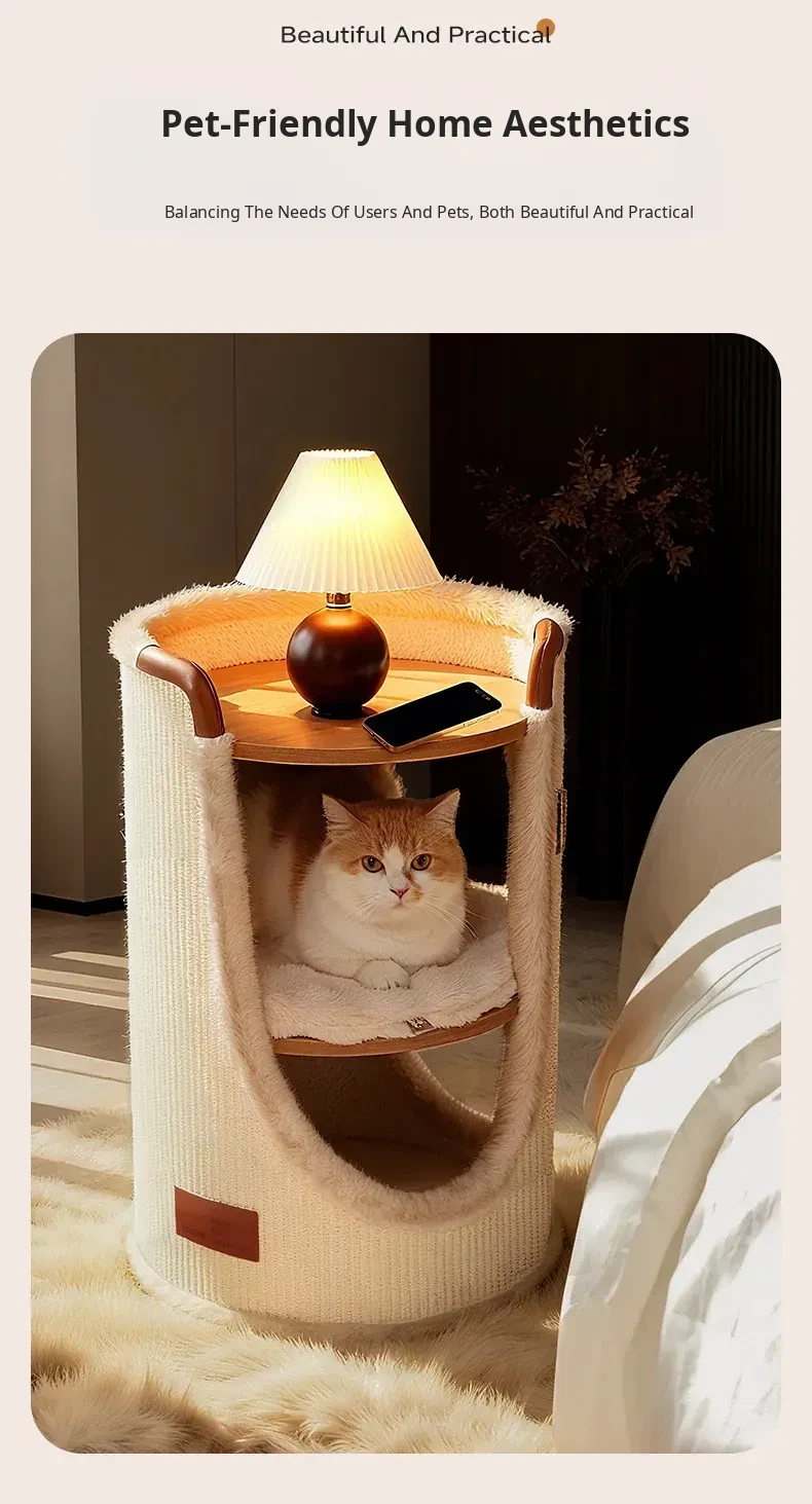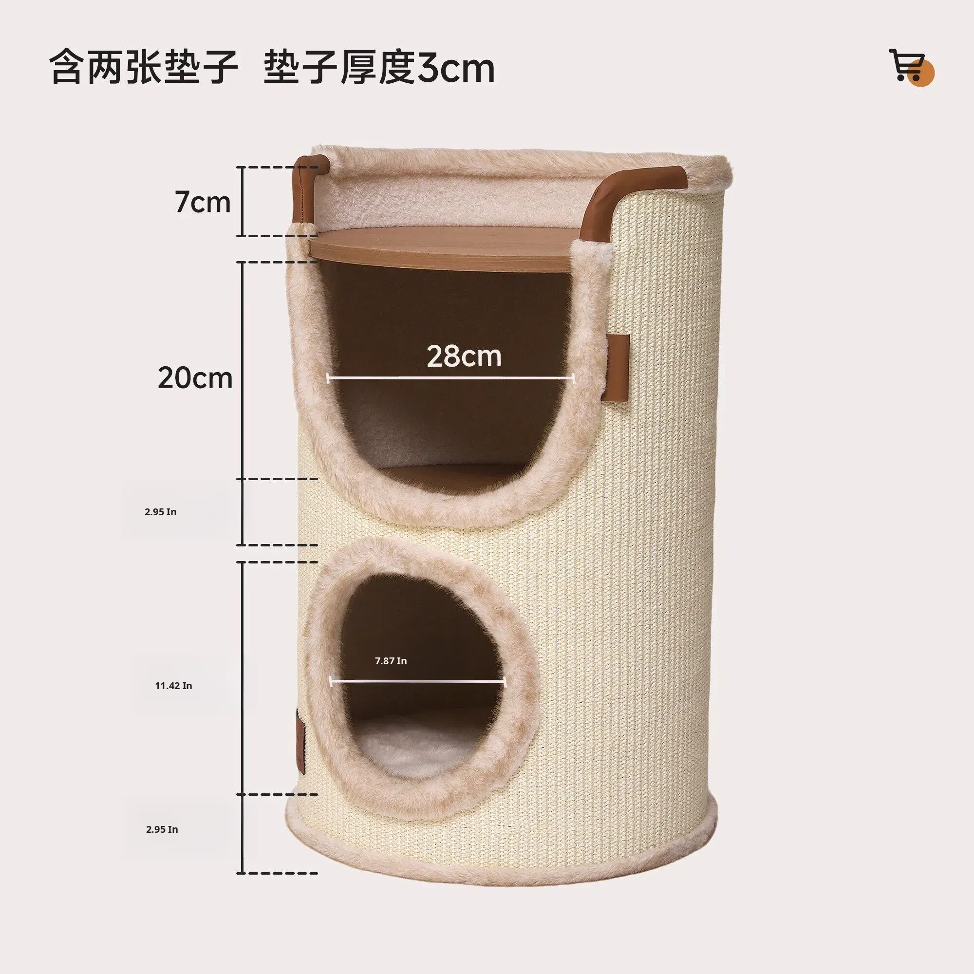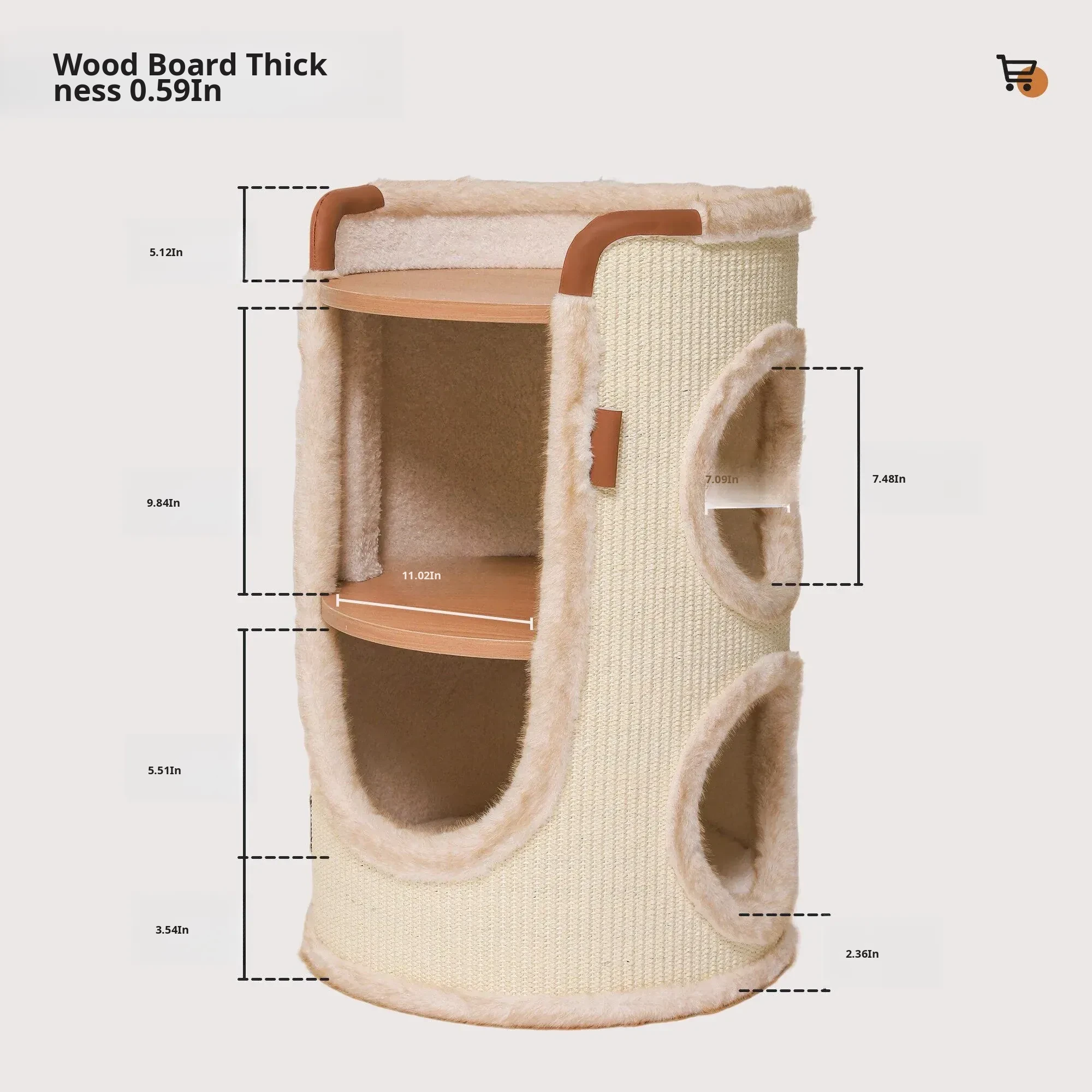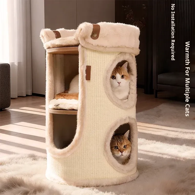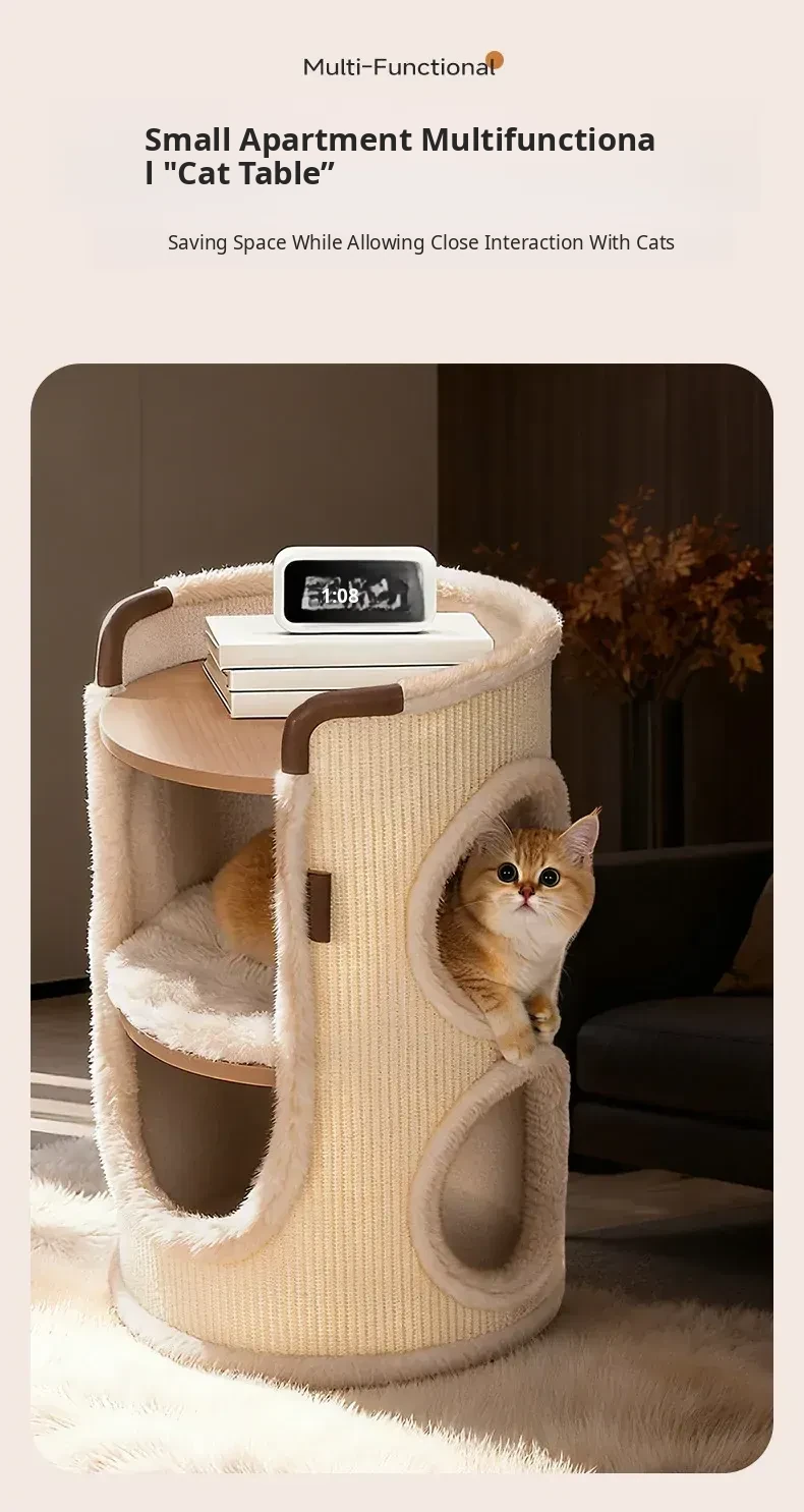 Hoopet Compact Cat Tree - Space-Saving Design for Small Homes, Cozy Winter Cat Bed, Scratch Board, and Climbing Structure for Your Feline Friend