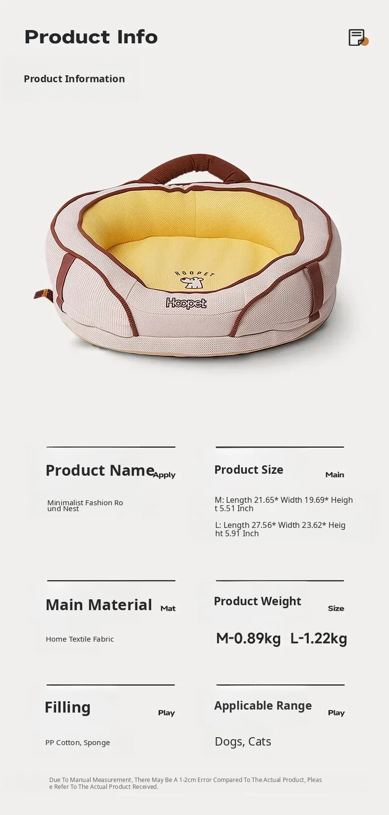 Hoopet Cozy Washable Dog Bed for All Seasons - Thickened Winter Warmth for Teddy and Bichon Frise Small Dogs