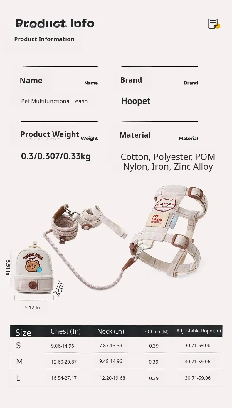 Hoopet Dog Harness and Leash Set for Small to Medium Dogs - Comfortable Vest Style with Backpack for Easy Walking and Control