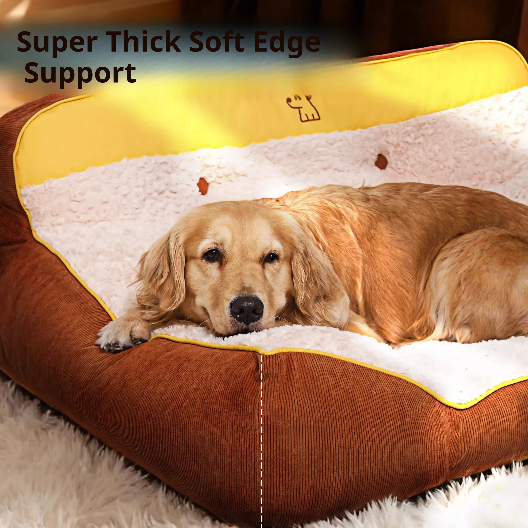 Hoopet Extra Thick Winter Dog Bed for Large Breeds - Removable Washable Sofa Style Pet Sleeping Mat for Golden Retrievers and Other Dogs