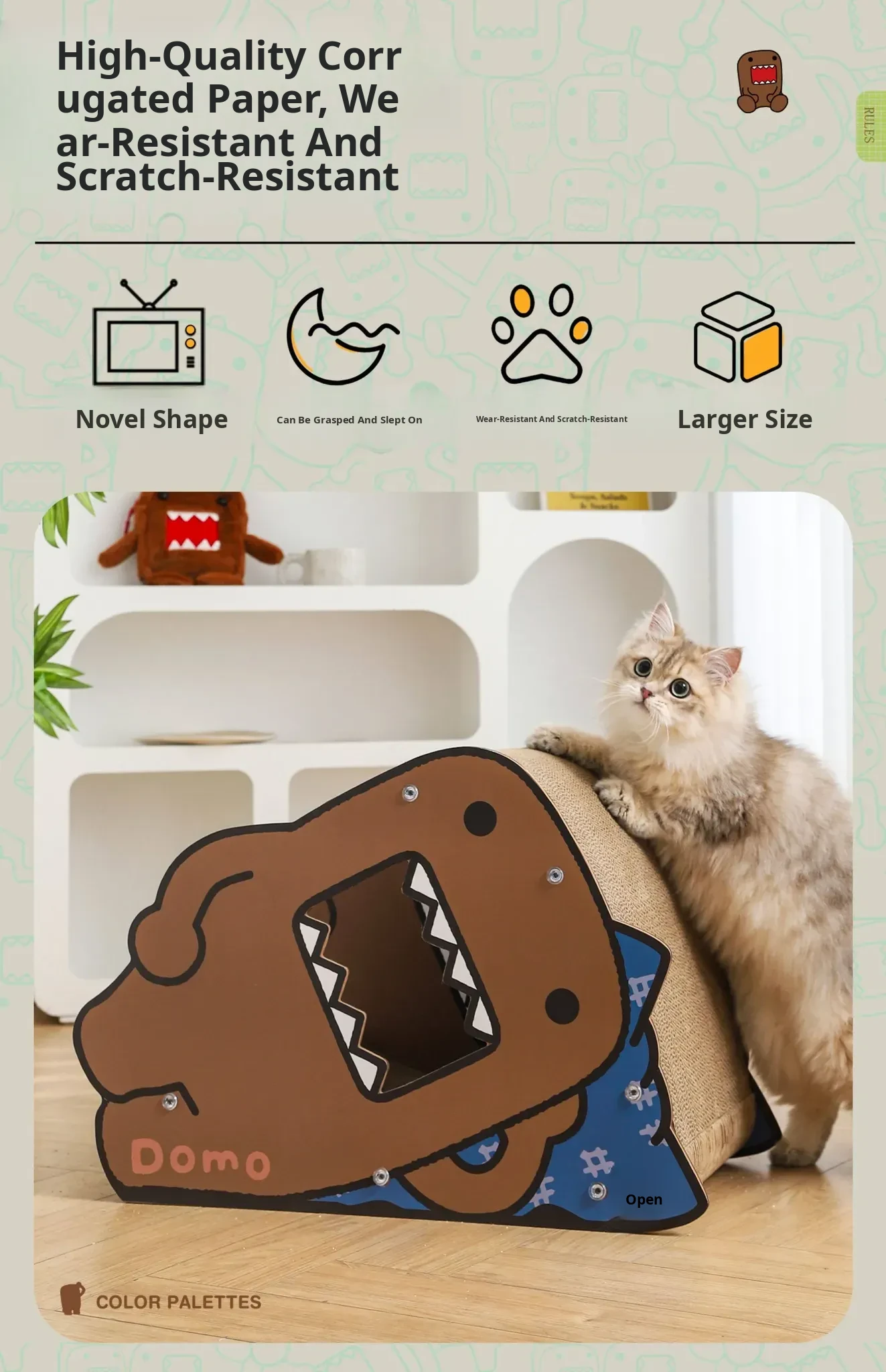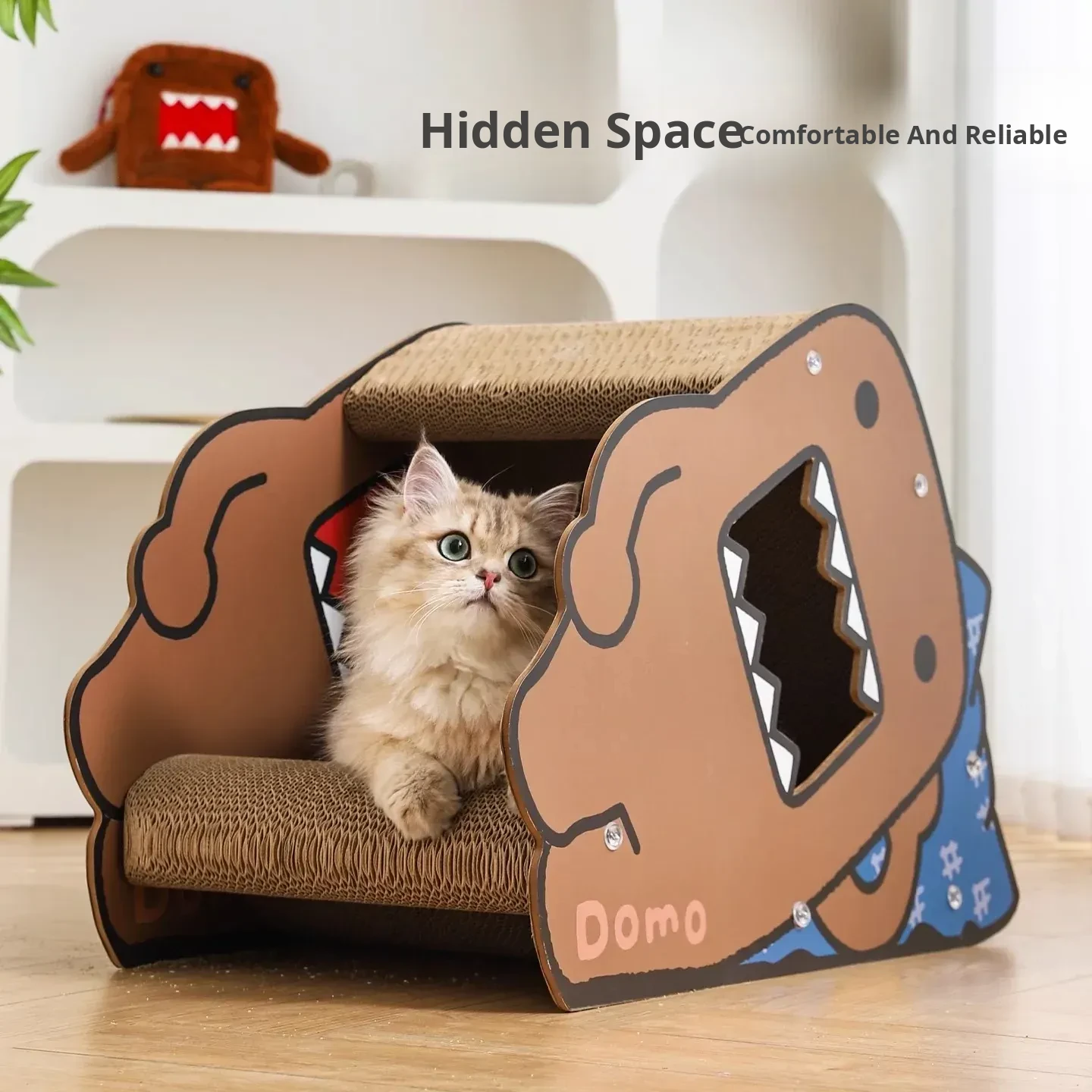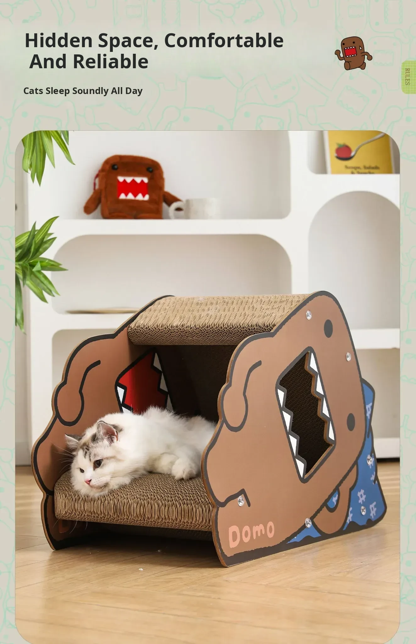 Hoopet Multi-Functional Cat Scratching Post and Bed - Durable, Mess-Free Corrugated Cardboard for Cozy Side Sleeping - Perfect Cat Toy and Resting Spot