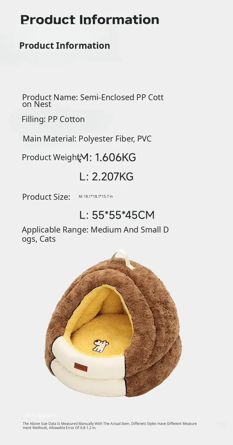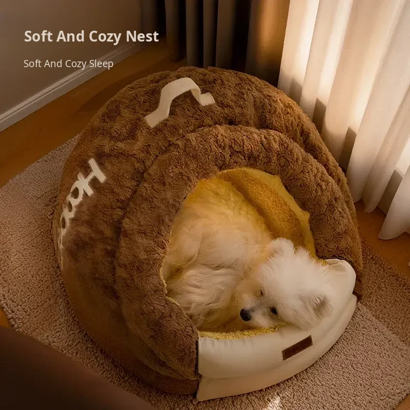 Hoopet Winter Cozy Dog House - Thickened Insulated Semi-Enclosed Pet Bed for Small Dogs - Perfect Winter Sleeping Nest for Your Furry Friend