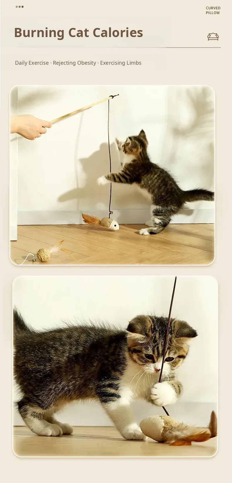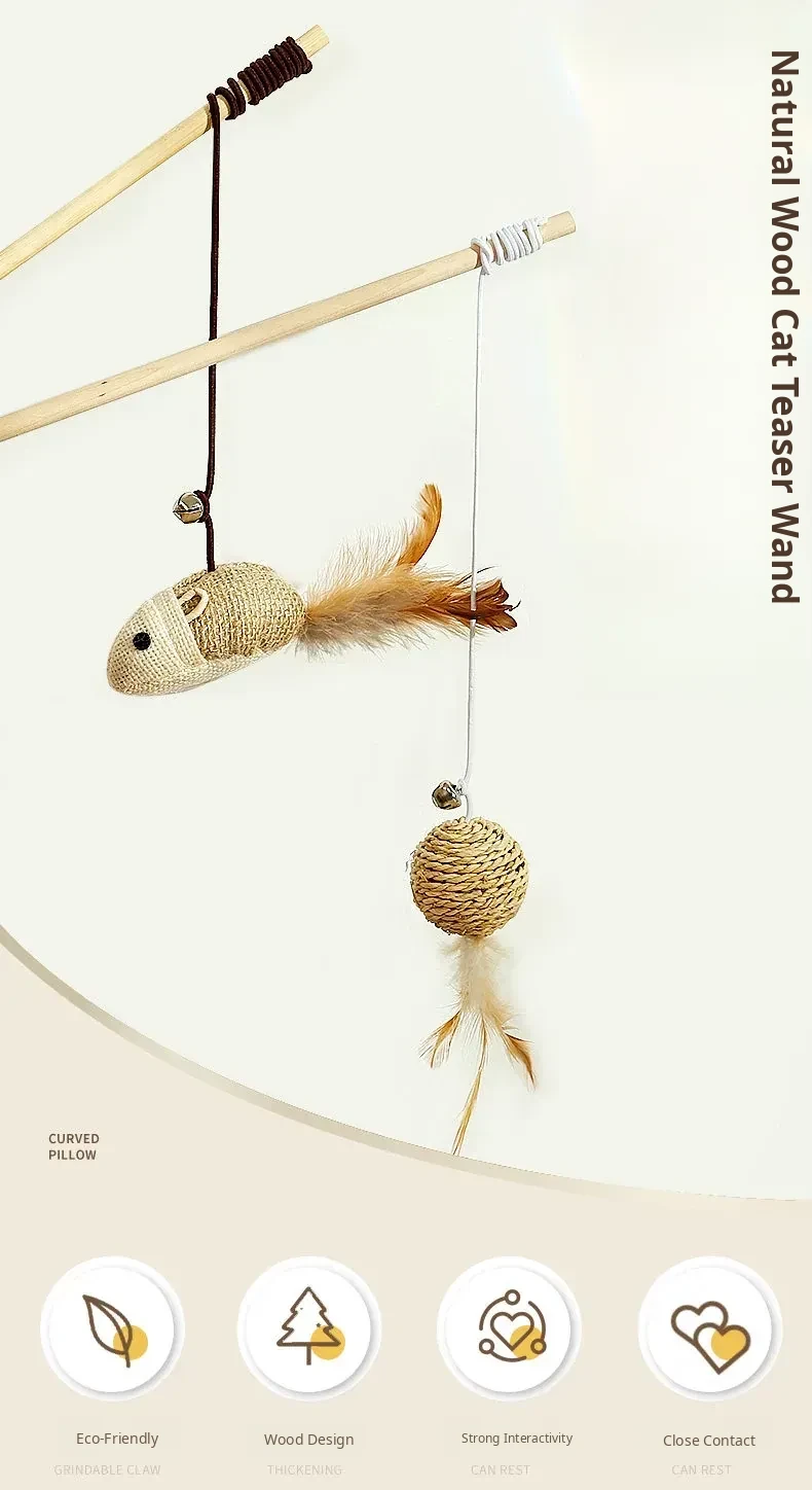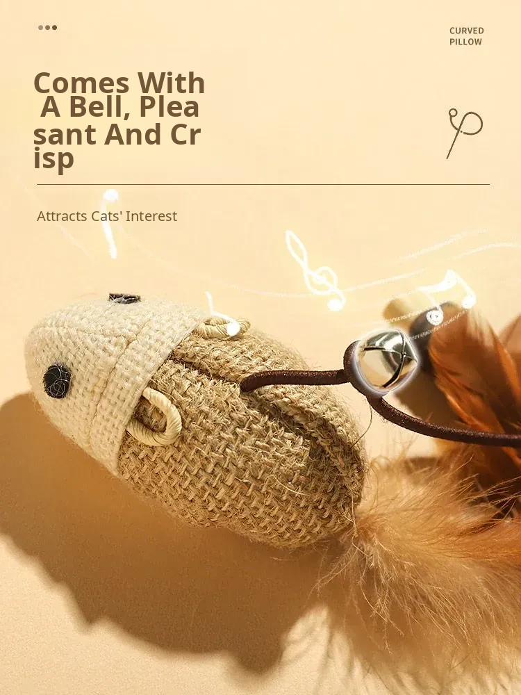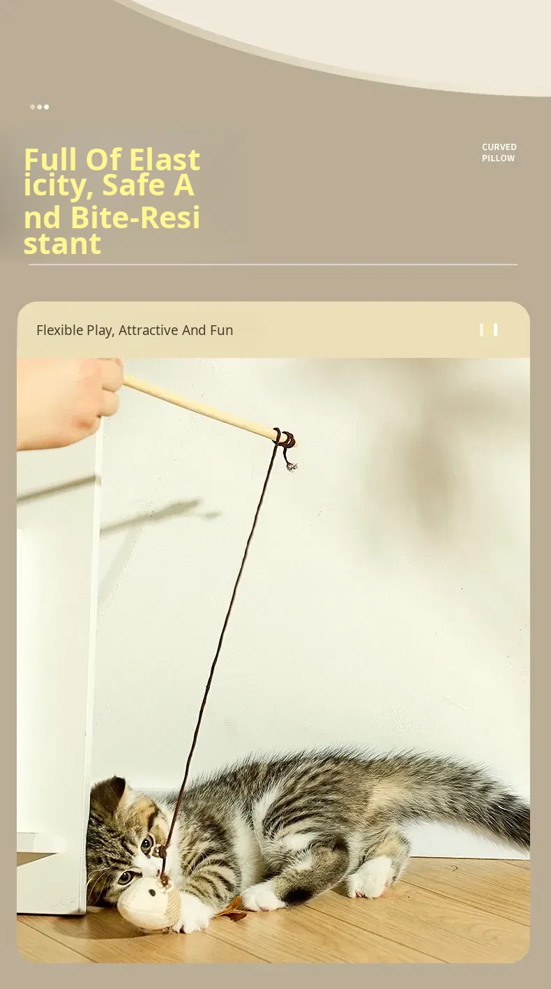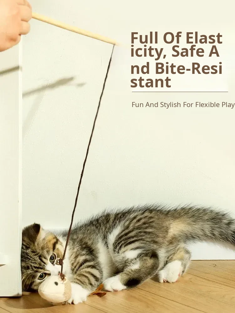 Interactive Cat Toy - Self-Entertainment Mouse Teaser Wand with Bell, Durable Chew Toy for Kittens and Cats to Burn Off Energy and Stay Engaged