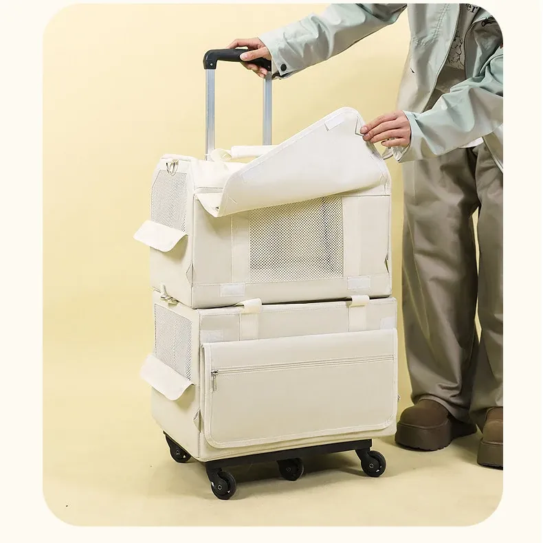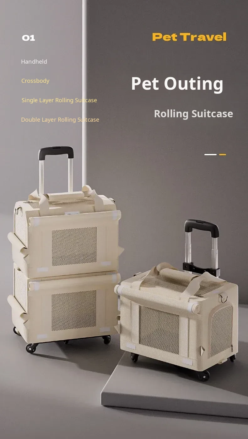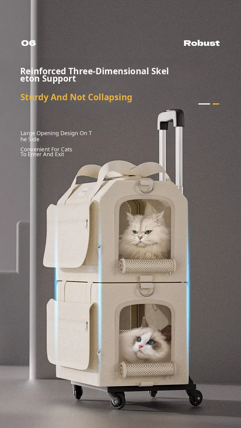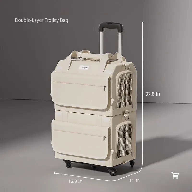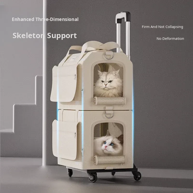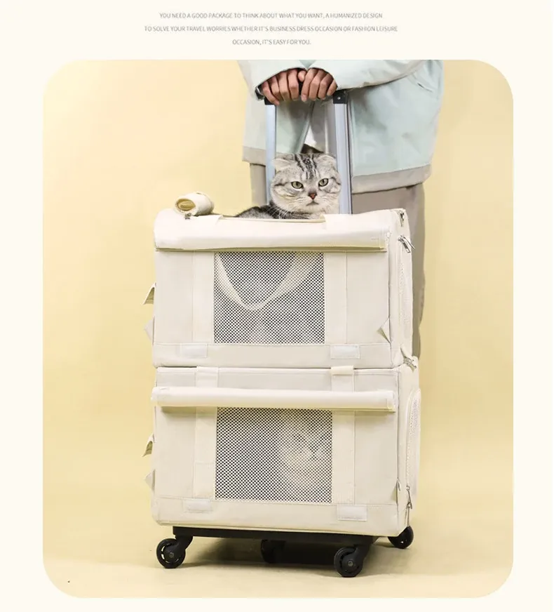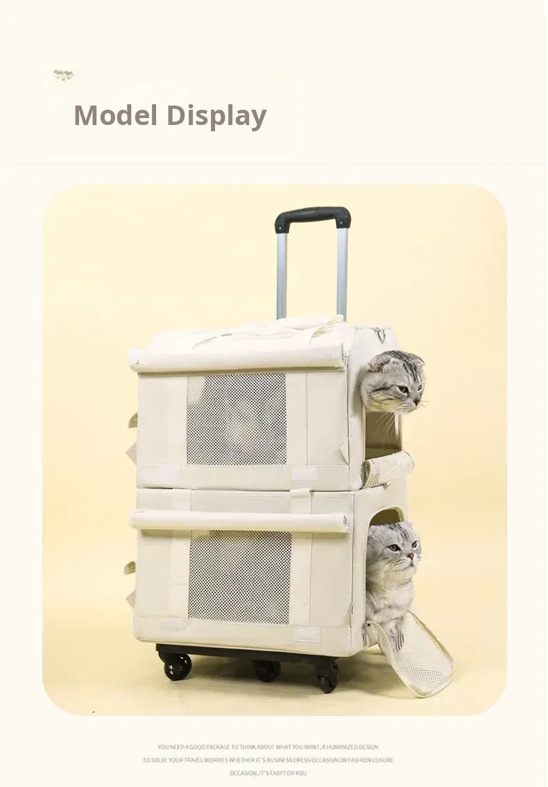 Large Double-Layer Cat Carrier Backpack - Portable Rolling Pet Luggage for Two Cats or Dogs - Ideal for Travel with Your Furry Friends!