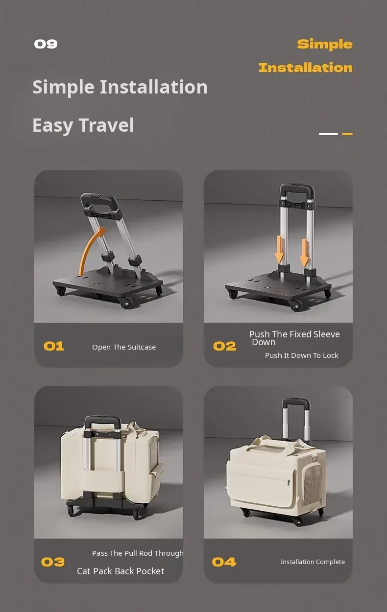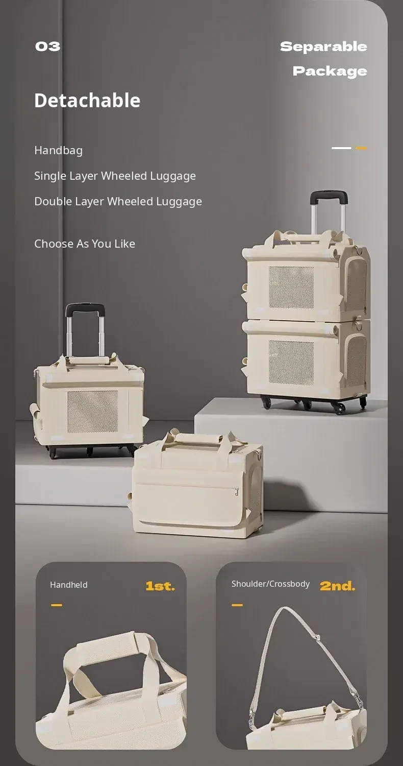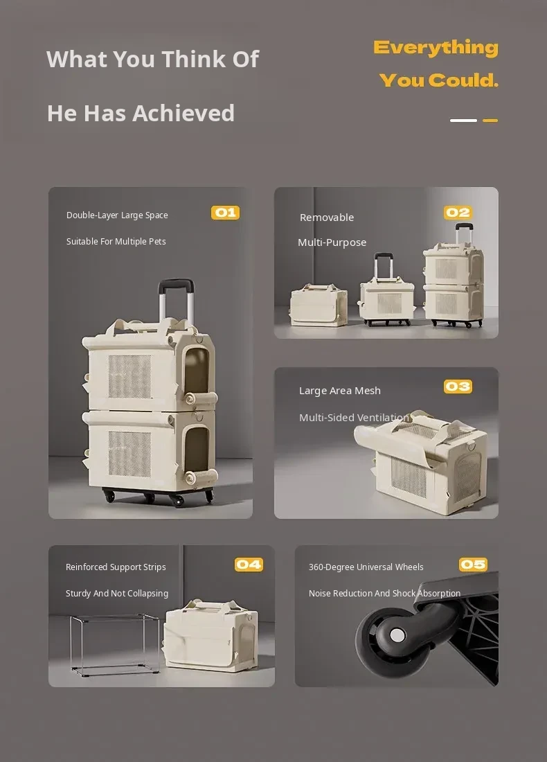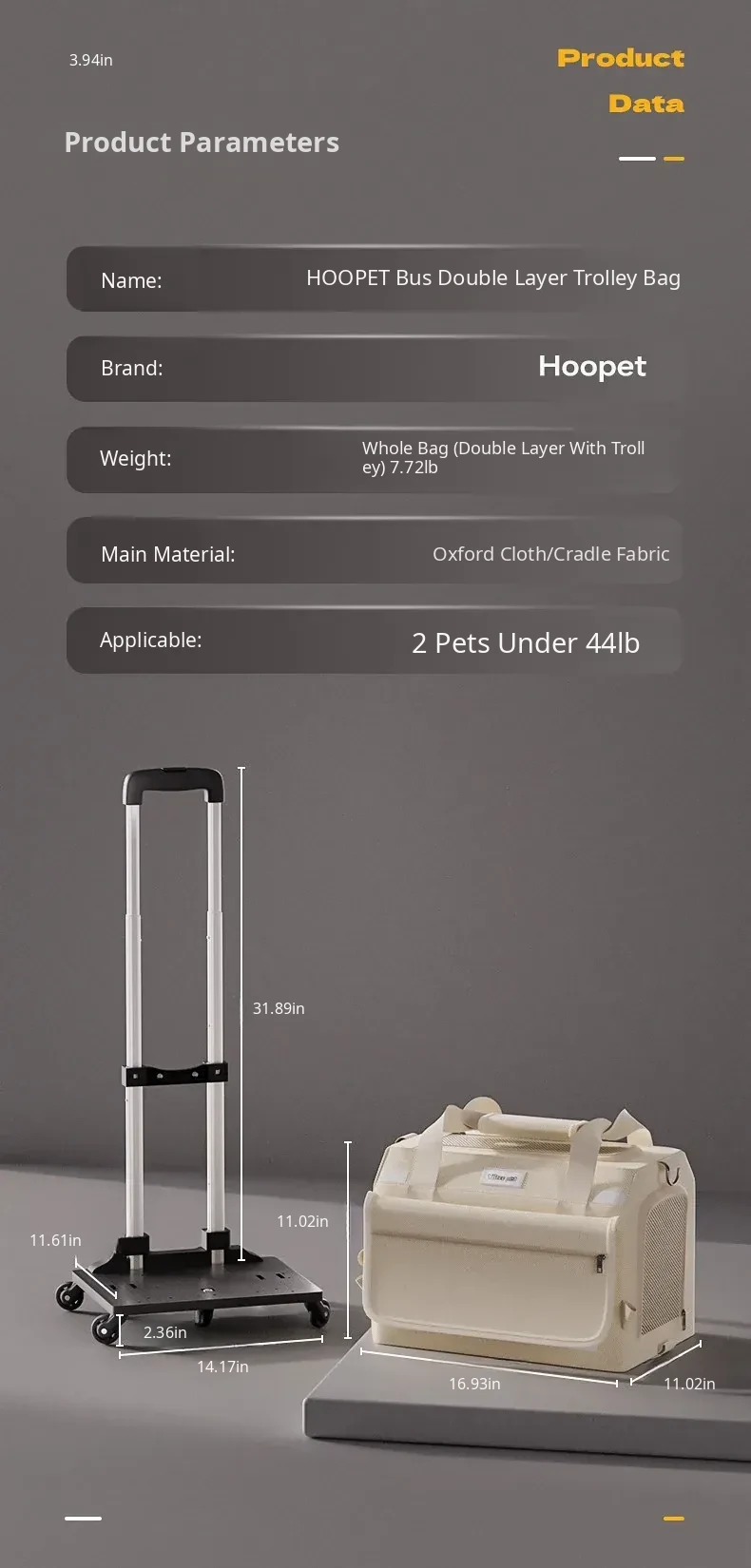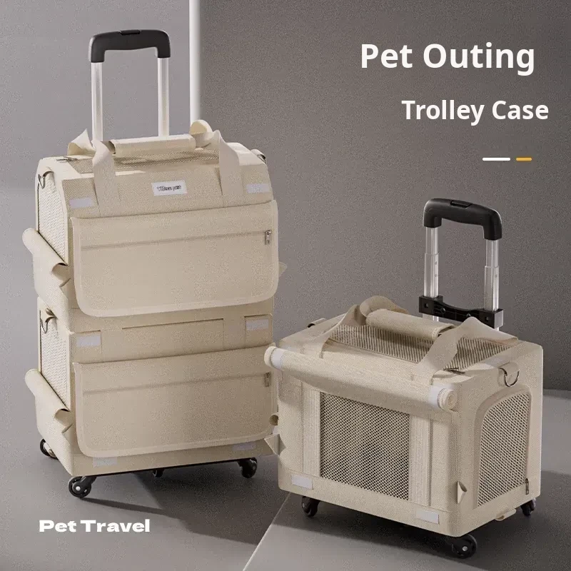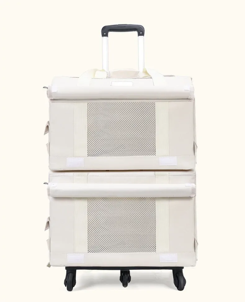 Large Double-Layer Cat Carrier Backpack - Portable Rolling Pet Luggage for Two Cats or Dogs - Ideal for Travel with Your Furry Friends!