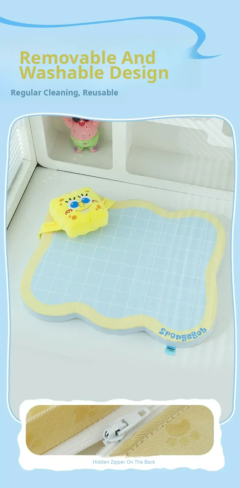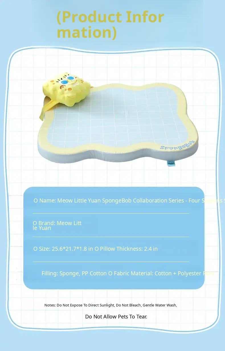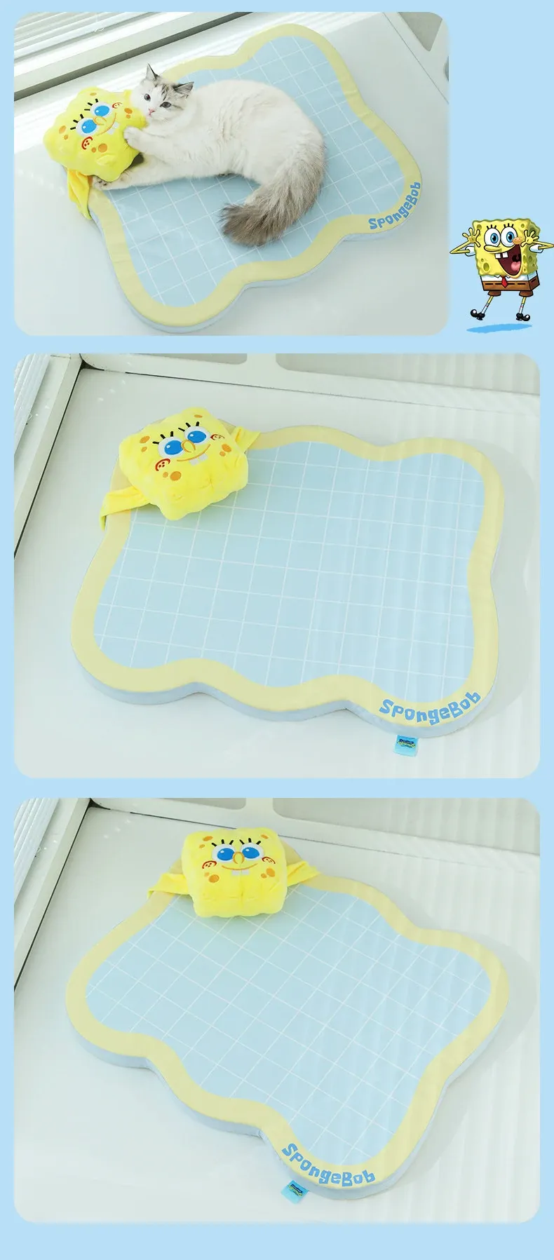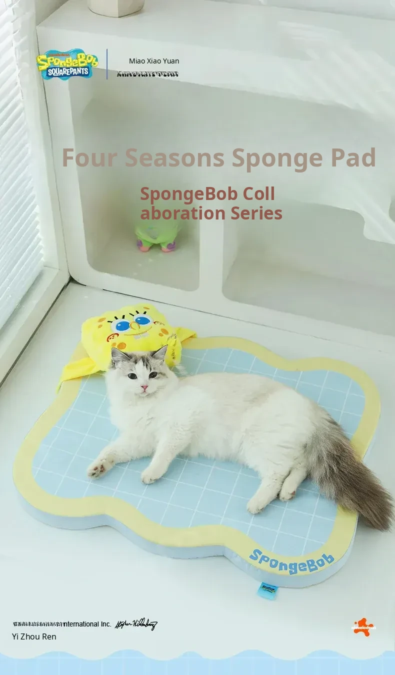 Meow Xiao Yuan SpongeBob Collaboration Cat & Dog Cooling Mat - Summer Cool Touch Sponge Pad, Non-Slip Sleeping Mat for Cats and Dogs