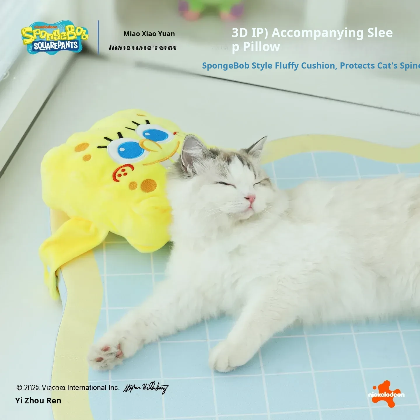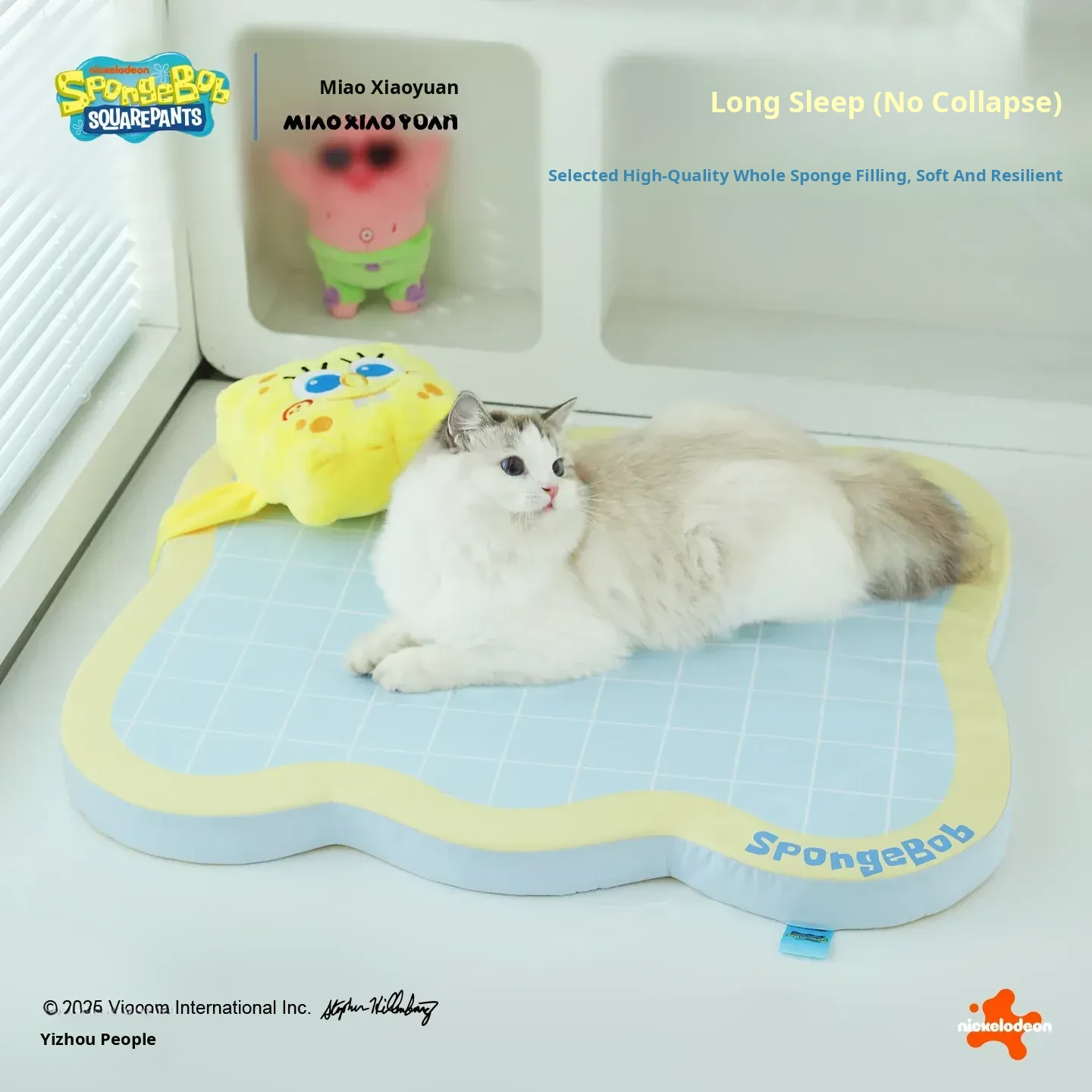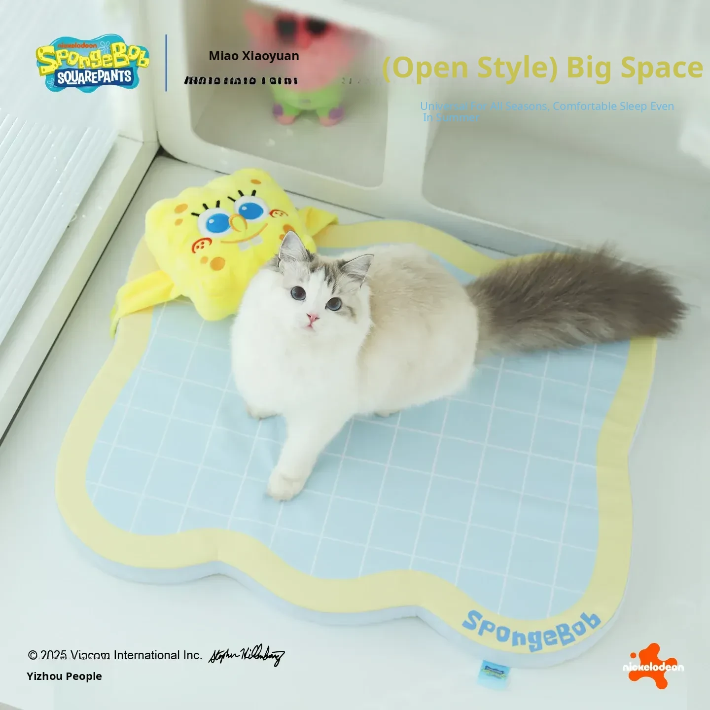 Meow Xiao Yuan SpongeBob Collaboration Cat & Dog Cooling Mat - Summer Cool Touch Sponge Pad, Non-Slip Sleeping Mat for Cats and Dogs