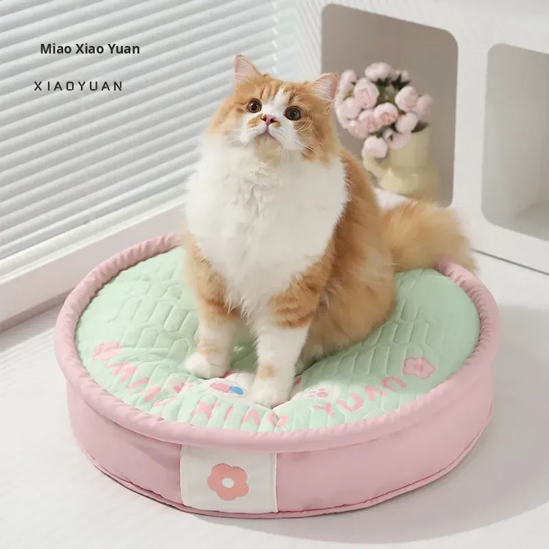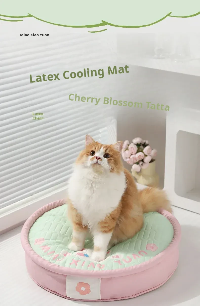Meow Xinyuan Latex Cooling Mat - Sakura Tartar Design, Universal for All Seasons, Perfect Summer Sleeping Pad for Pets