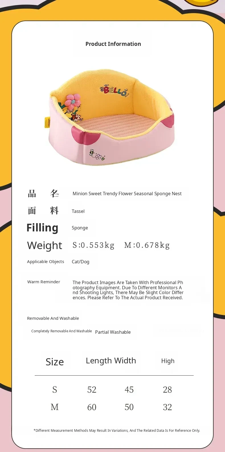 Minion Floral Sponge Pet Bed - Summer Cooling Mat for Medium and Small Dogs & Cats, Perfect for All Seasons! Cozy and Stylish Sleeping Spot for Your Furry Friends!
