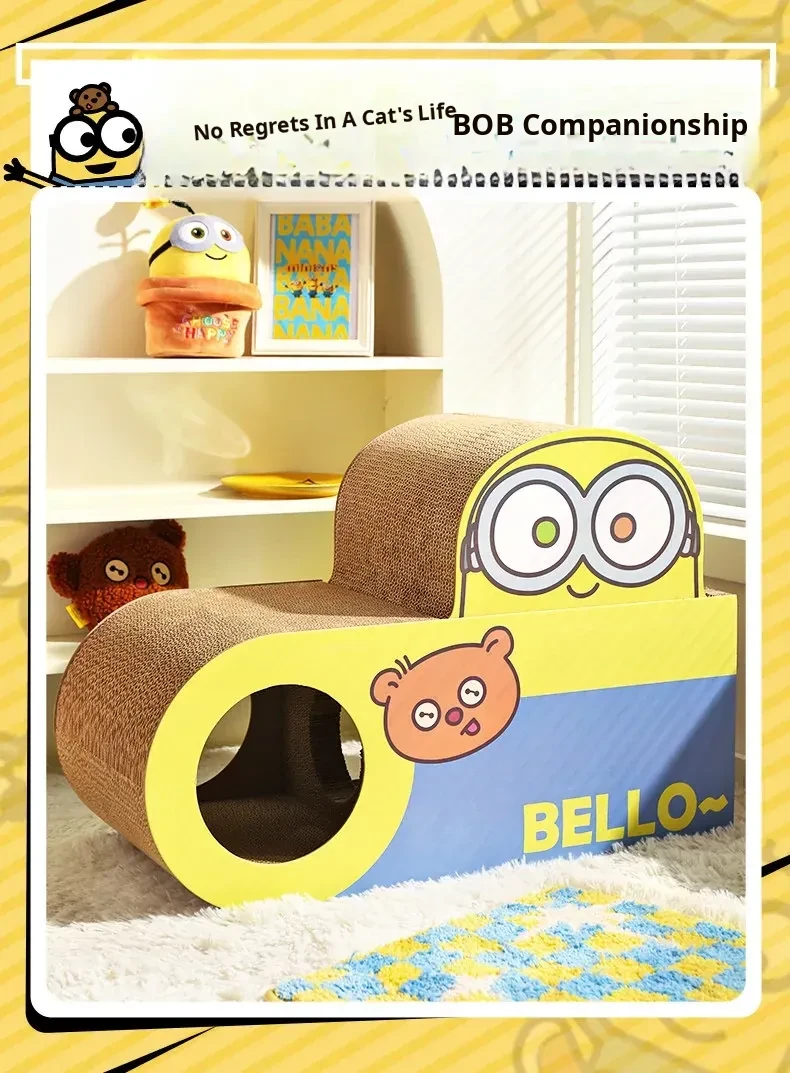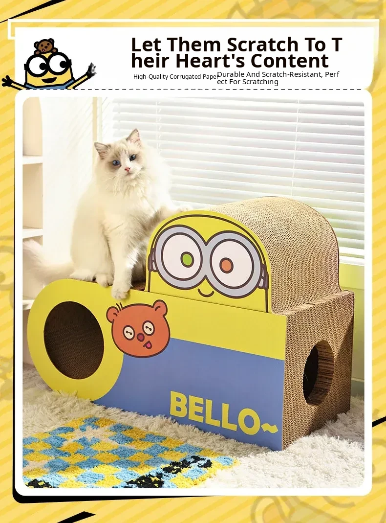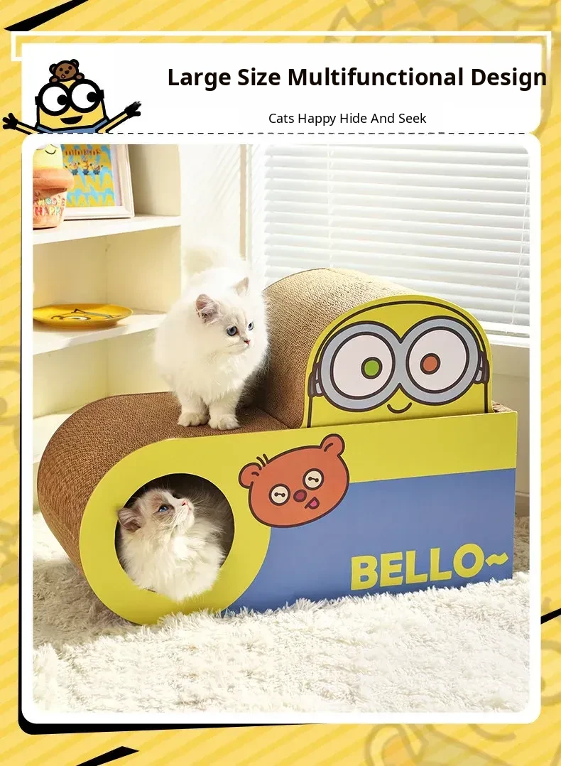 Minion-Inspired Large Cat Scratching Board - Durable Cat Bed & Lounger Combo, Perfect for Play and Relaxation, Ideal for Your Feline Friend!