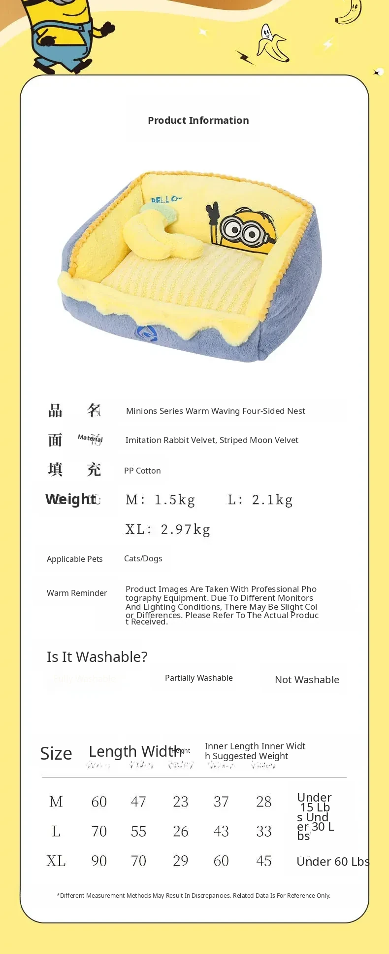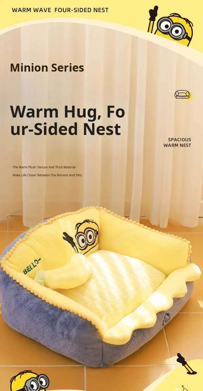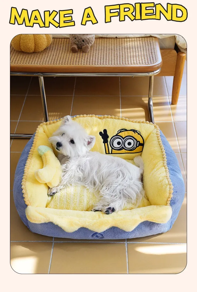 Minions Cozy Winter Dog Bed | Removable & Washable Small Dog House with Four-Sided Warmth for Fall and Winter - Perfect for Your Adorable Pooch!
