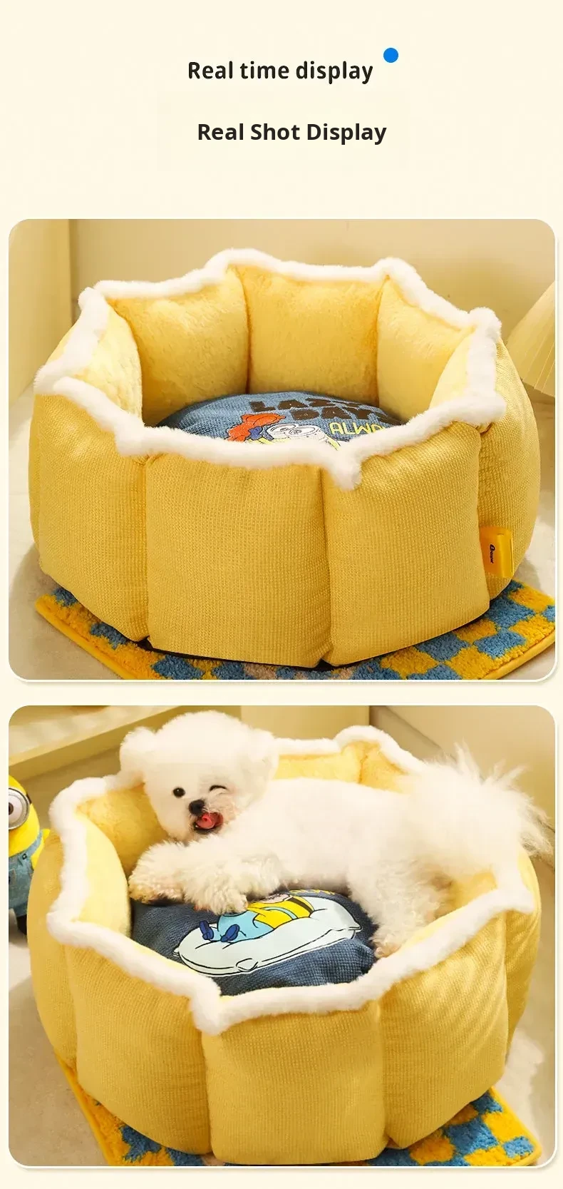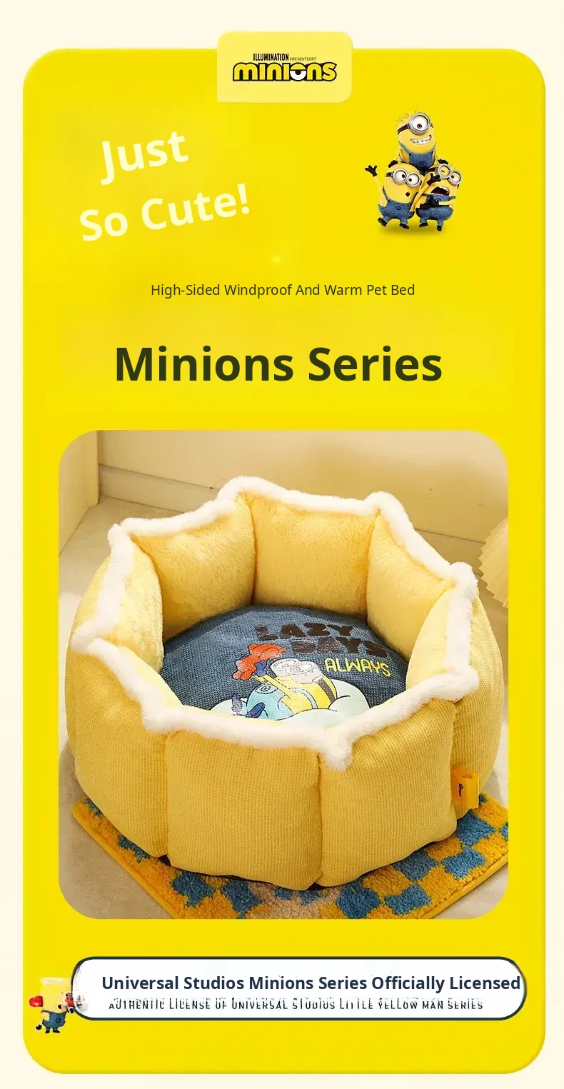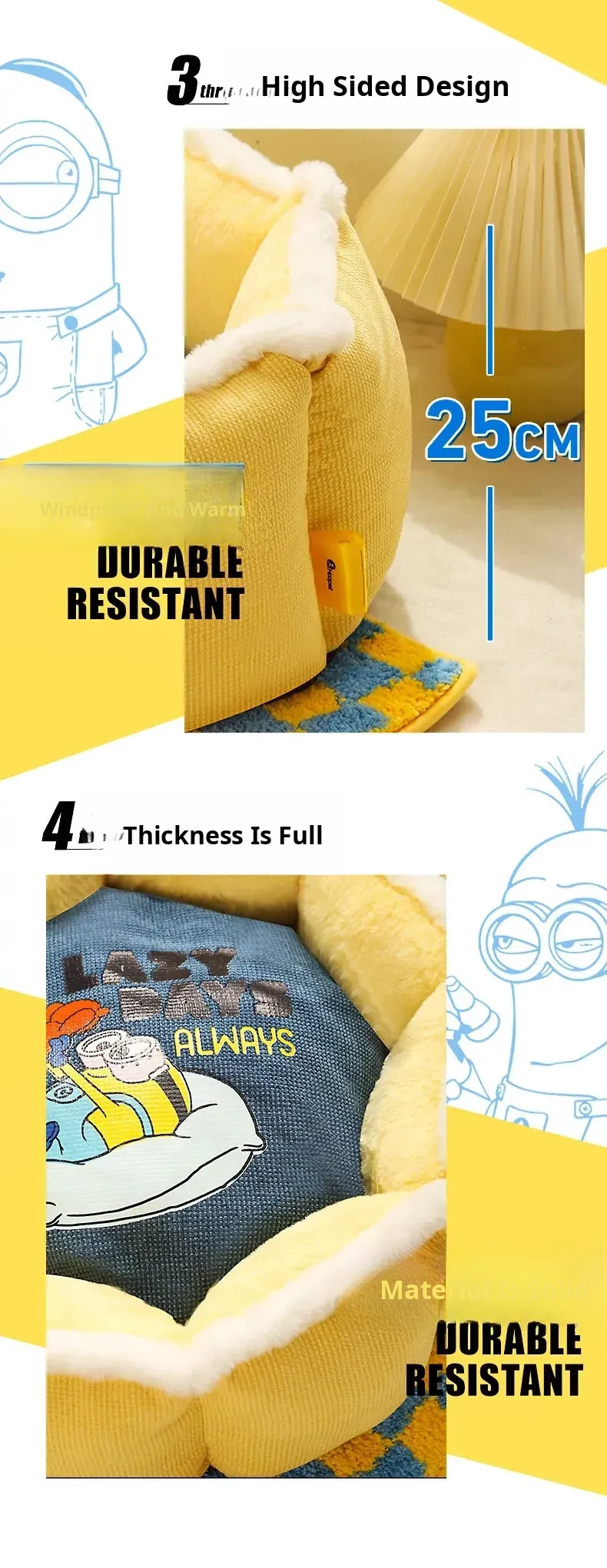 Minions Series BOB&TIM Pet High-Sided Windproof Warm Bed for Small Dogs and Kittens - Ideal for Deep Sleep and Comfort!