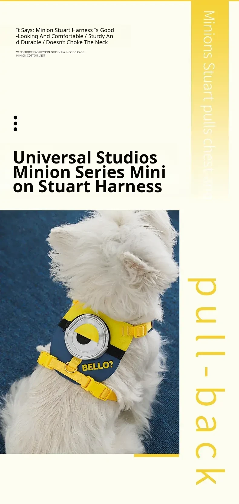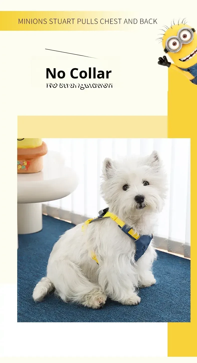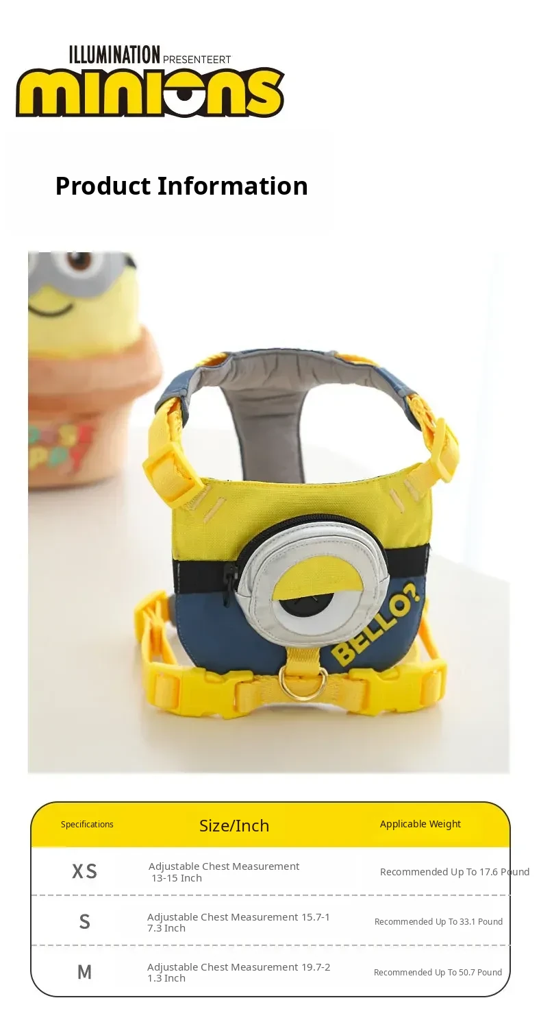 Minions Series Stuart Dog Harness and Leash Set - Durable, Comfortable, No-Choke Design for Puppies and Small Dogs - Perfect for Safe and Fun Walks!