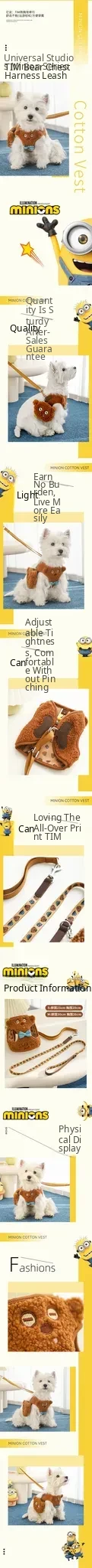 Minions Series TIM Bear Dog Harness and Leash Set - Adjustable, Fleece-Lined for Small to Medium Dogs - Perfect for Outdoor Adventures!