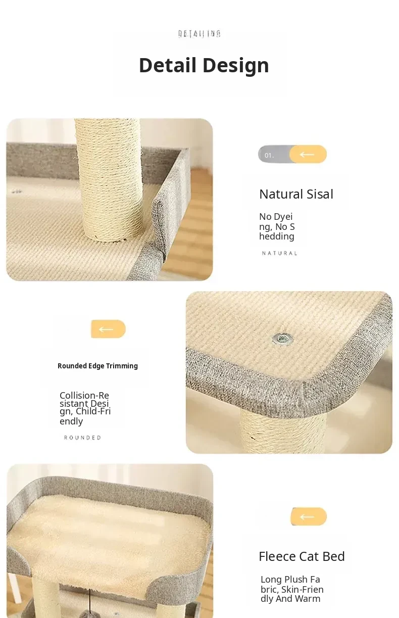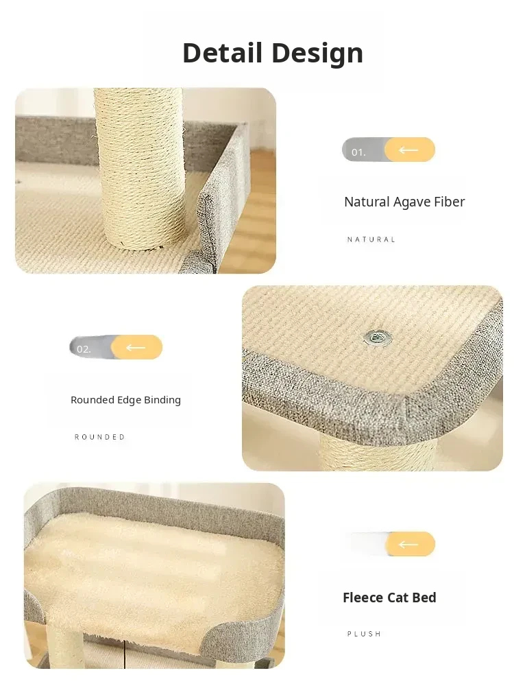 Multi-Functional Cat Tree with Scratching Pad and Cozy Bed - Year-Round Use, Space-Saving Design for Small Homes, Ideal for Active Cats to Climb and Play!