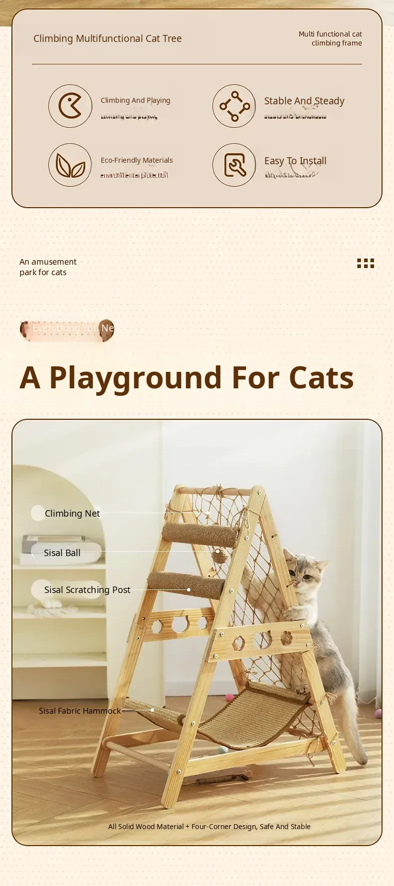 Climbing Net Cat Tree [Play & Sleep Combo, Scratching & Relaxing]