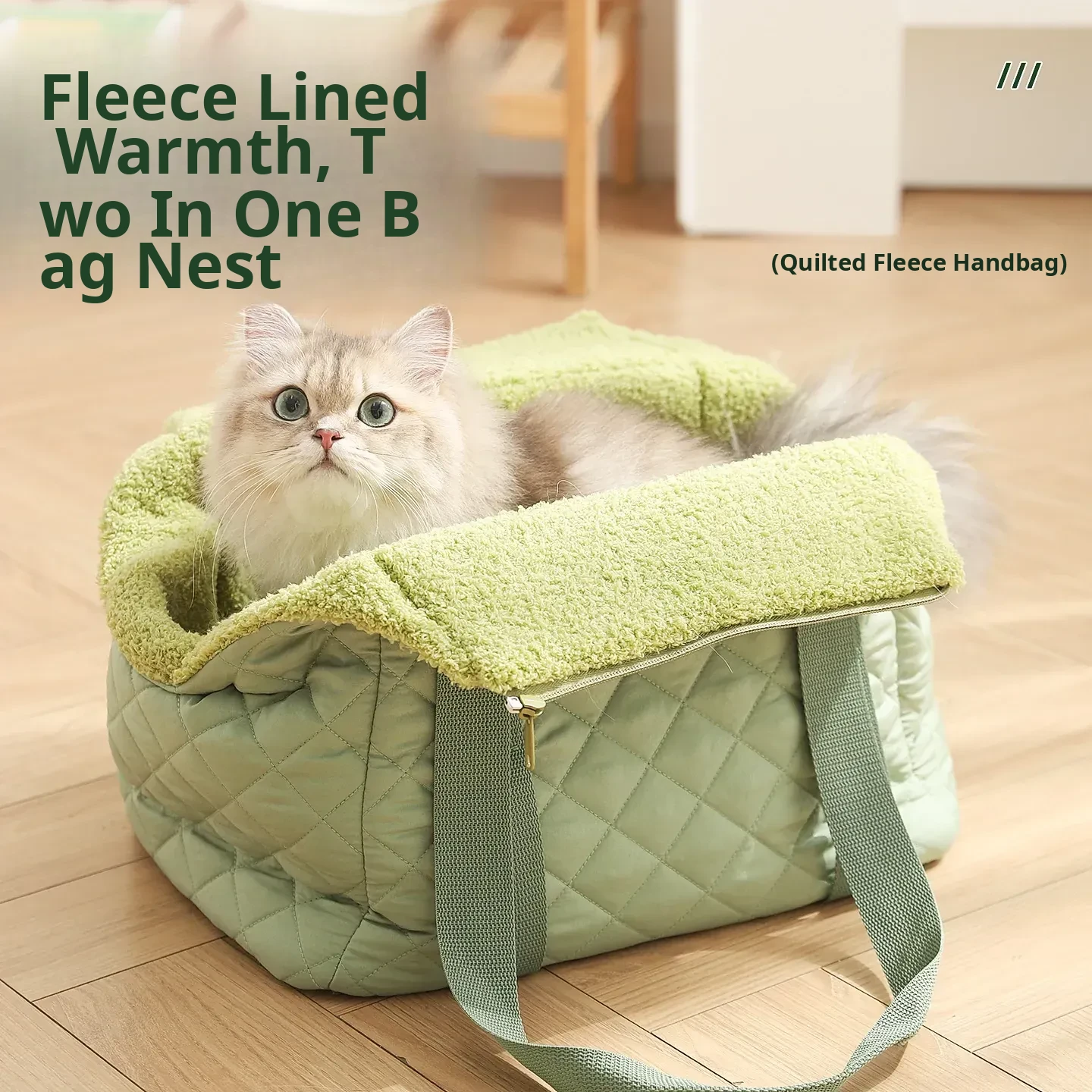 Portable Cat Carrier Backpack for Outdoor Travel - Large Capacity, Fleece-Lined, Winter Warmth, Stress-Relief Design for Cats and Dogs, Perfect for Car Rides