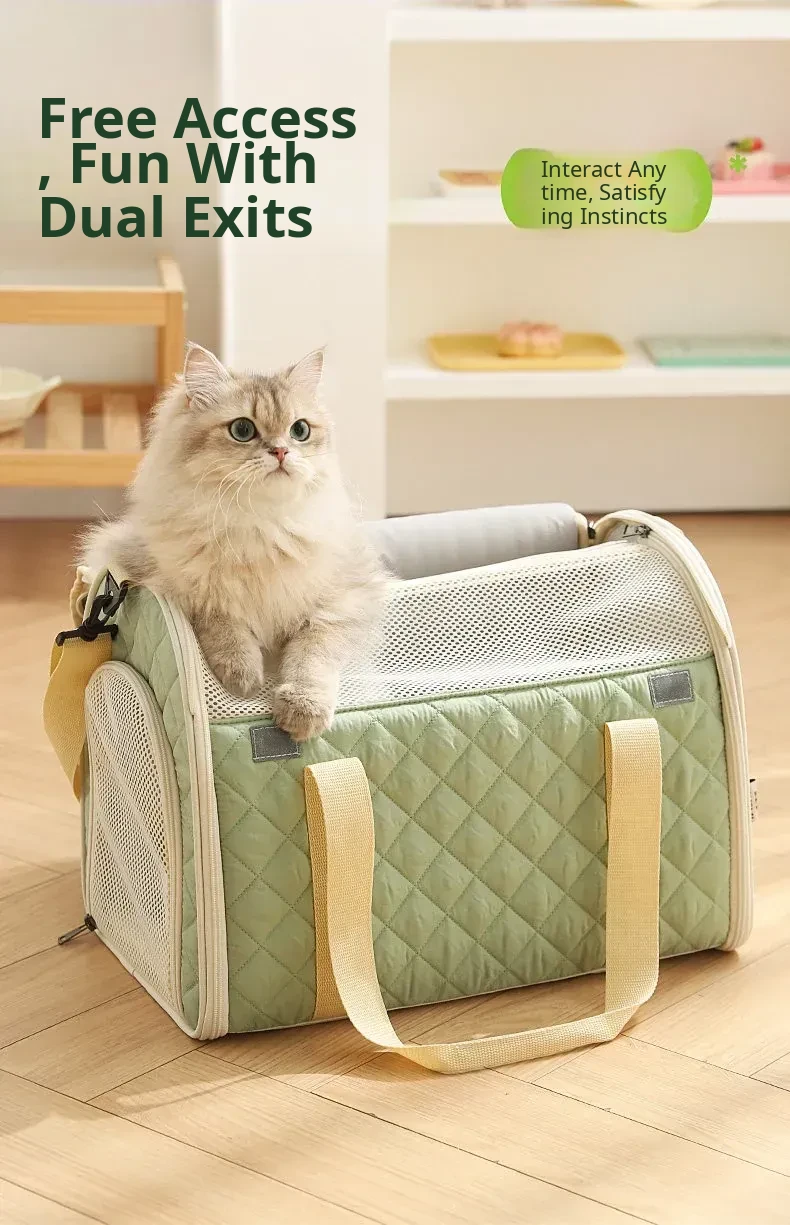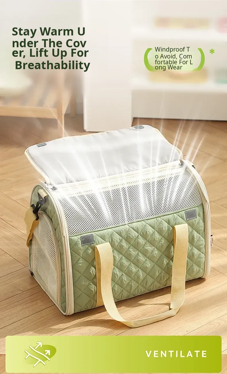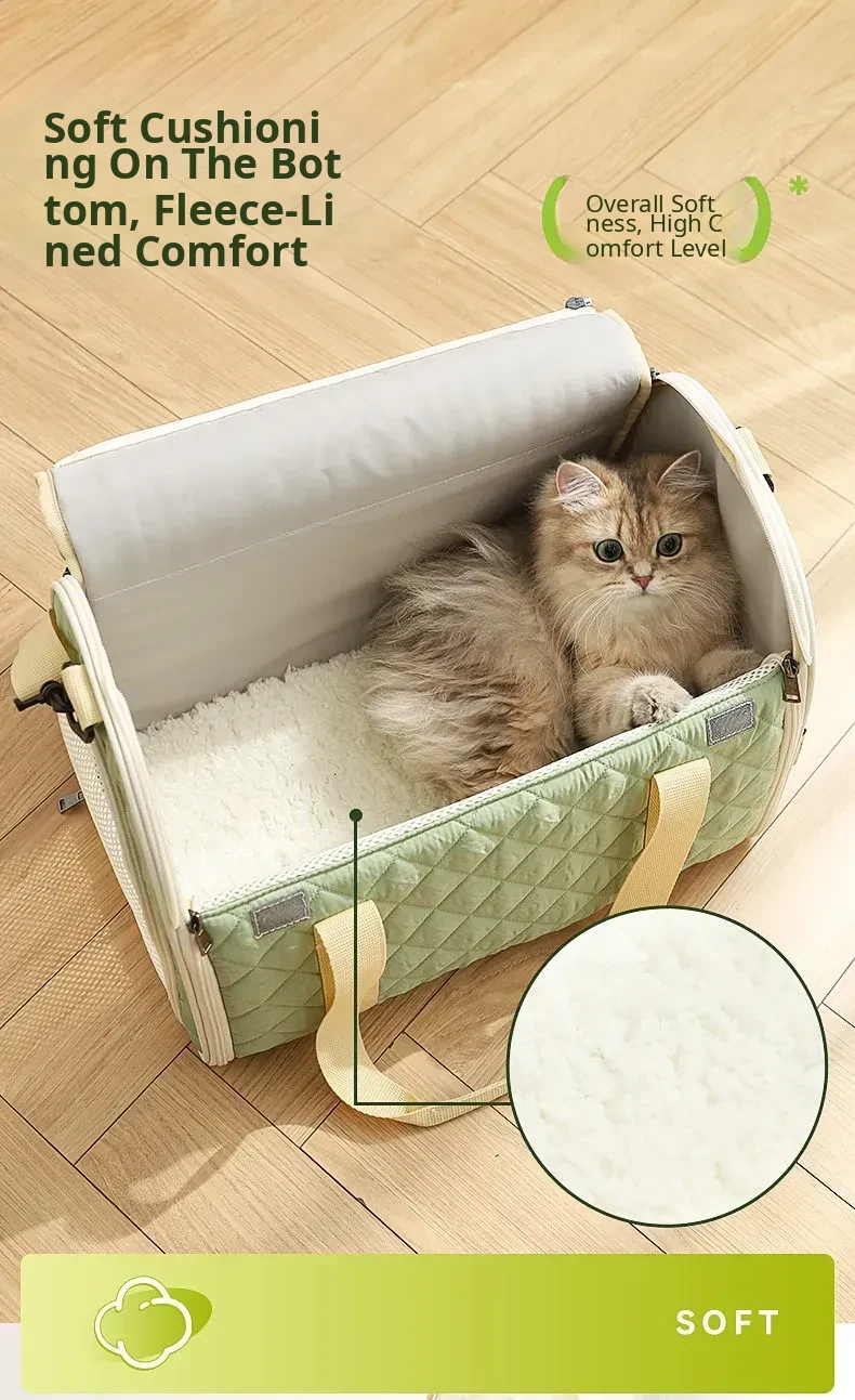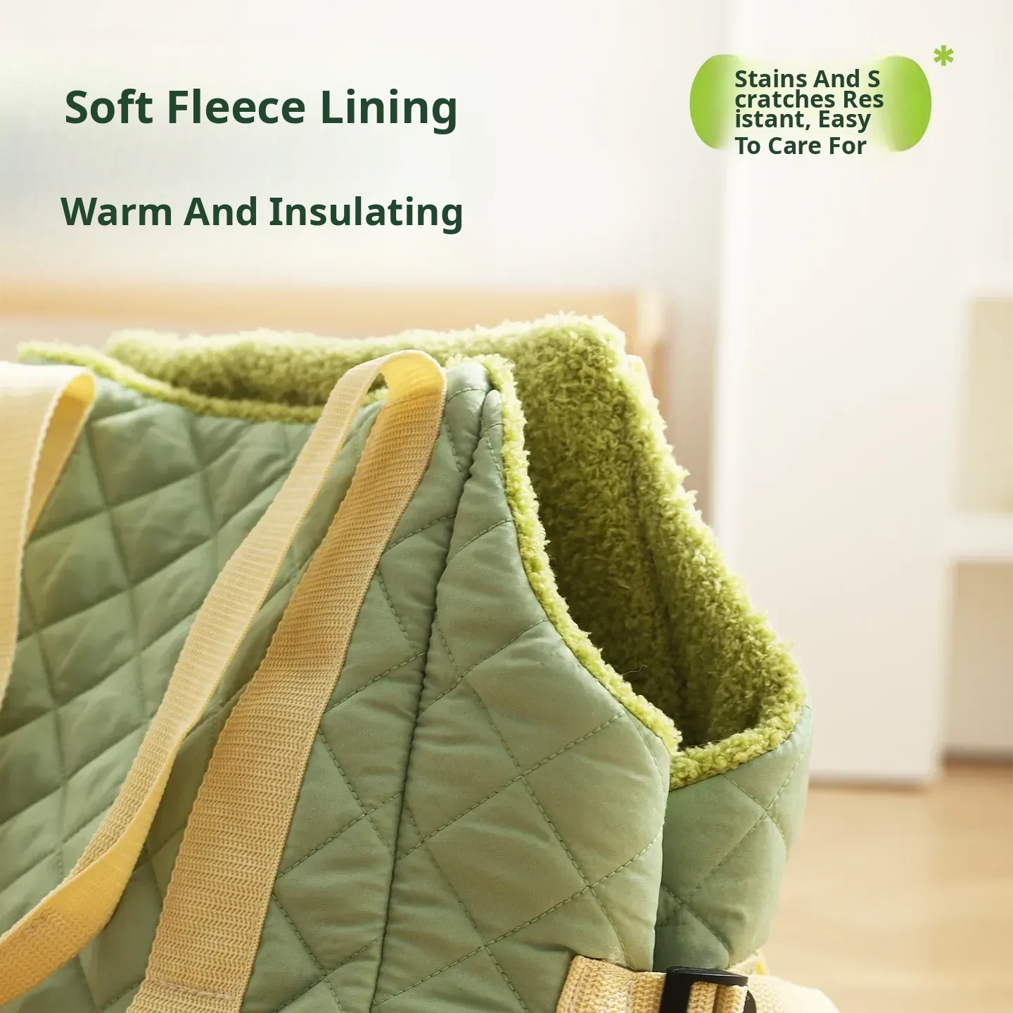 Vanilla Green - Includes Fleece Padding/Shoulder Straps [Windproof & Warm] Recoinended for 10kg Indoor Cats / 6kg