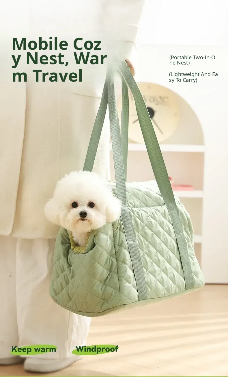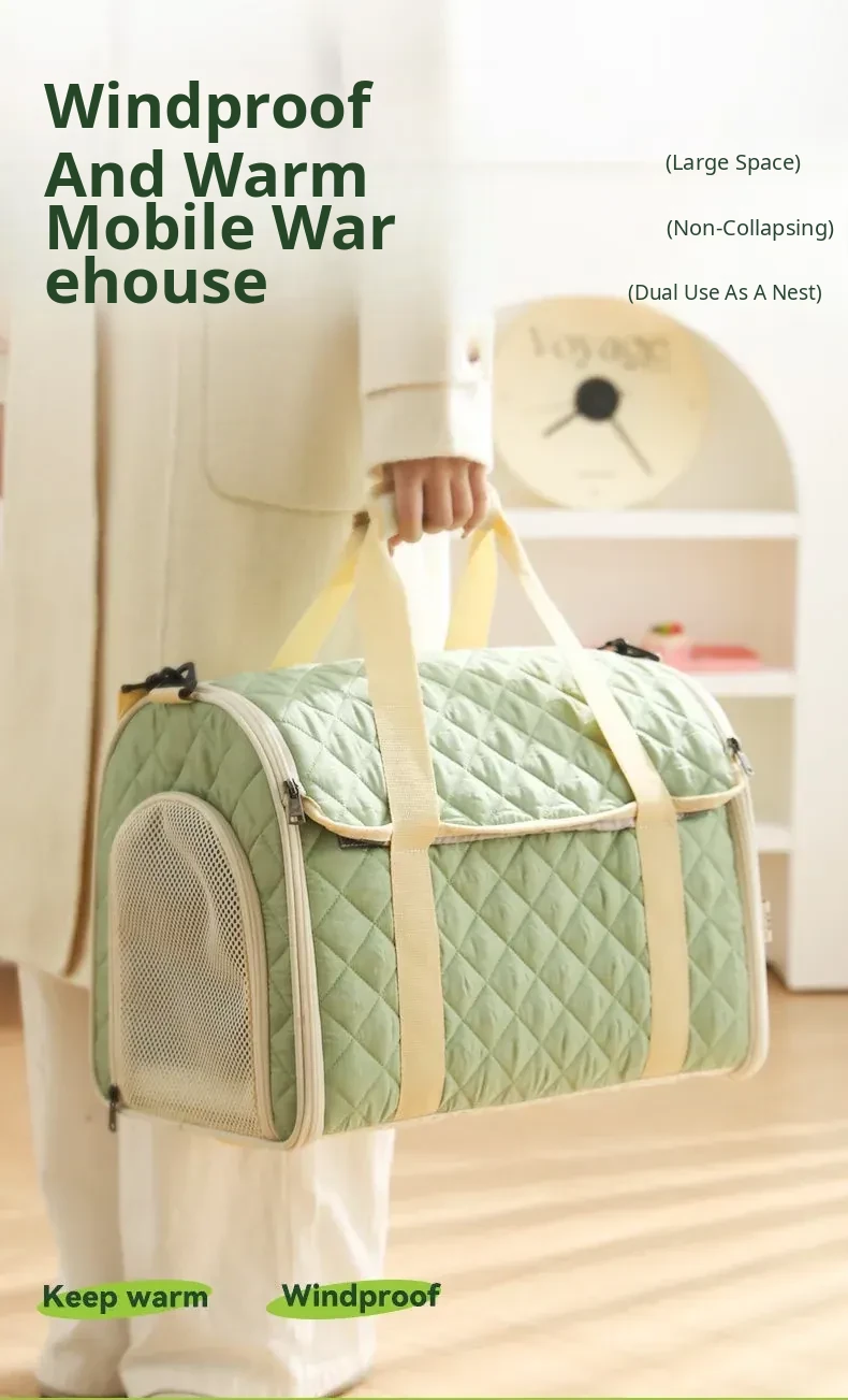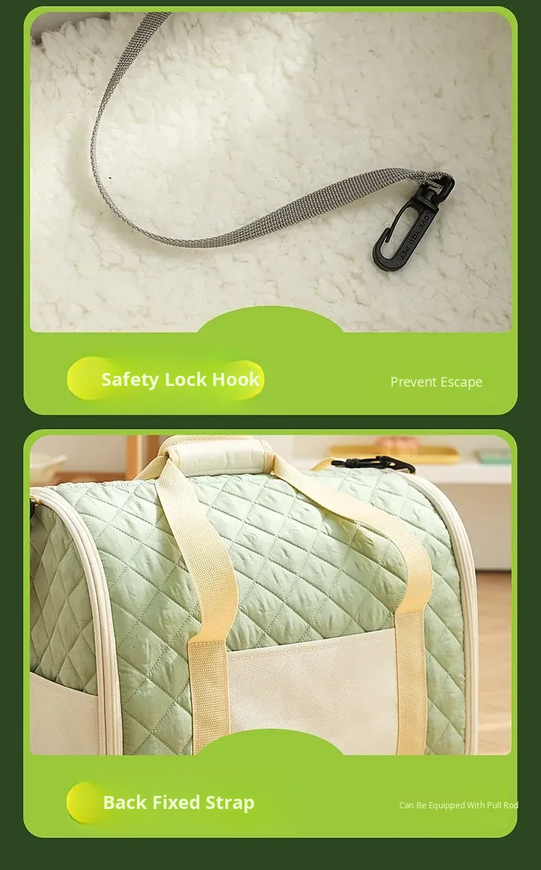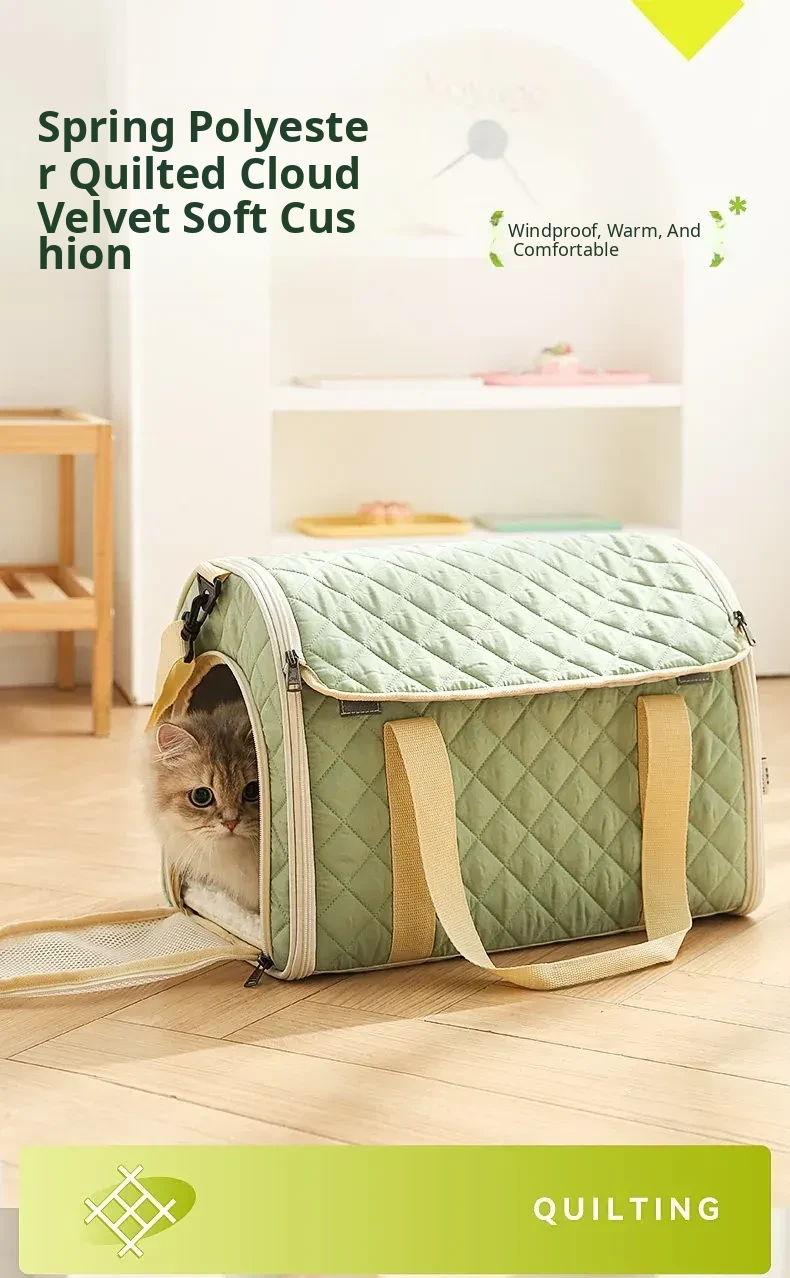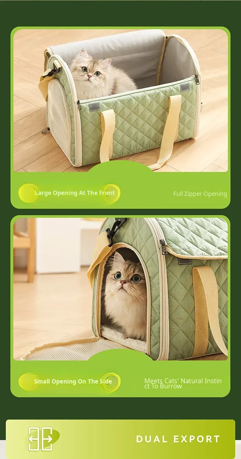 Vanilla Green - Includes Fleece Padding/Shoulder Straps [Windproof & Warm] Recoinended for 10kg Indoor Cats / 6kg