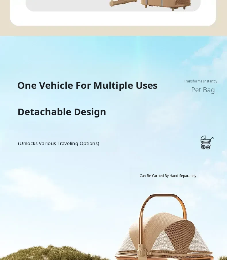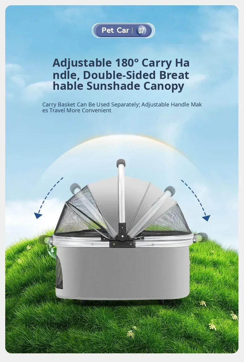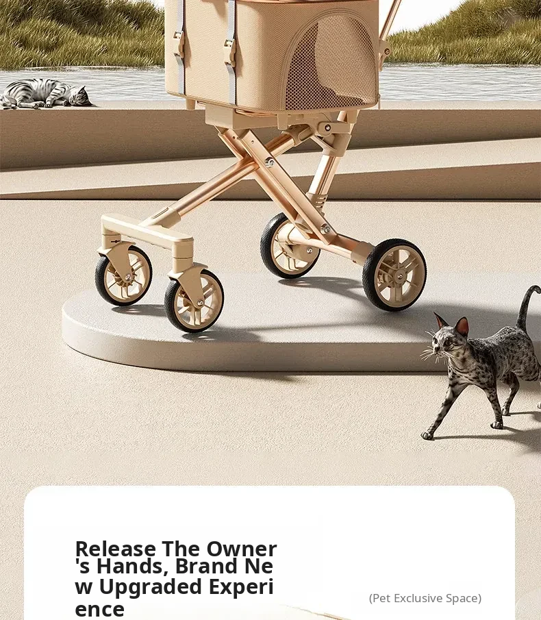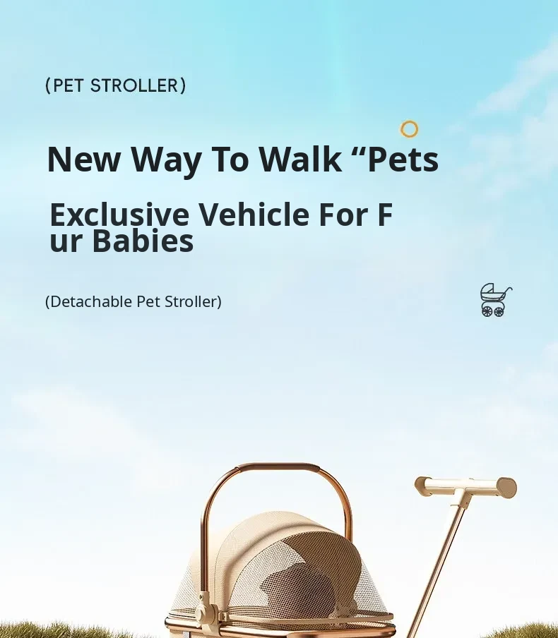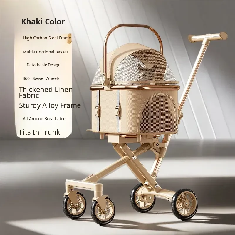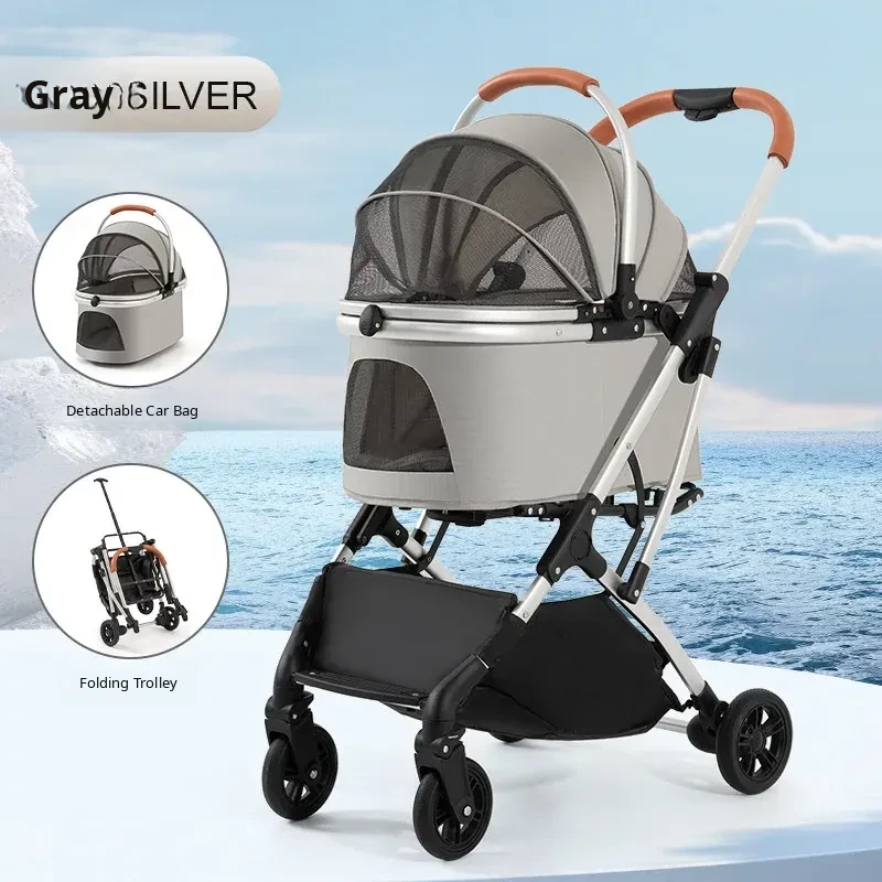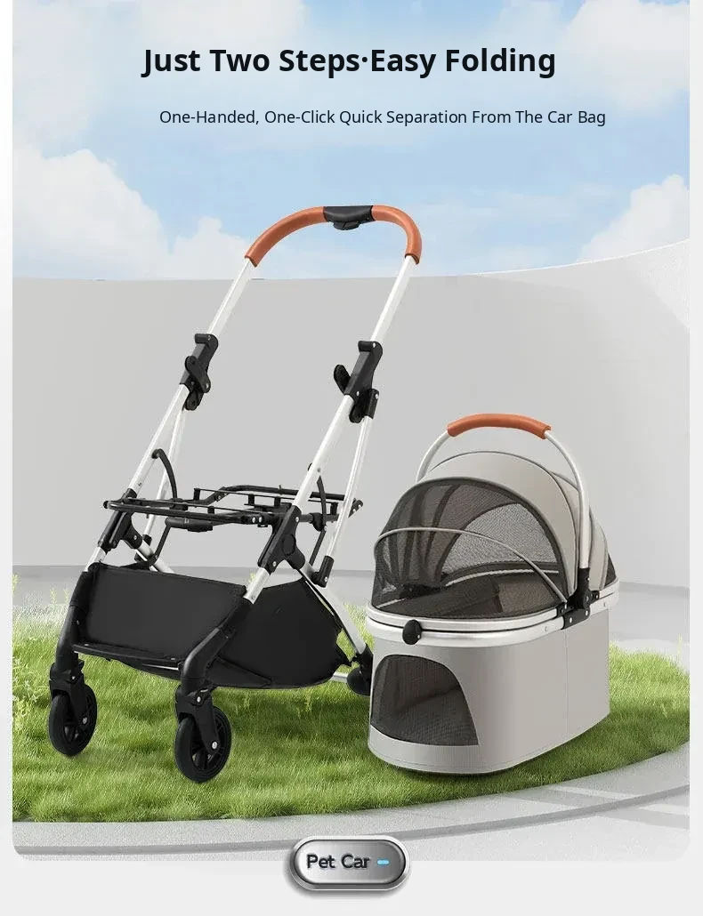Portable Pet Stroller Carrier for Cats and Small Dogs - Detachable, Foldable, and Convenient for Outdoor Adventures