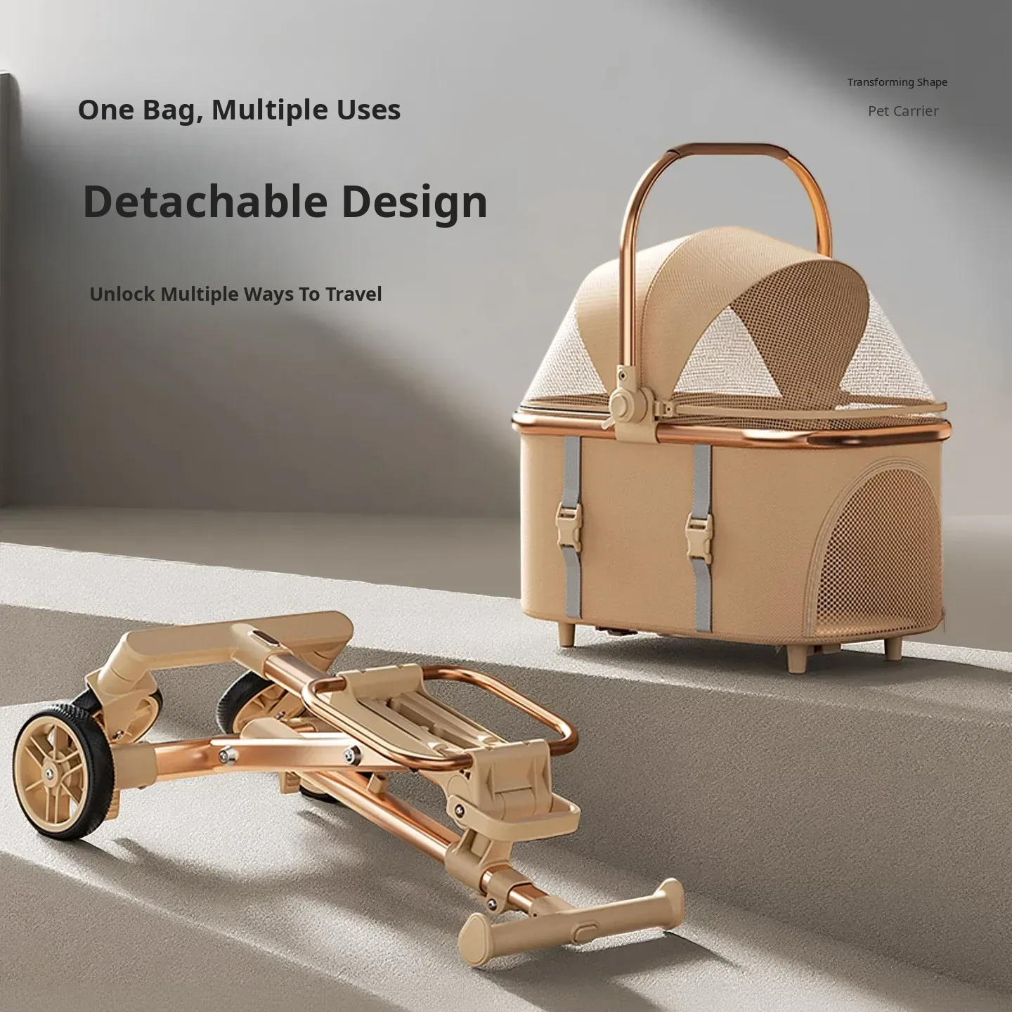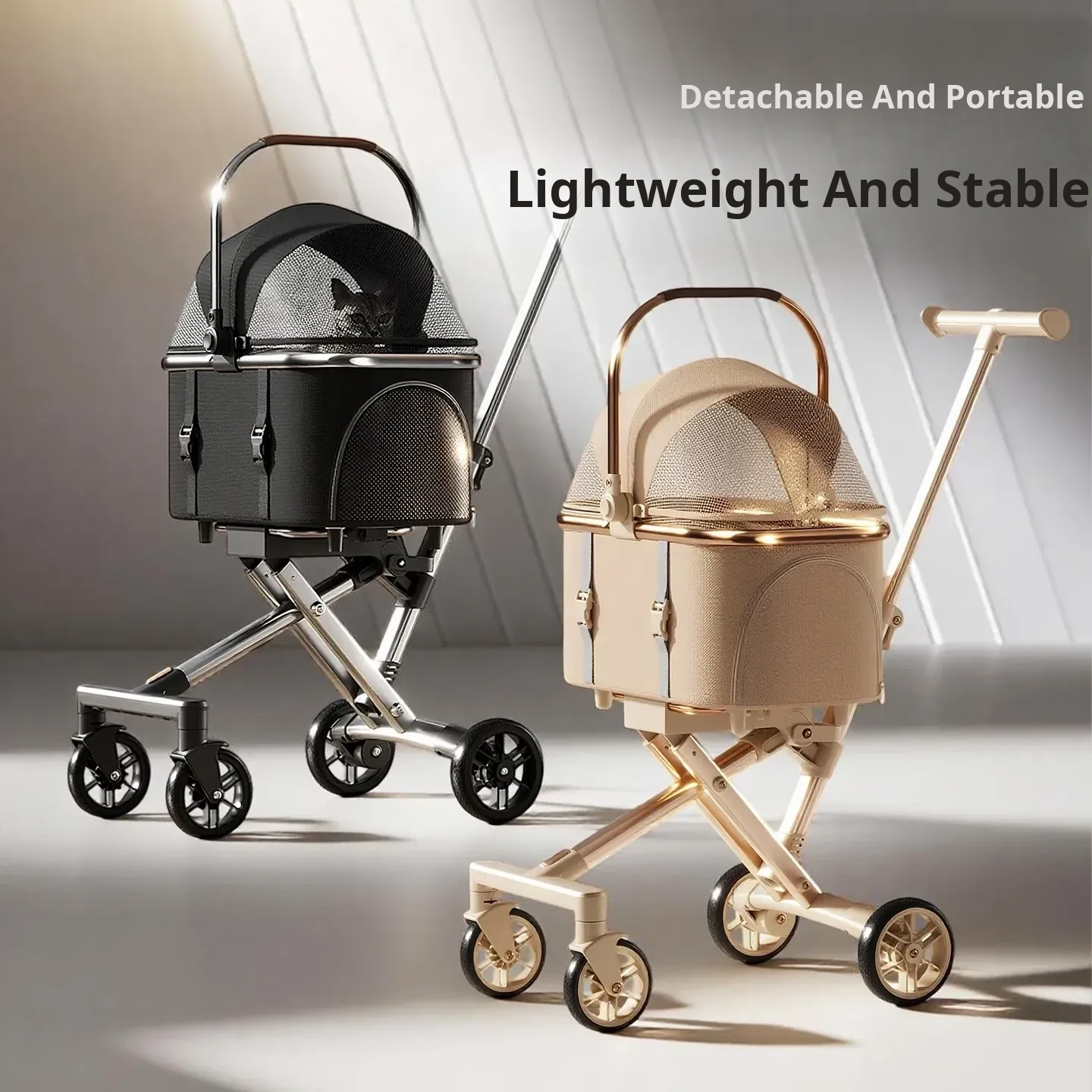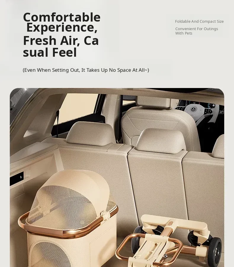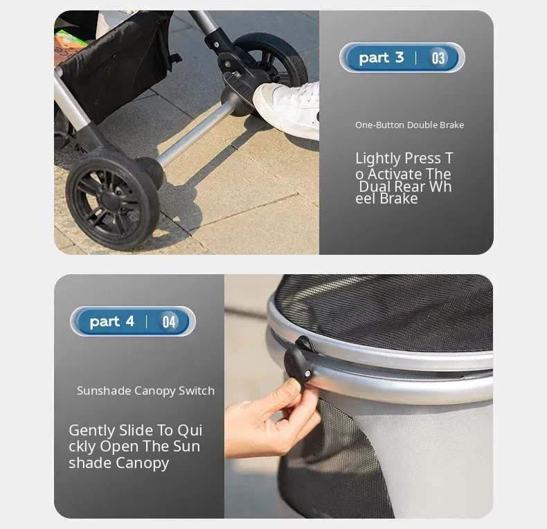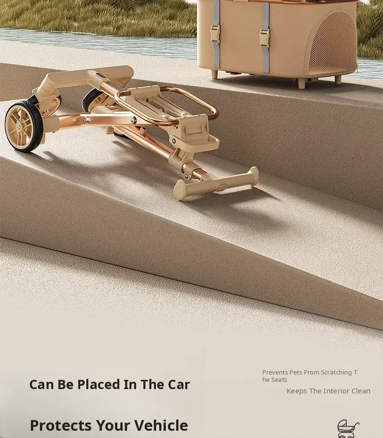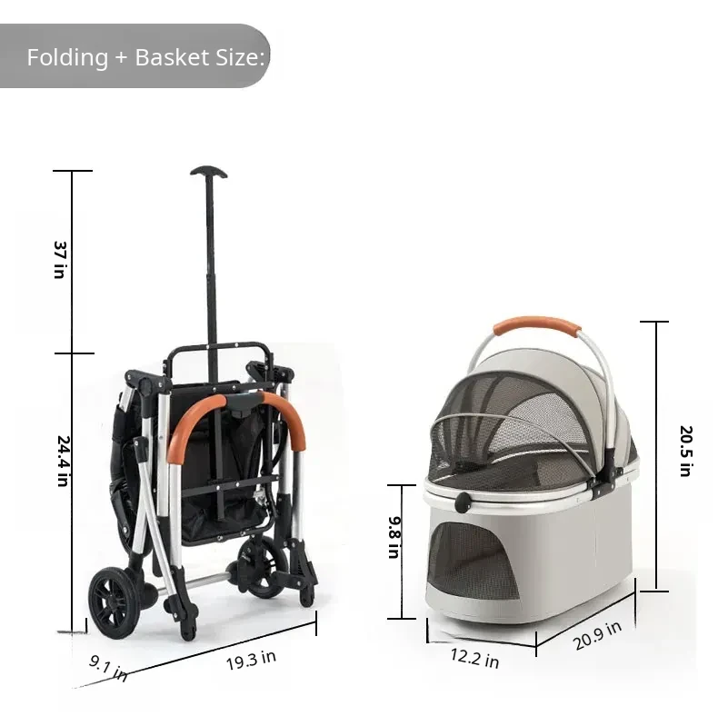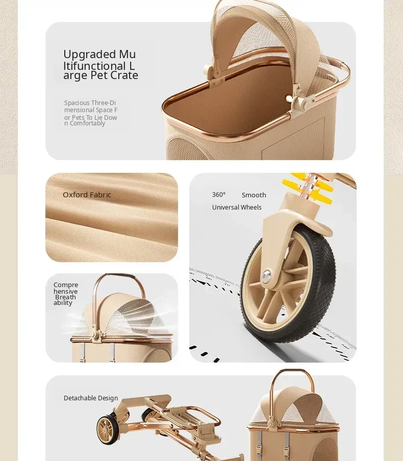 Portable Pet Stroller Carrier for Cats and Small Dogs - Detachable, Foldable, and Convenient for Outdoor Adventures