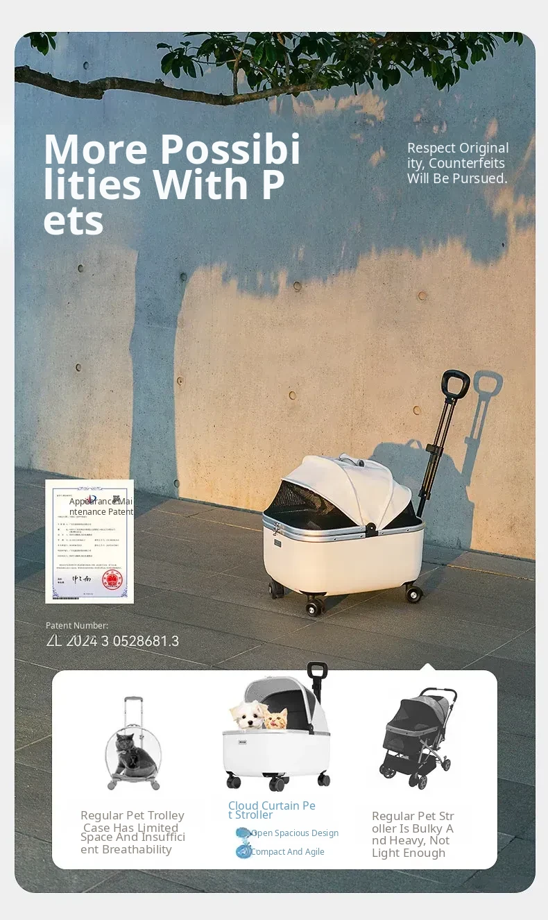 Portable Pet Stroller for Dogs and Cats - Convenient Push Cart for Small Dogs and Kittens, Perfect for Outdoor Walks and Travel, Includes Rolling Backpack Design for Easy Carrying