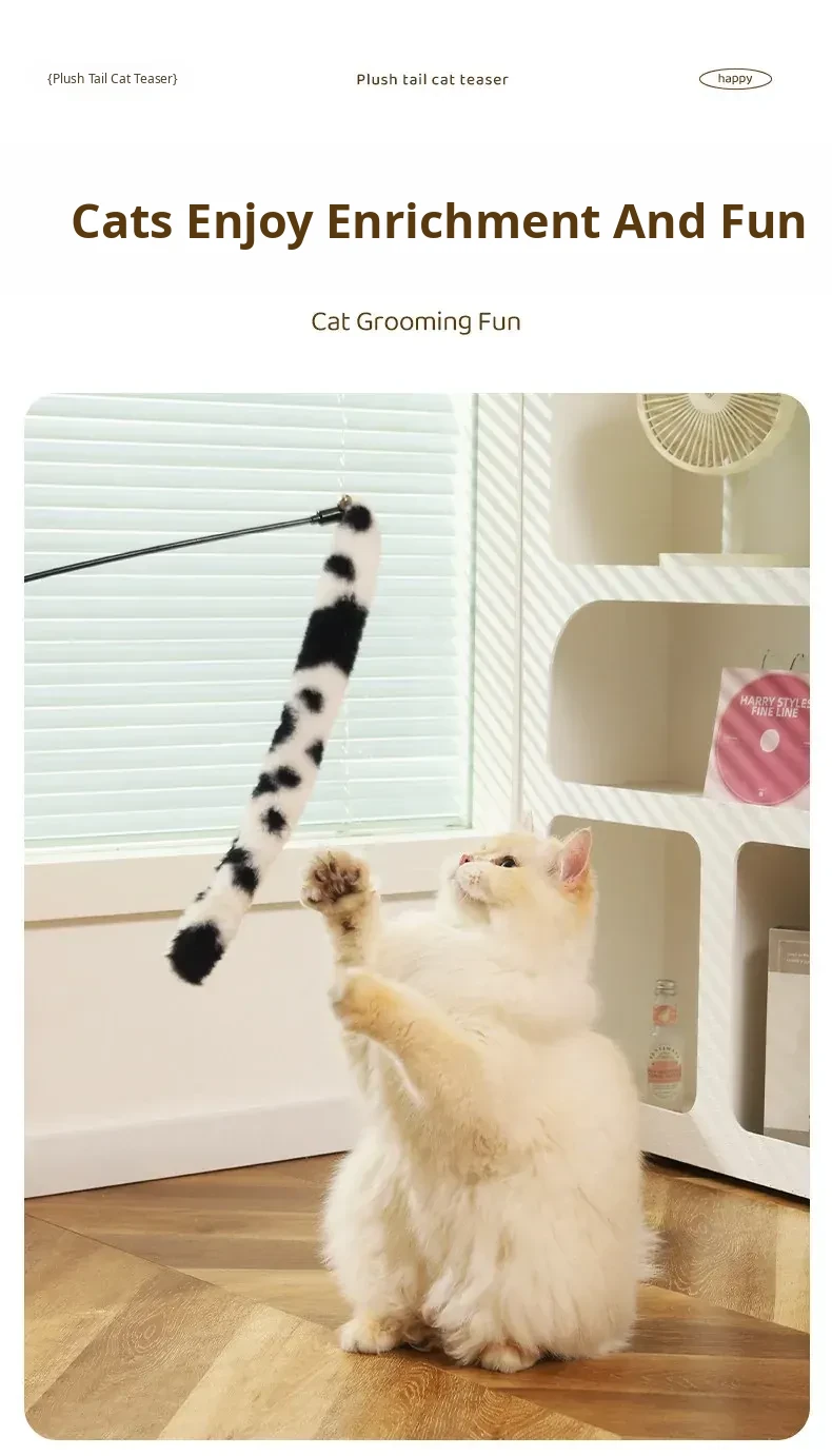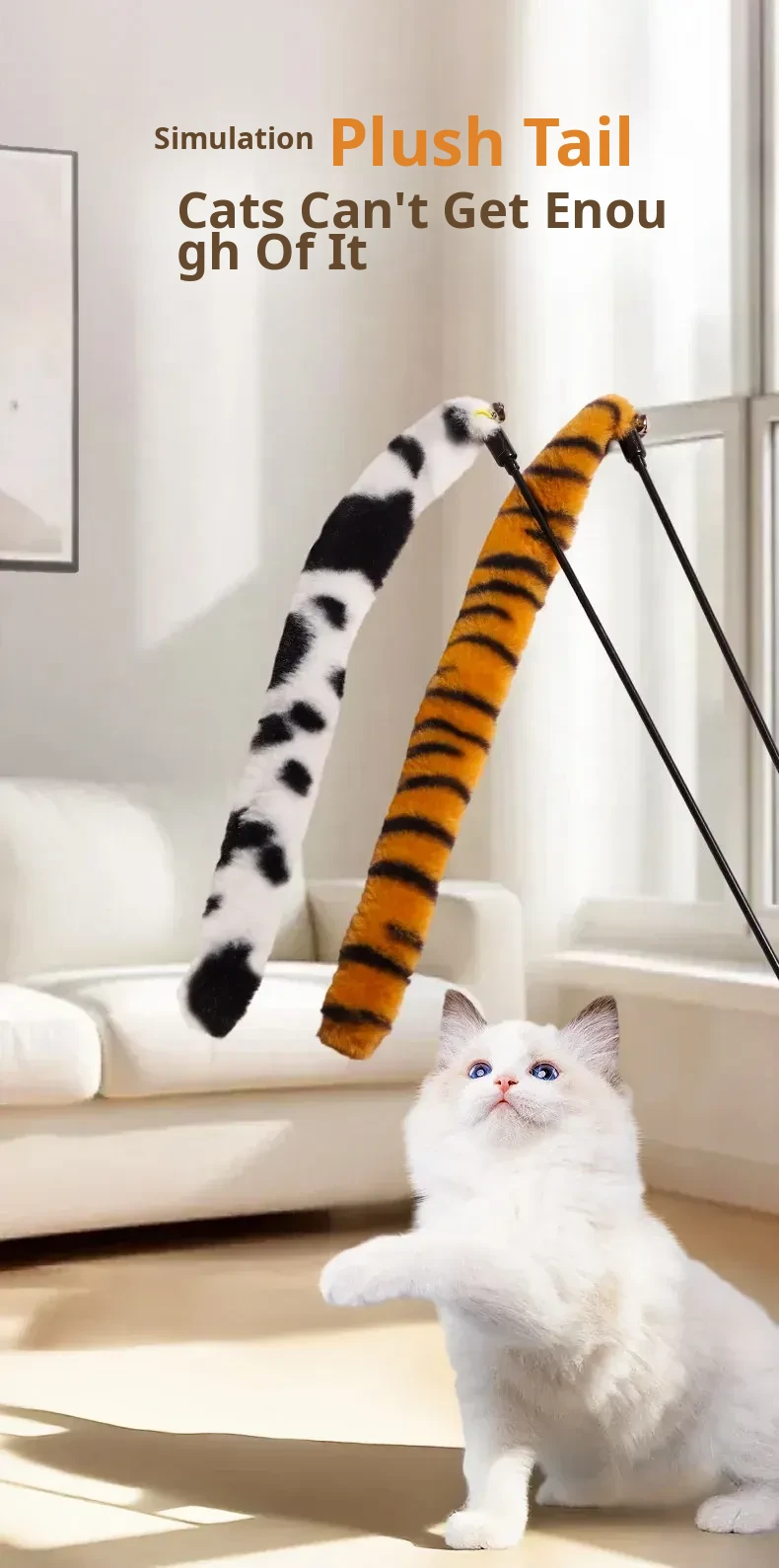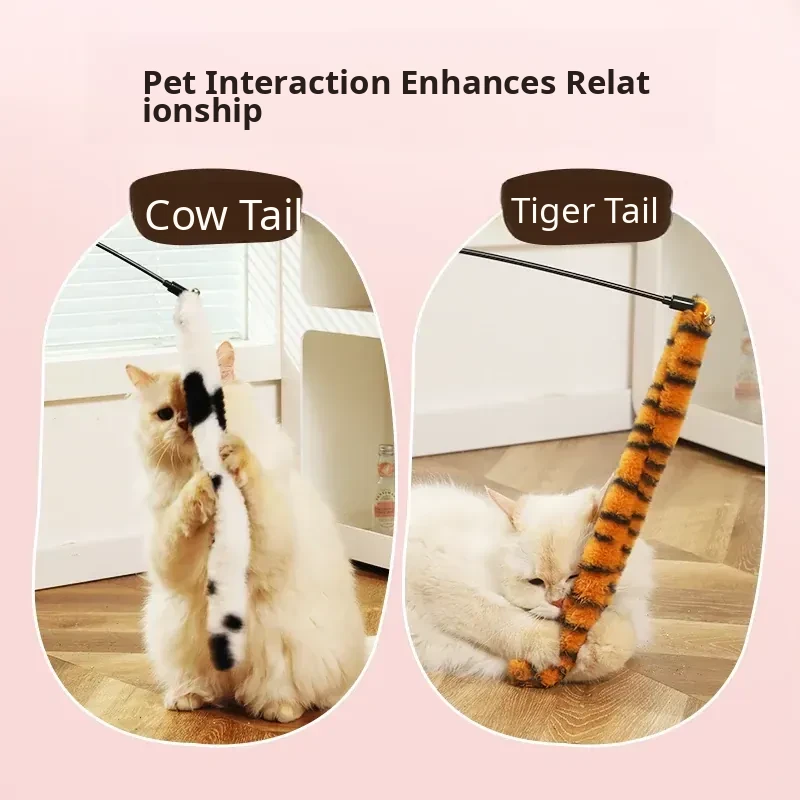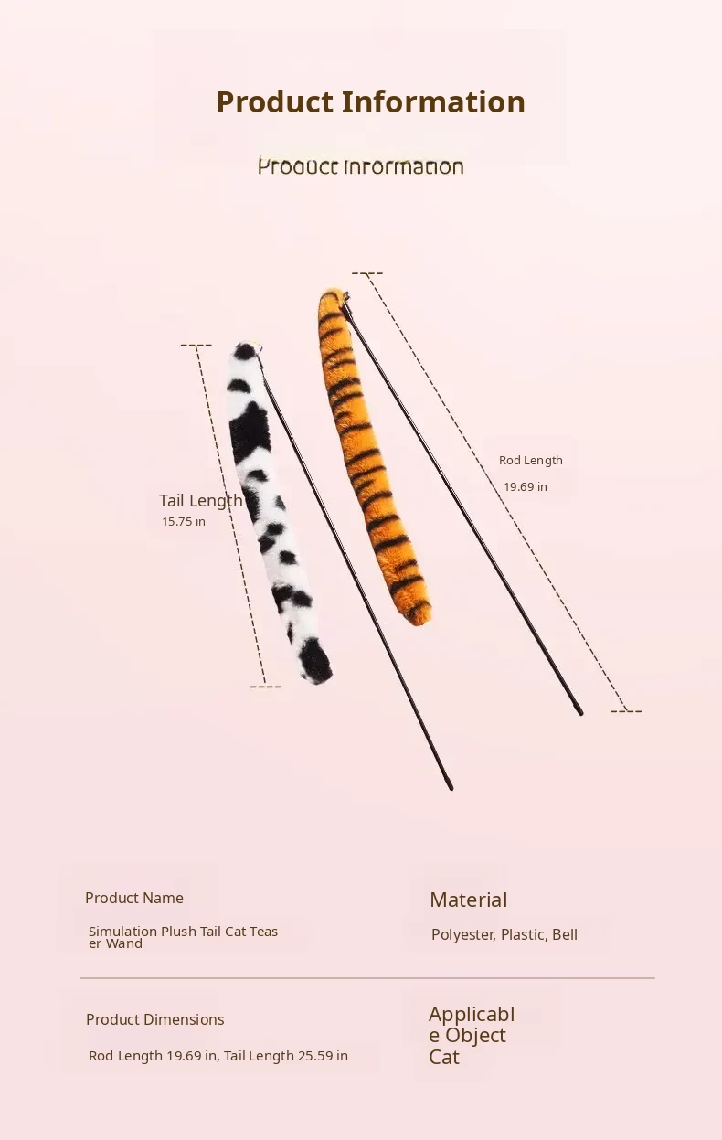Realistic Tail Cat Teaser Wand - Long Rod Interactive Toy for Cats & Kittens, Perfect for Engaging Playtime and Reducing Boredom, Must-Have Pet Accessory