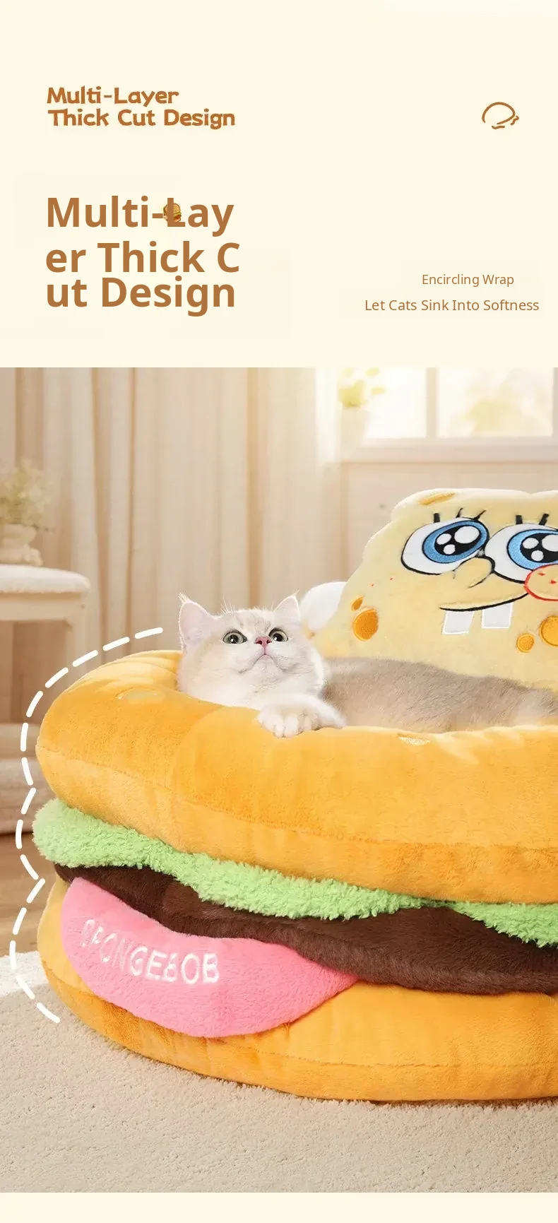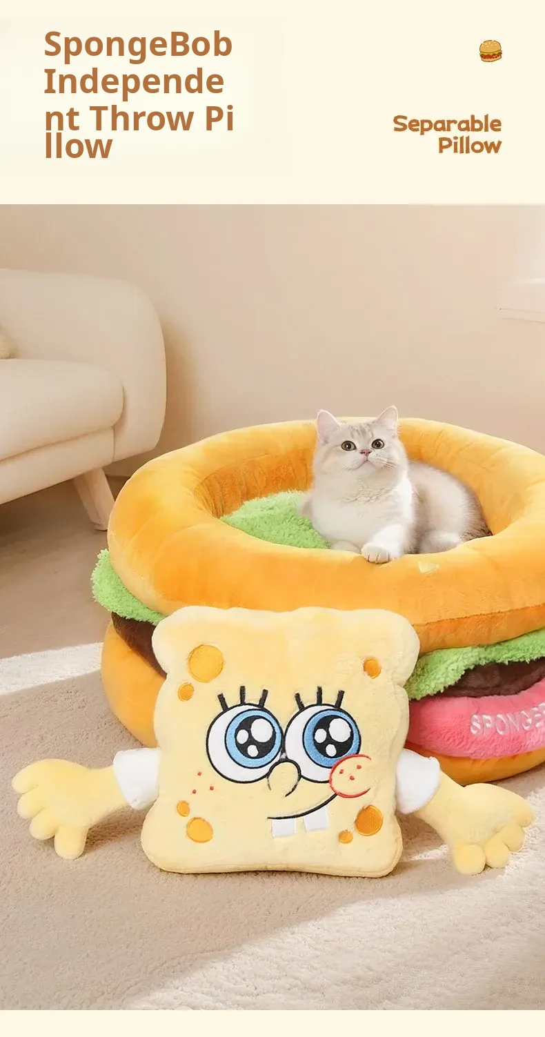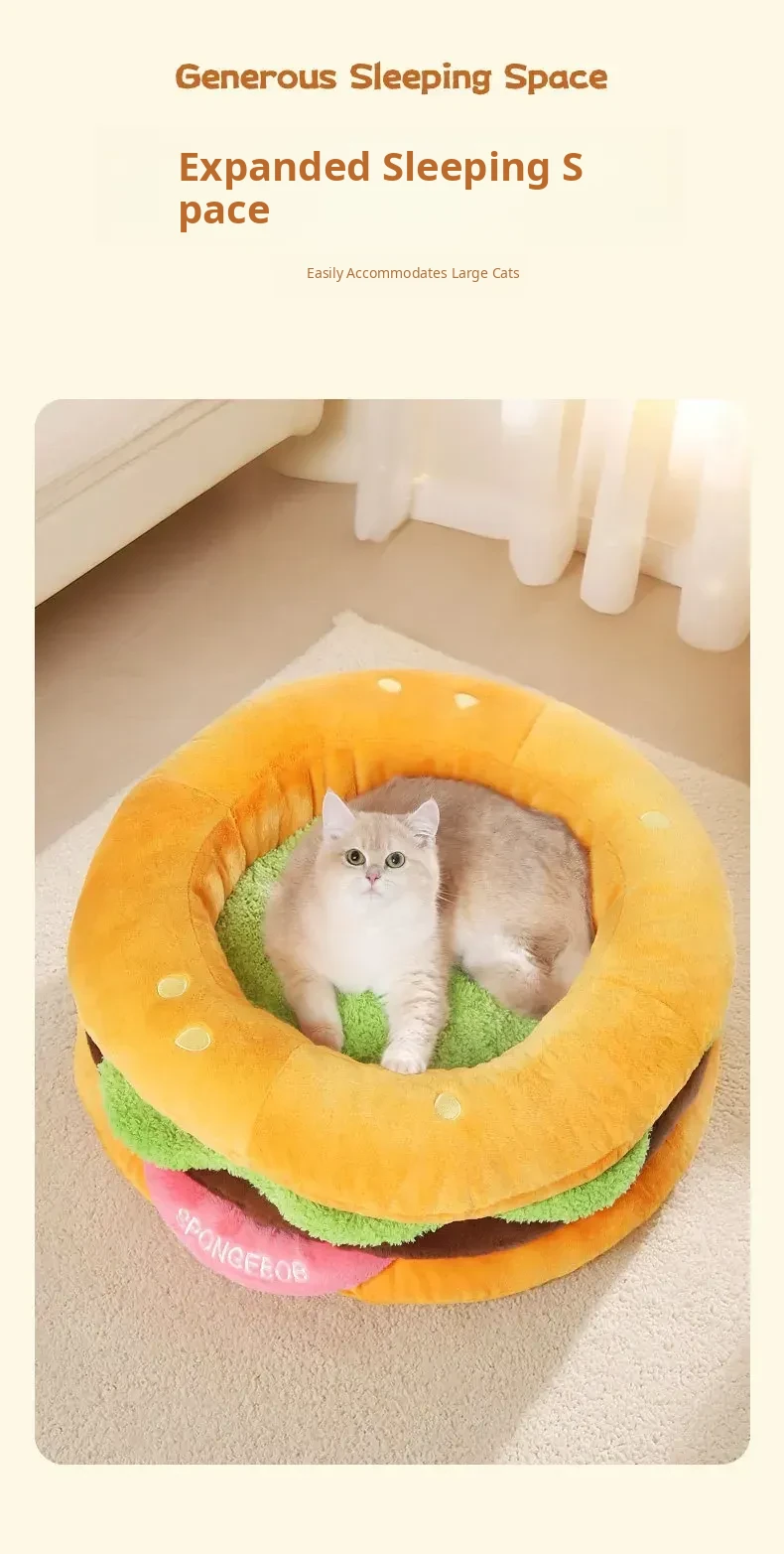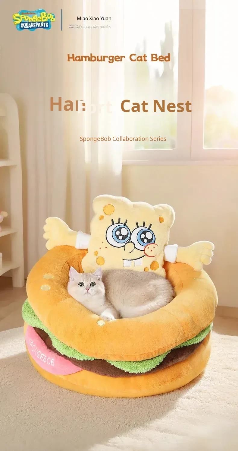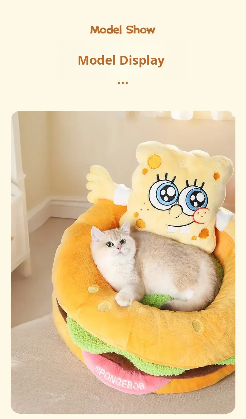 SpongeBob SquarePants Cat Cave - Cozy Thick Winter Semi-Enclosed Cat Bed for Kittens, Providing Warmth and Safety for Your Furry Friend