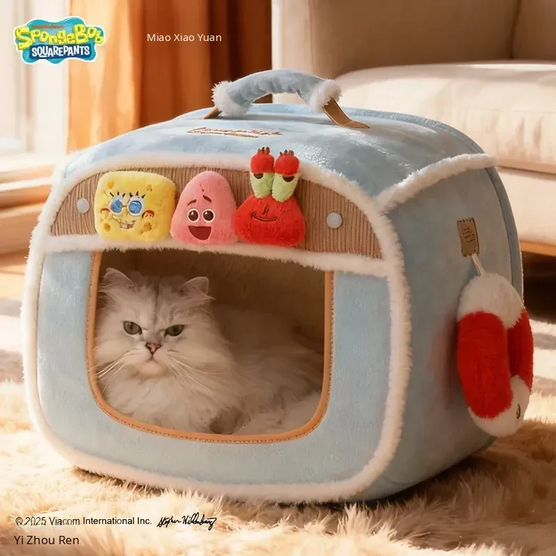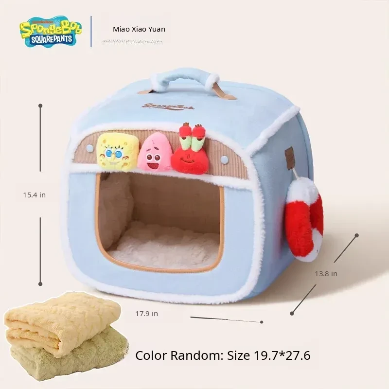 [Officially Licensed Spongebob Squarepants Collaboration] Best Friends Deep Sleep Cat Bed [Outer Cover + Sleeping Pad + Skeleton]((Inner Space) Length 45*Width 30*Height 14.96in)