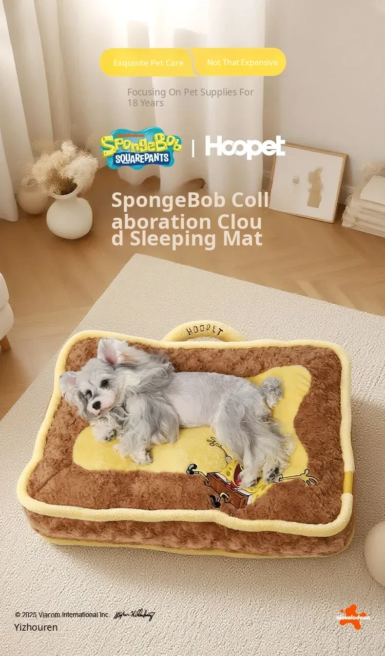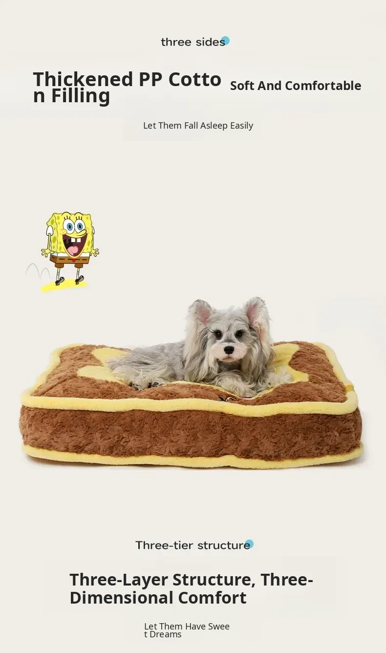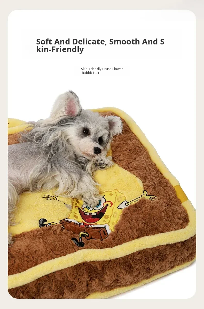 SpongeBob SquarePants Winter-Enhanced Thick Dog Bed for Large Breeds - Removable and Washable Cozy Sleeping Mat for Small Dogs - Ideal for Keeping Your Pets Warm and Comfortable