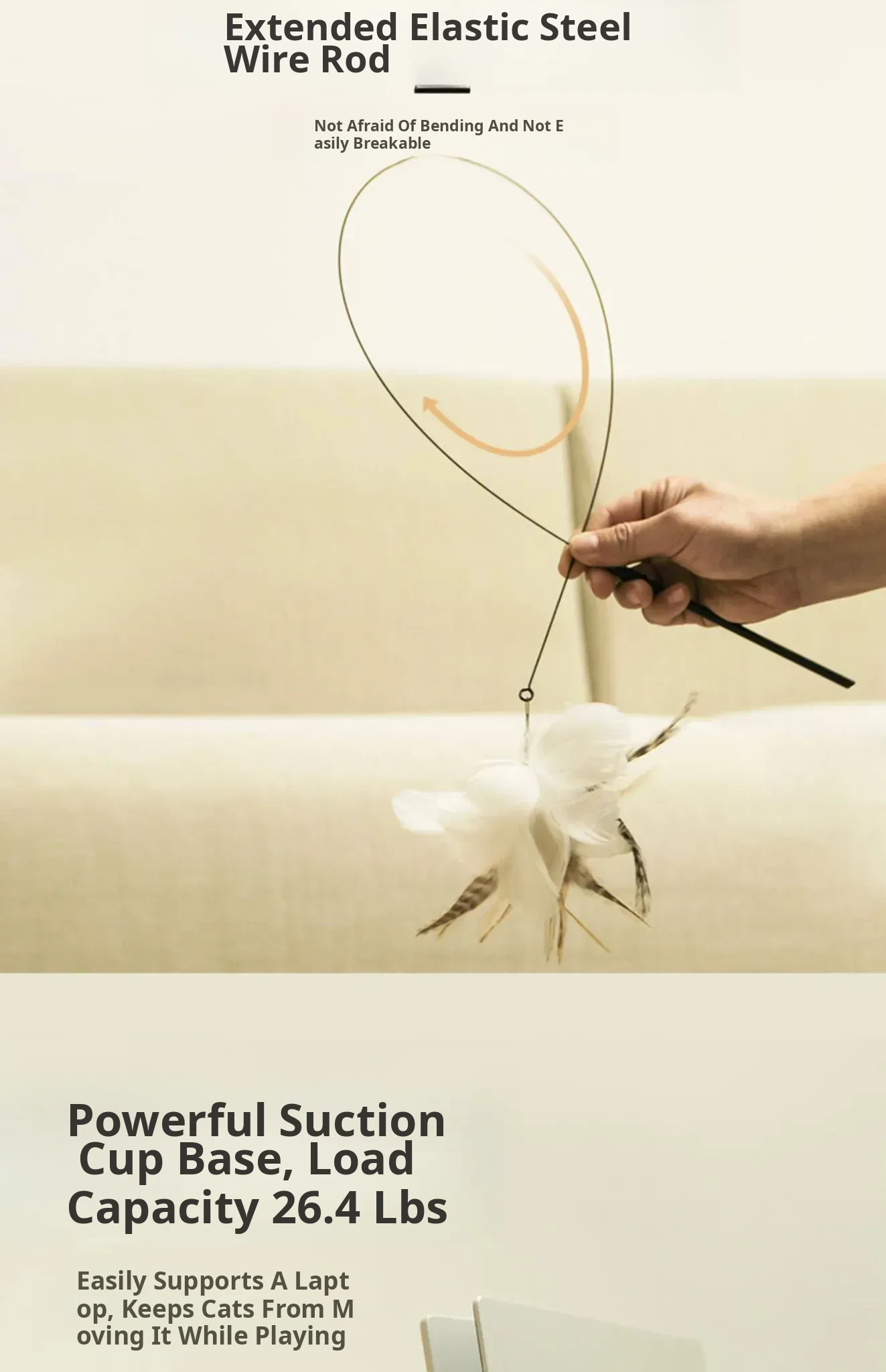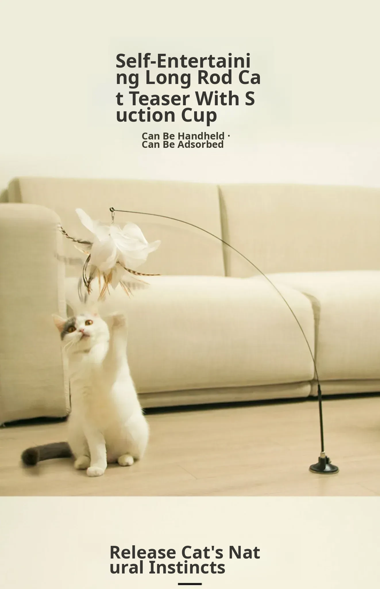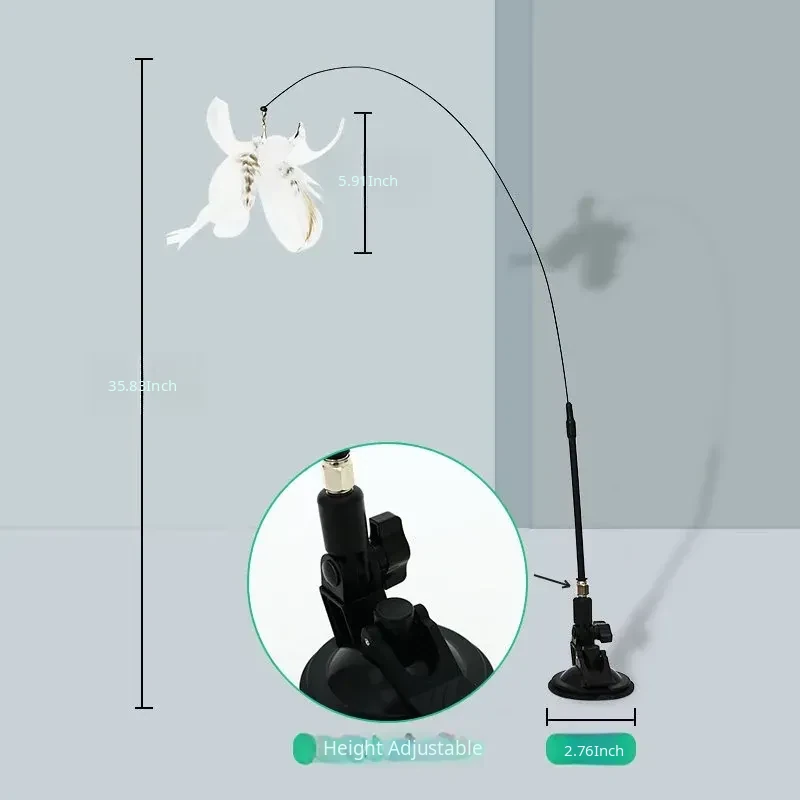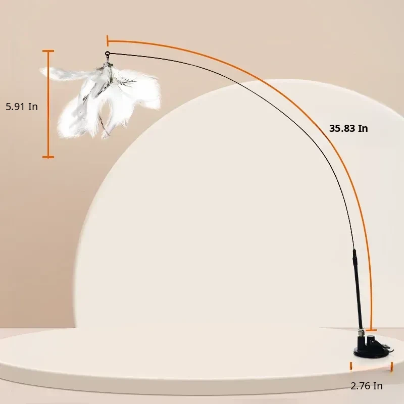 Suction Cup Automatic Cat Teaser Wand with Long Rod and Feather Replacement Head – Perfect Playtime Toy for Kittens and Cats to Relieve Boredom and Keep Them Entertained!