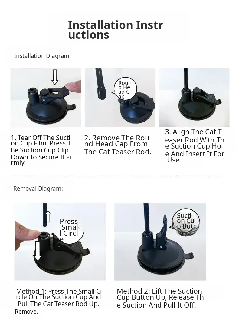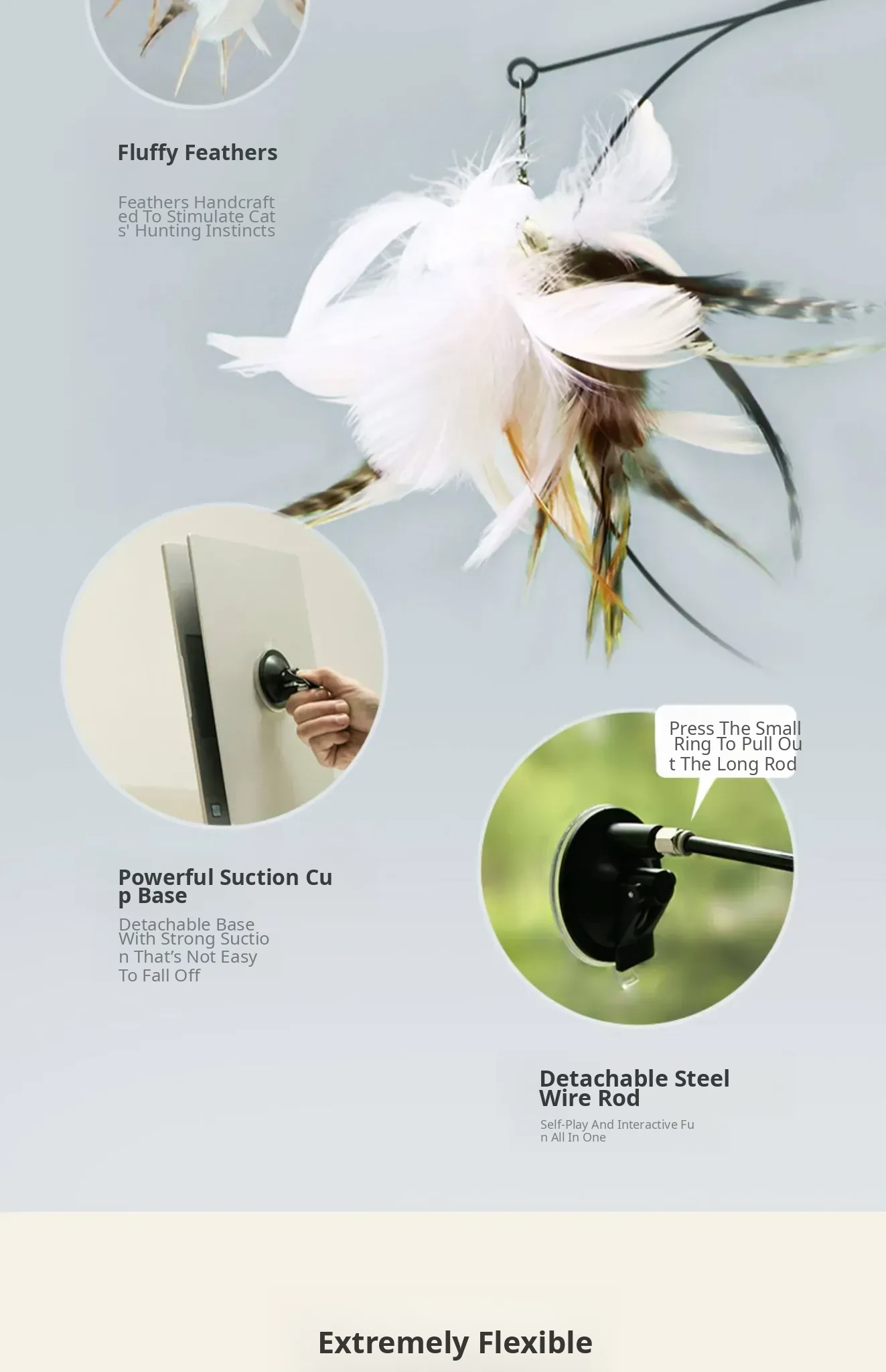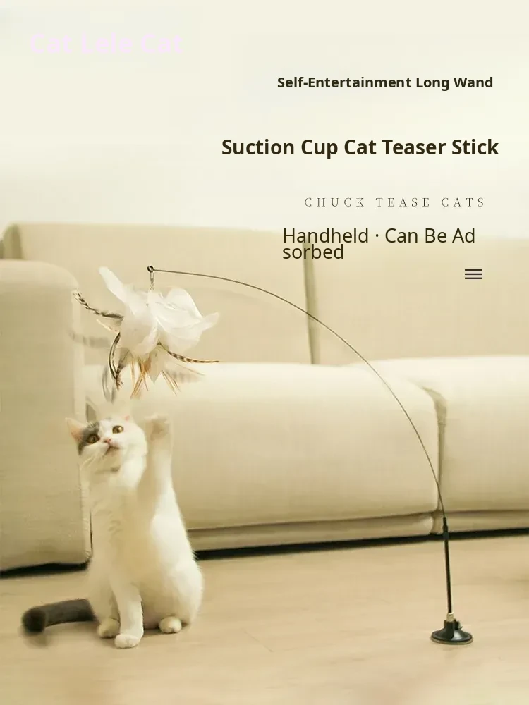 Suction Cup Automatic Cat Teaser Wand with Long Rod and Feather Replacement Head – Perfect Playtime Toy for Kittens and Cats to Relieve Boredom and Keep Them Entertained!