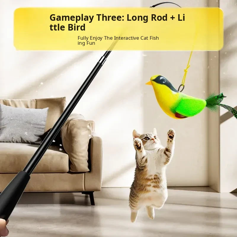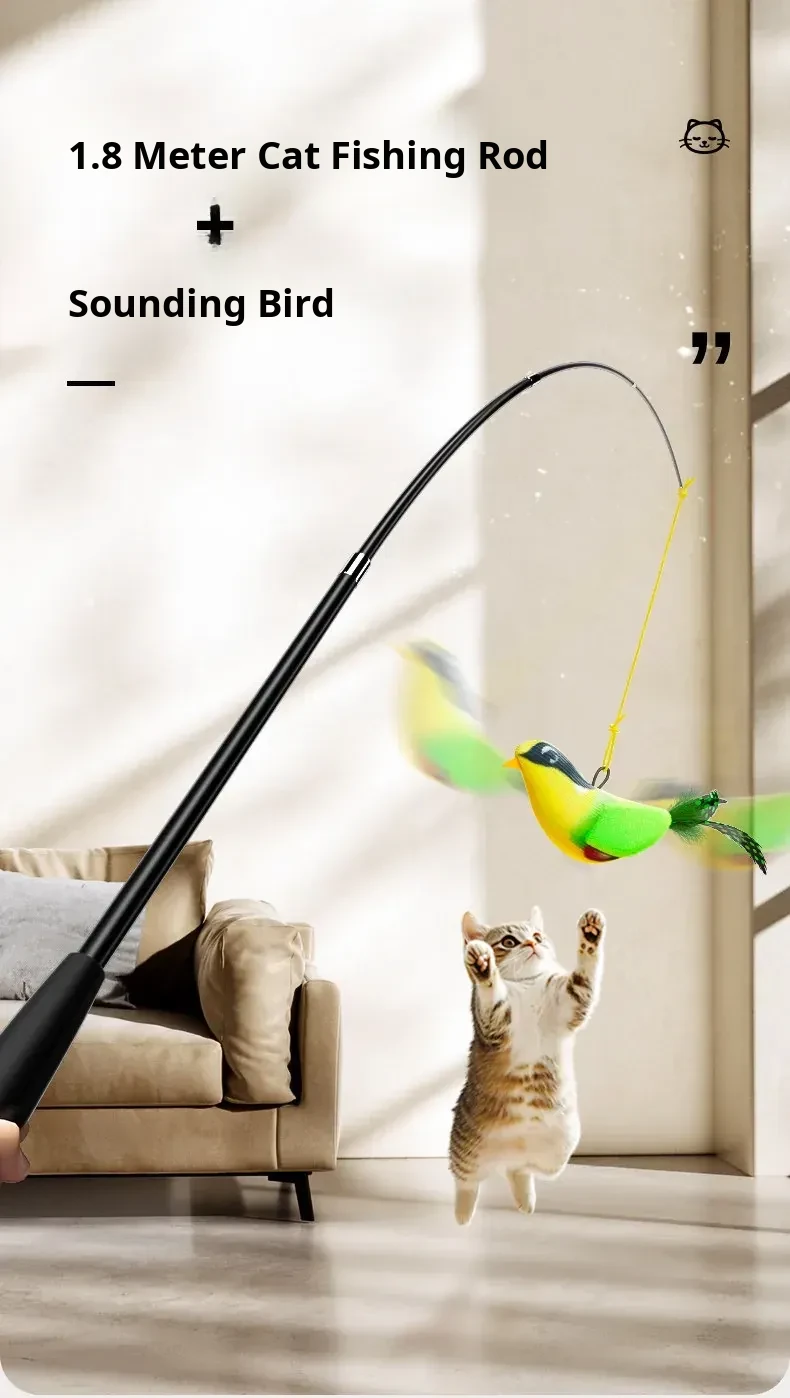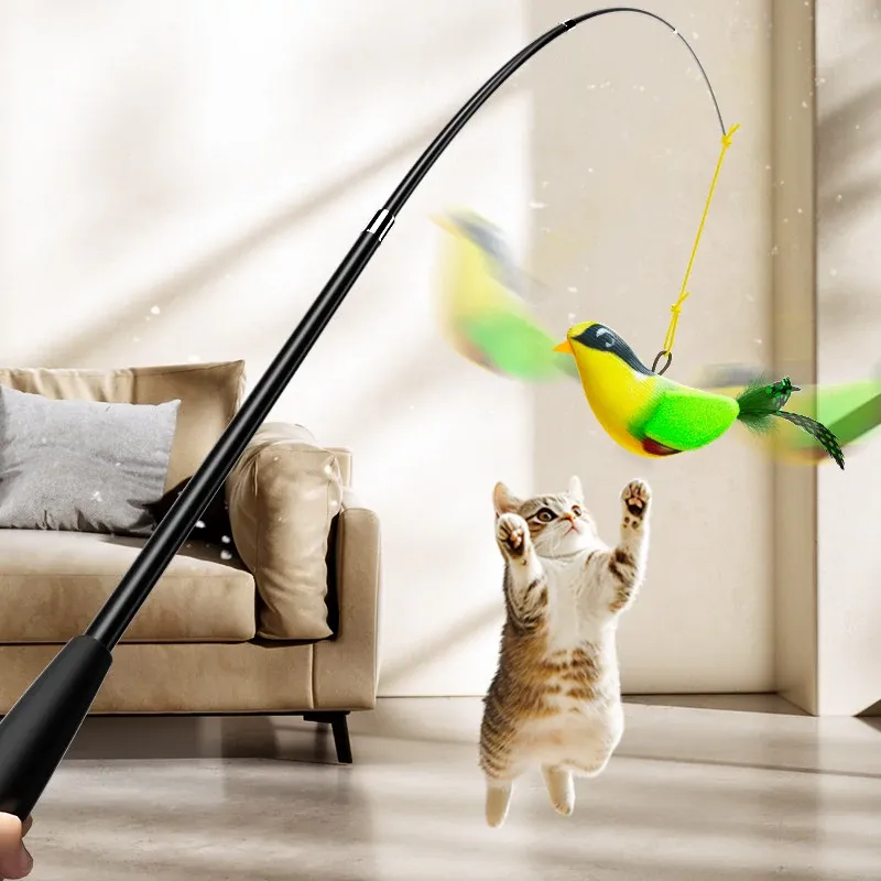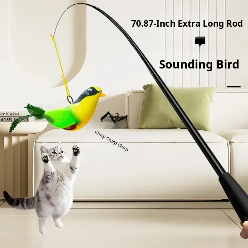 Telescopic Cat Teaser Wand with Bird Sounds - Engaging Interactive Toy for Cats, Perfect for Keeping Kittens Entertained and Stimulated!