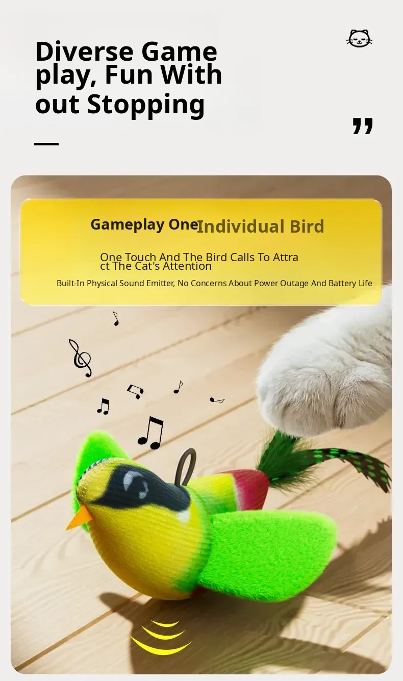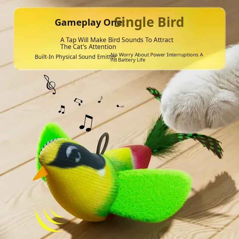 Three-Section Pole (39.37in) + Singing Bird (Yellow-Green)