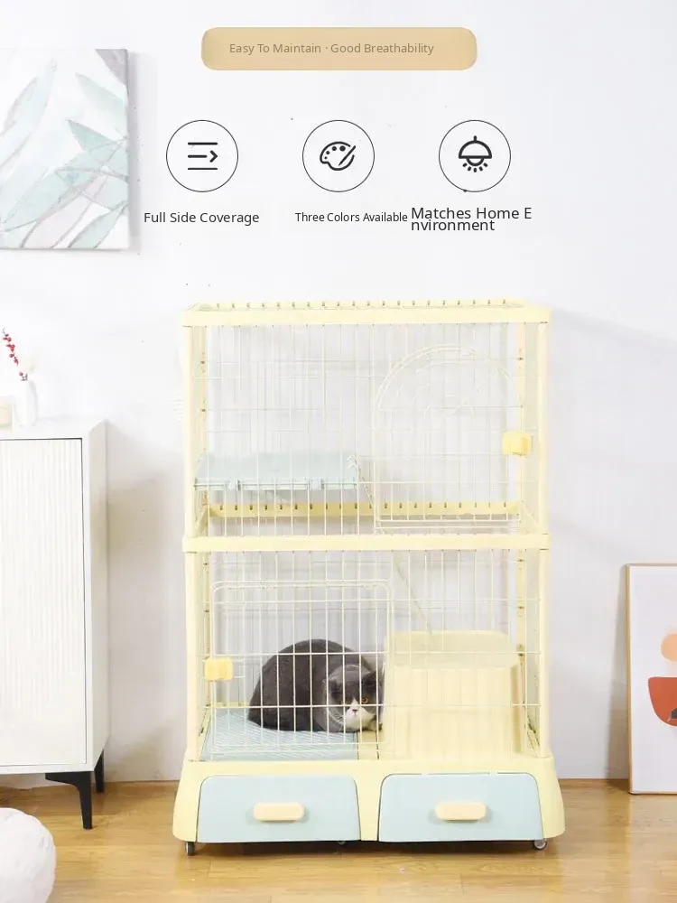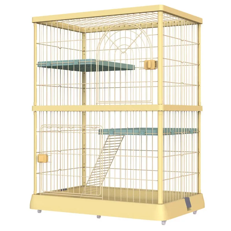 Upgraded Two-Tier Multifunctional Cat Cage (Yellow)