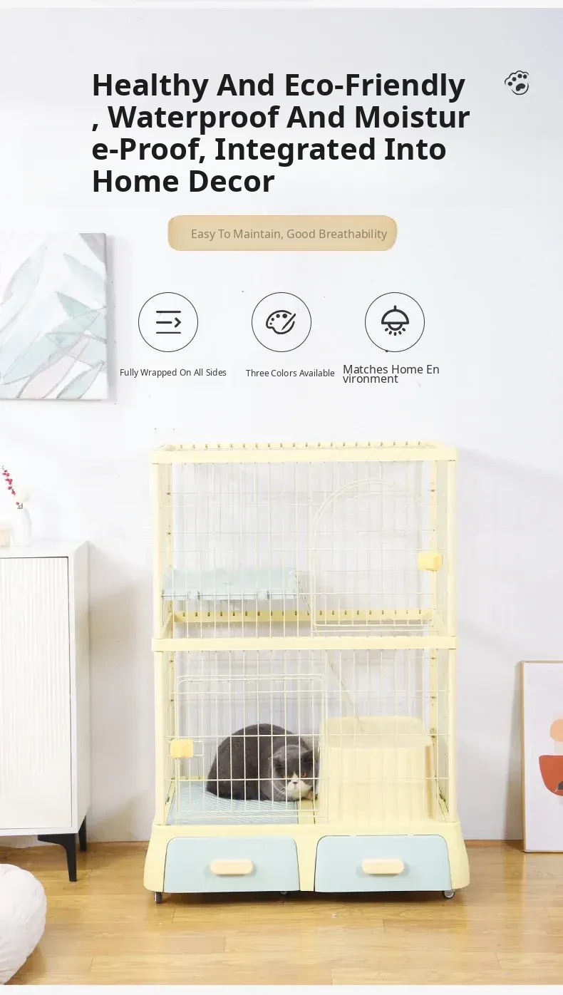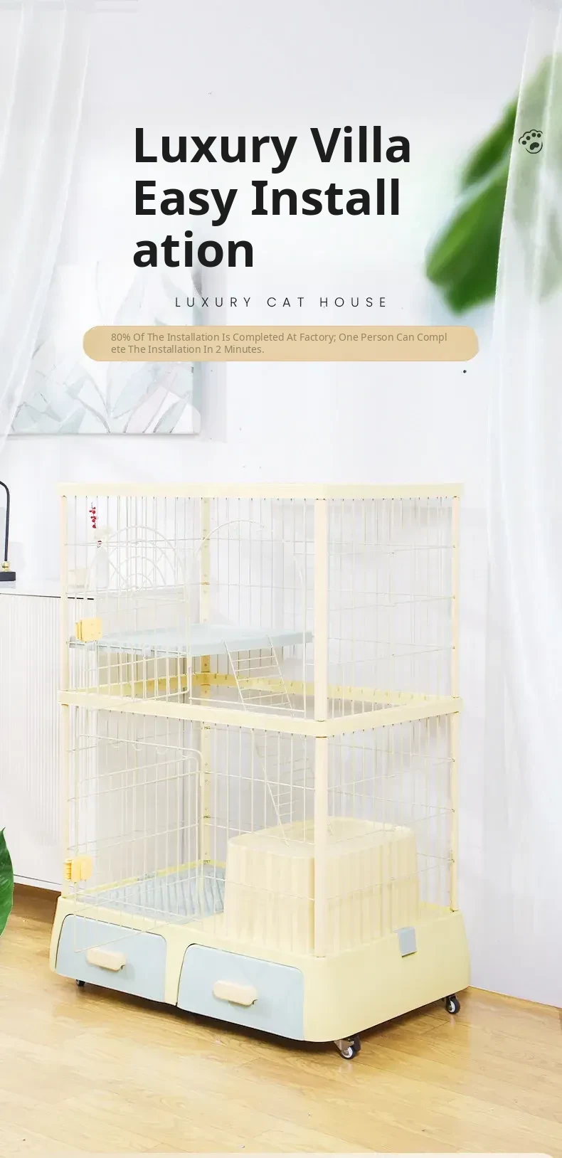 Upgraded Multi-Functional Cat Cage - Spacious Two-Tier Indoor Villa for Pets, Perfect for Home Use with Ample Freedom Space