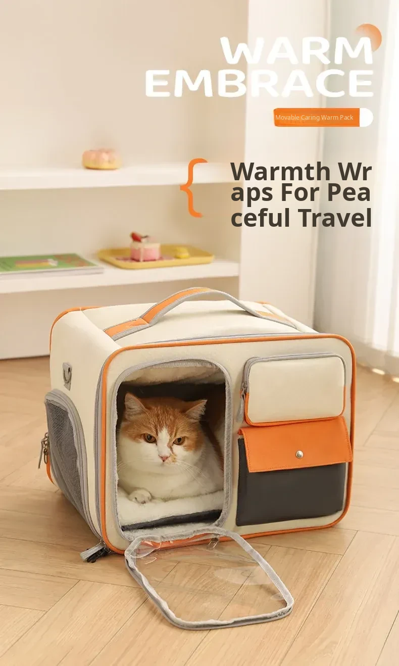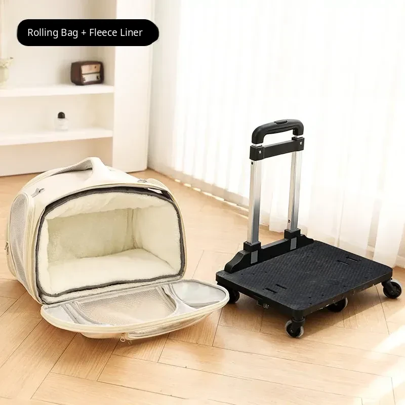 Winter Pet Travel Backpack - Large Capacity Warm Fleece Cat & Dog Carrier with Wheels for Outdoor Adventures, Perfect for Cold Weather Trips