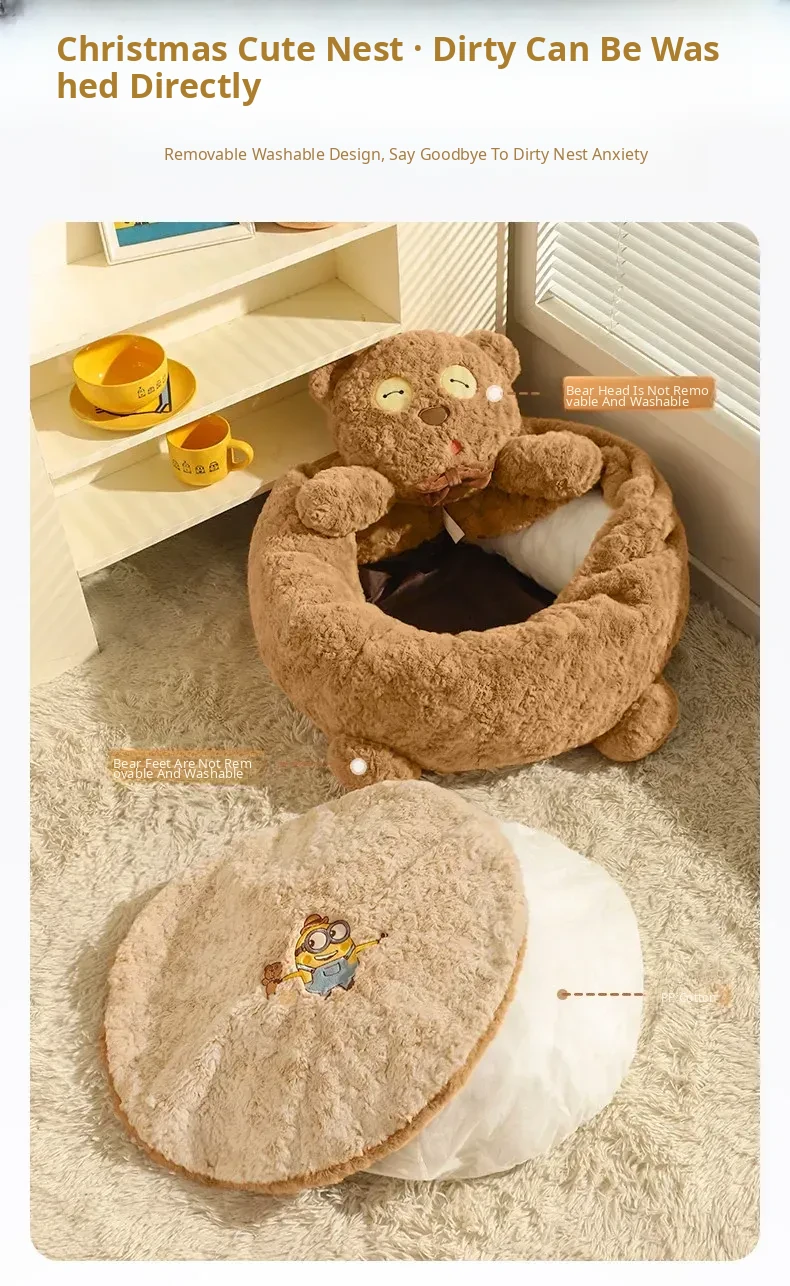 Winter Thickened Semi-Closed Minion Cat Bed - Cozy Warm Sleeping Nest for Cats, Perfect for Cold Weather, Plush Pet Blanket for Ultimate Comfort