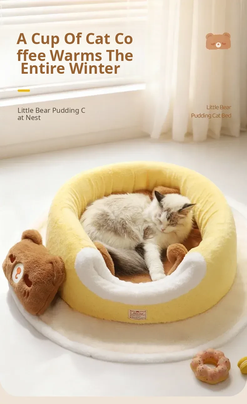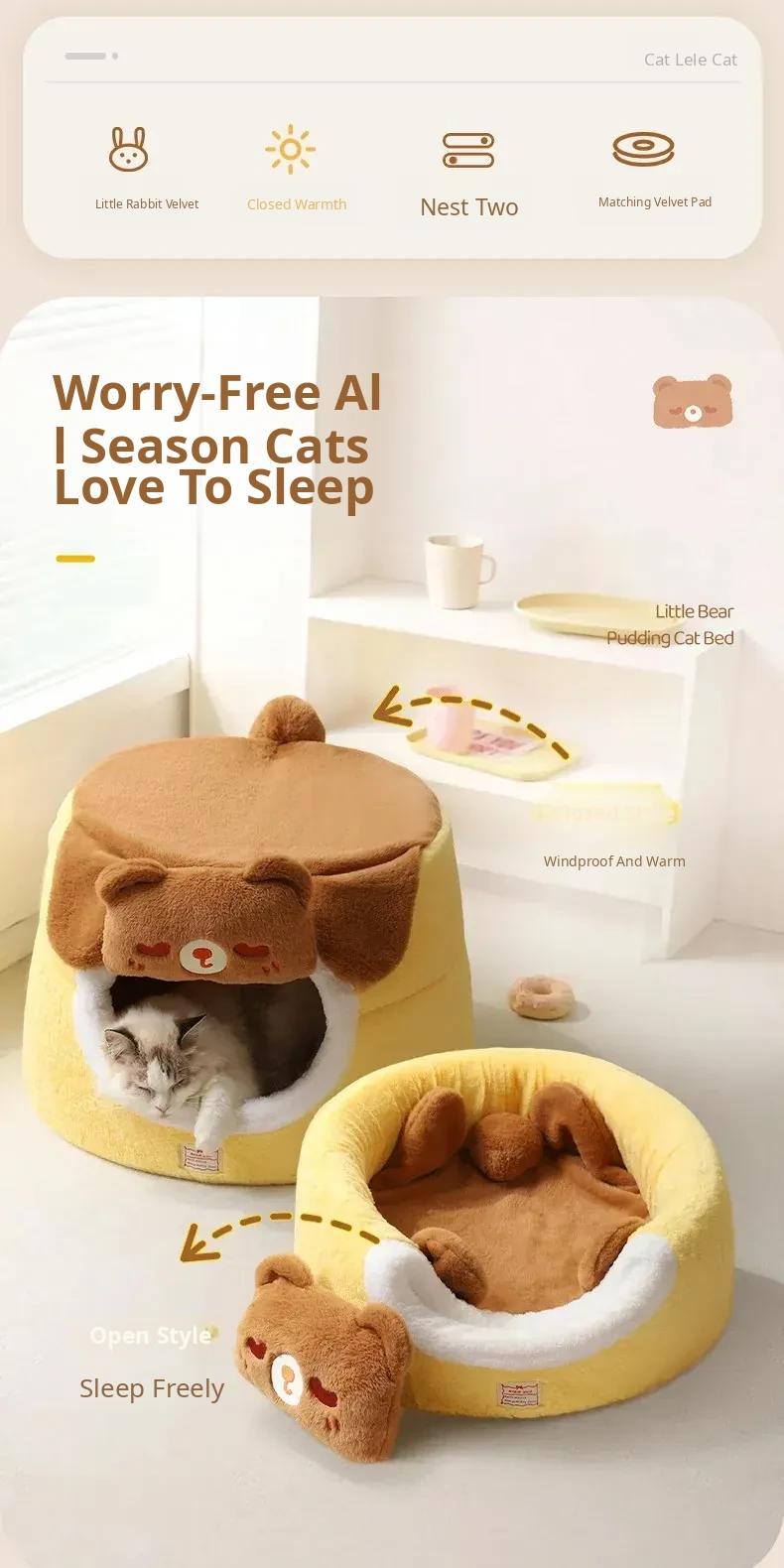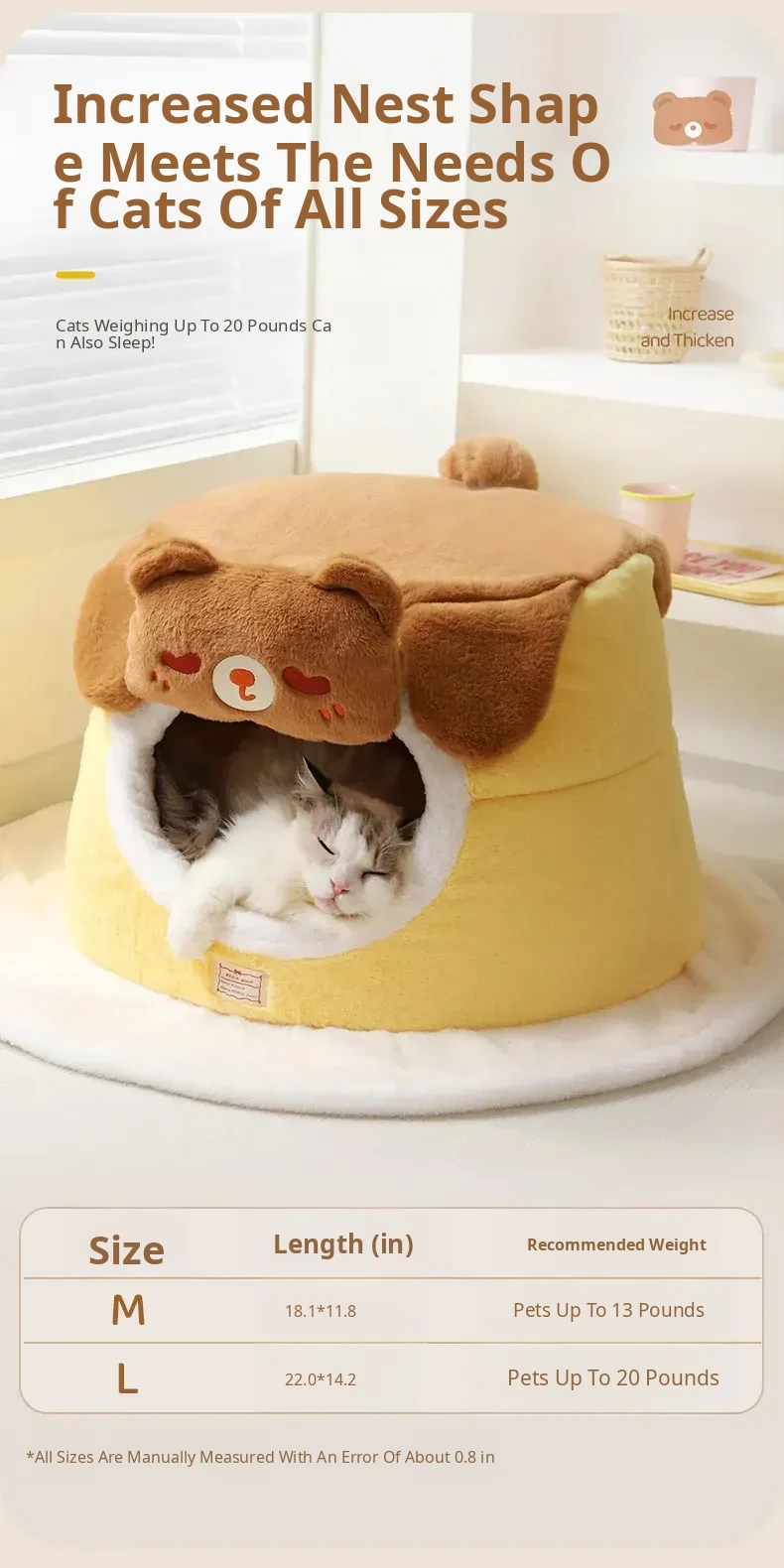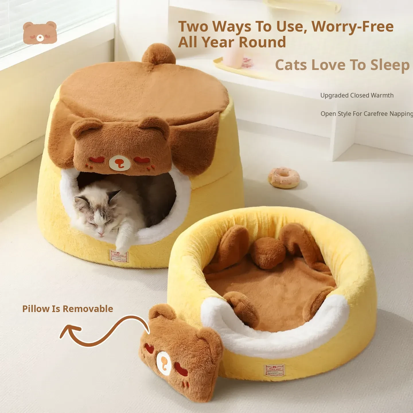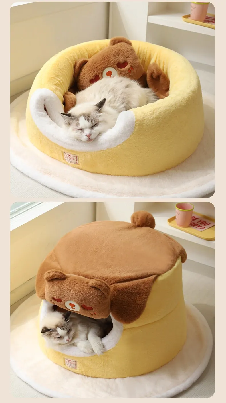 Pudding Bear Dual-Purpose Warm Cat Bed [Single Bed]