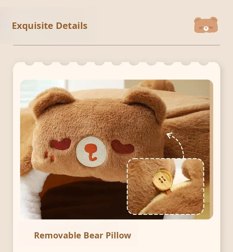 Pudding Bear Dual-Purpose Warm Cat Bed + Cushion Blanket