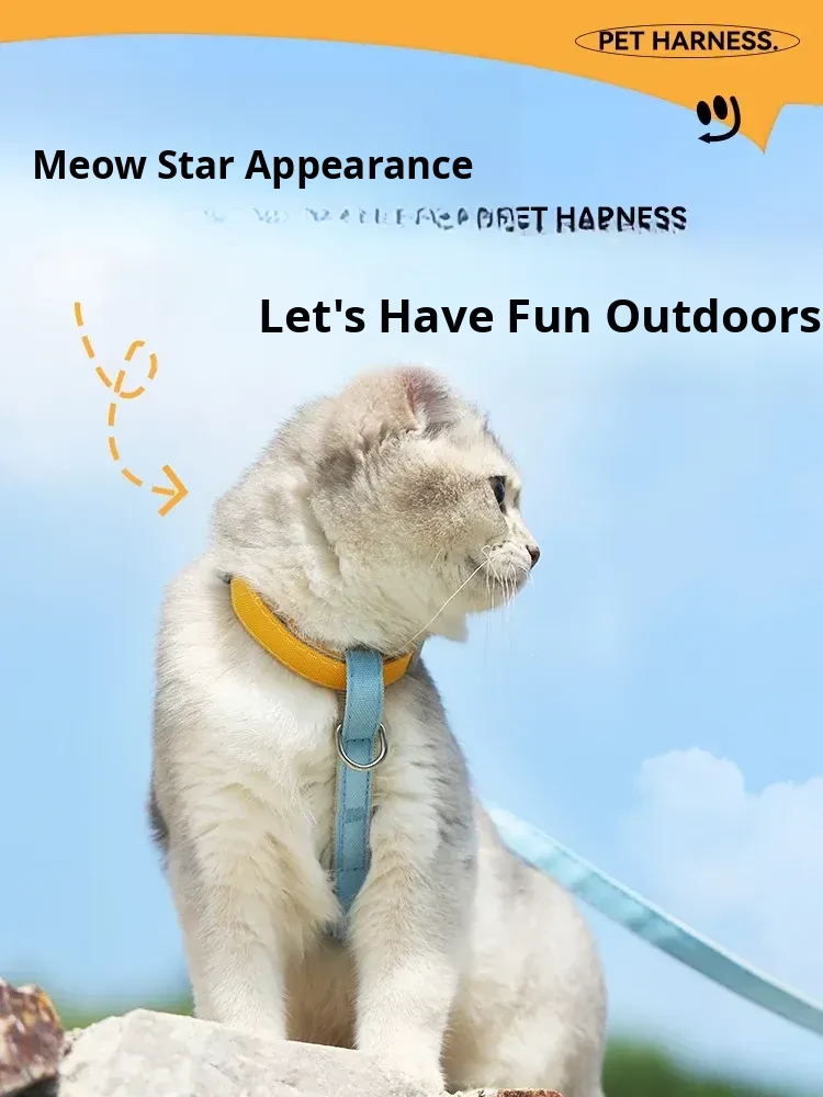 Cute Cat Harness with Escape-Proof Leash - Perfect for Small Dogs and Outdoor Adventures! Ideal Pet Walking Solution for Your Feline Friend.