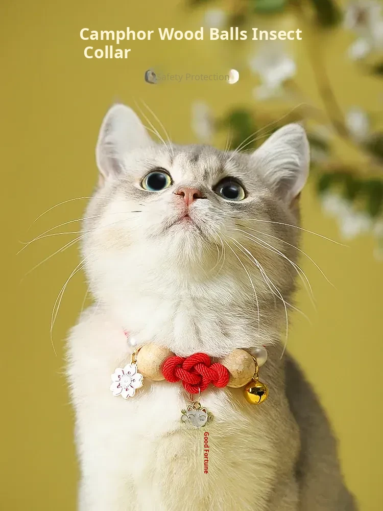 Flea and Tick Prevention Cat Collar with Bell - Aromatic Camphor Wood Pet Accessory for Dogs and Cats - Stylish and Safe Pet Necklace