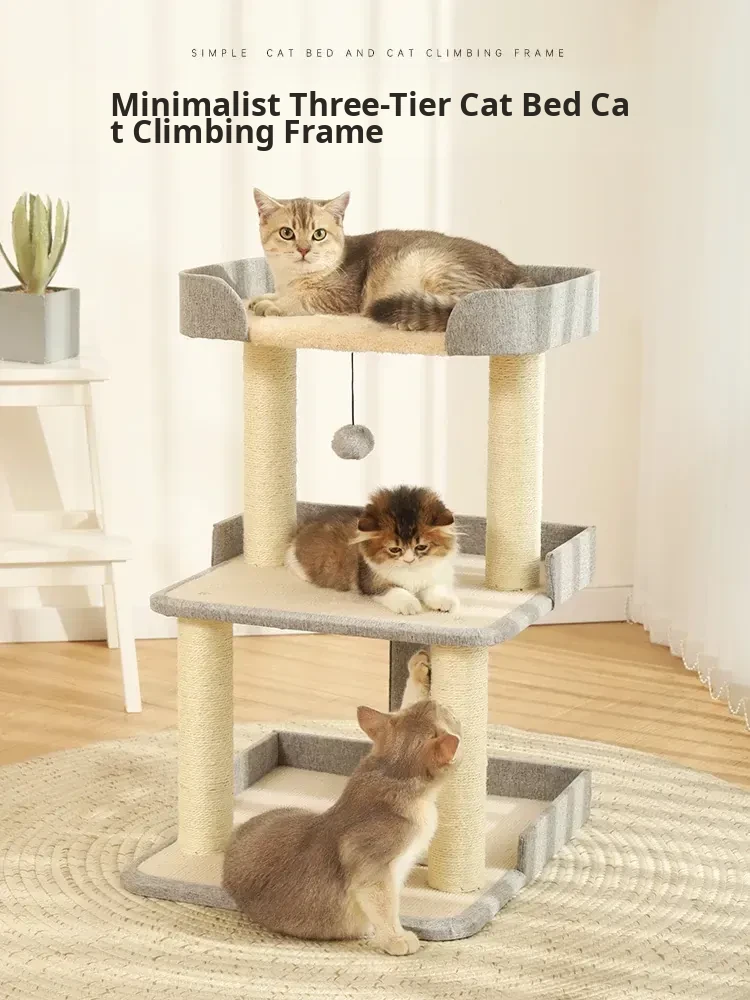 Multi-Functional Cat Tree with Scratching Pad and Cozy Bed - Year-Round Use, Space-Saving Design for Small Homes, Ideal for Active Cats to Climb and Play!