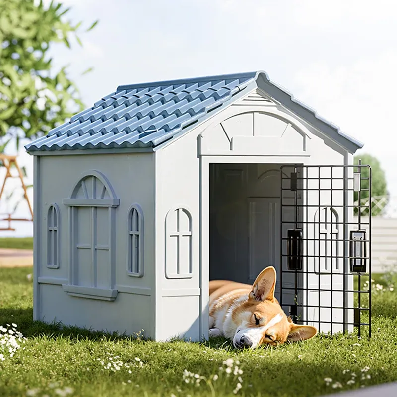 All-Season Outdoor Dog House with Removable Washable Cover - Safe and Cozy Enclosed Shelter for Small to Medium Dogs, Perfect for Summer Use
